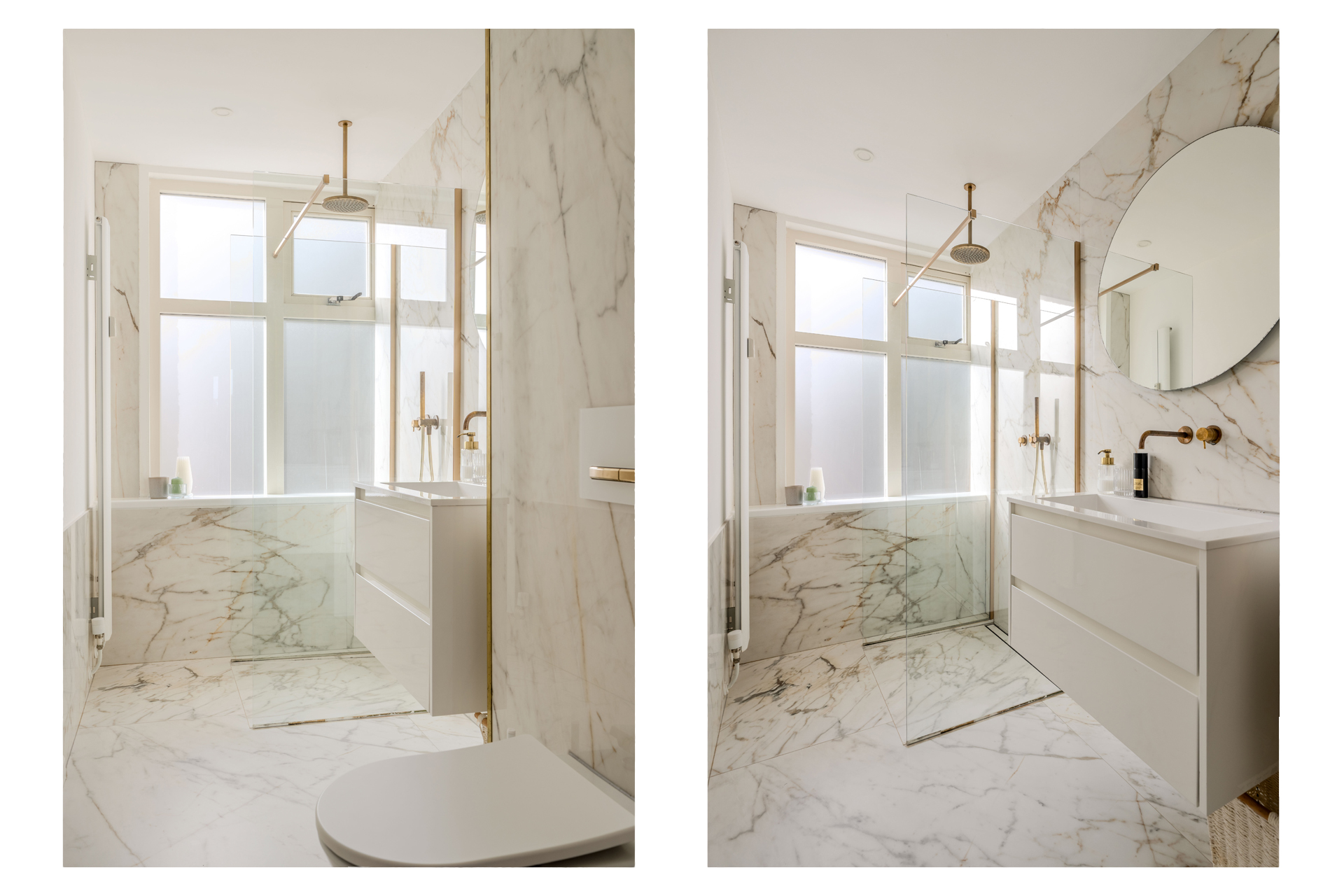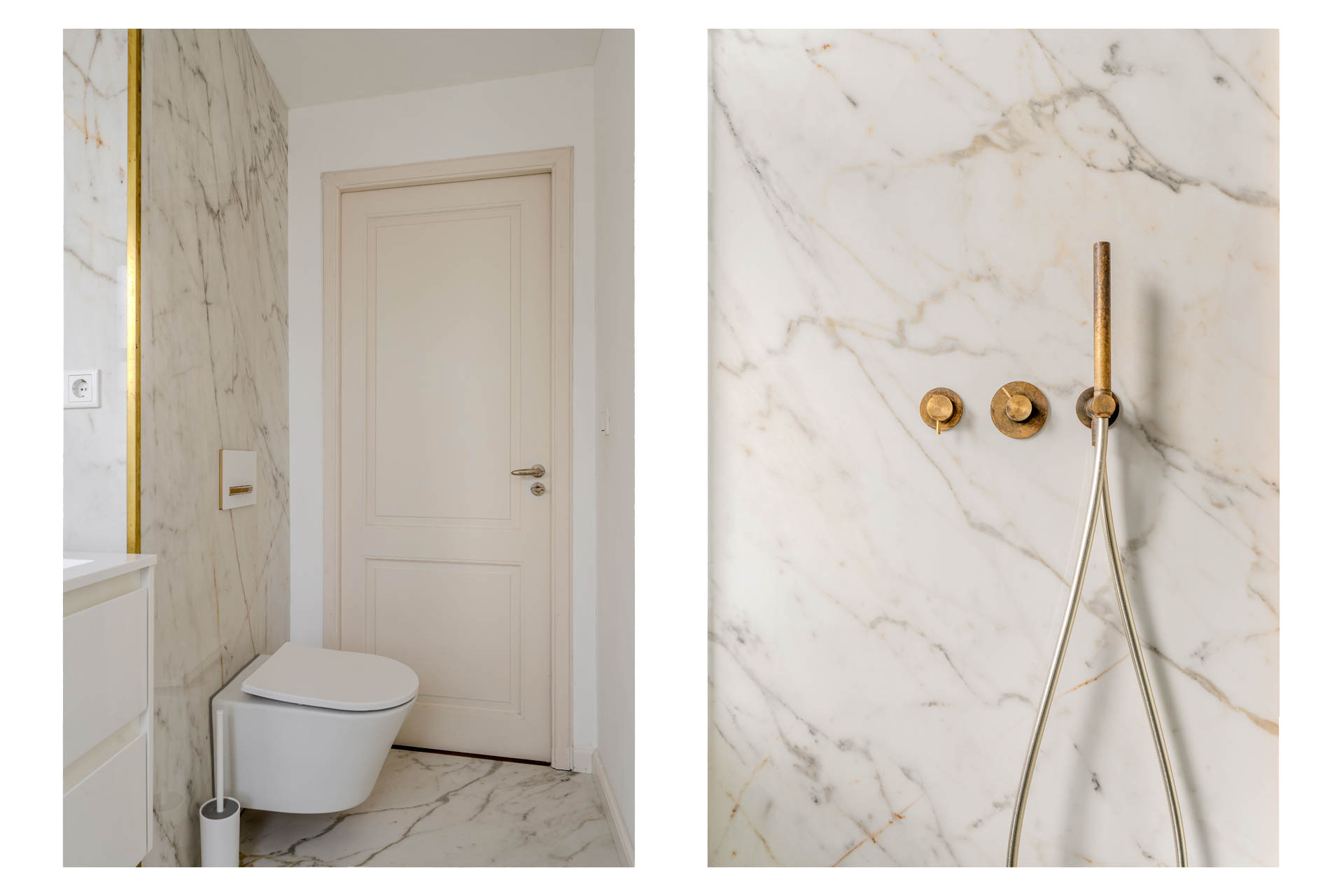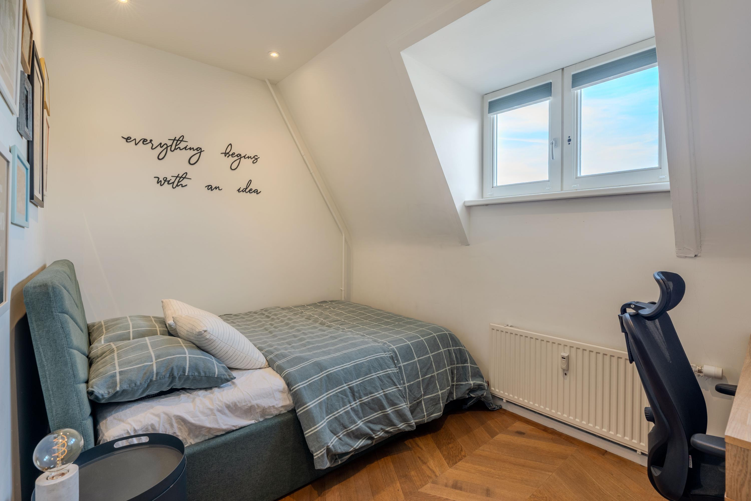 يفتح الطابق الرئيسي مع مدخل خاص وسلم، ليكشف عن منطقة معيشة رحبة مع نافذة بارزة ومدفأة أصلية وخزائن مدمجة مصممة خصيصًا. في الخلف، تم ترتيب مطبخ الطعام الواسع حول جزيرة مركزية، ومزود بأجهزة حديثة تشمل موقد كهربائي وفرن مشترك وثلاجة ومجمد وغسالة أطباق. يضفي بار أنيق مع خزائن نبيذ بحرارة مضبوطة طابعًا عصريًا على المناسبات الاجتماعية، في حين تؤدي الأبواب المنزلقة إلى شرفة هادئة. توفر أربع غرف نوم وثلاثة حمامات الراحة والمرونة للعائلة أو الضيوف. يتميز الطابق العلوي بنافذة جديدة على سطح السقف، تضيف إضاءة طبيعية ومساحة متعددة الاستخدامات مناسبة لغرفة نوم أو استوديو. تتوج الشقة شرفة على السطح بمساحة 43م² حيث يفسح إيقاع المدينة المجال للسماء المفتوحة.