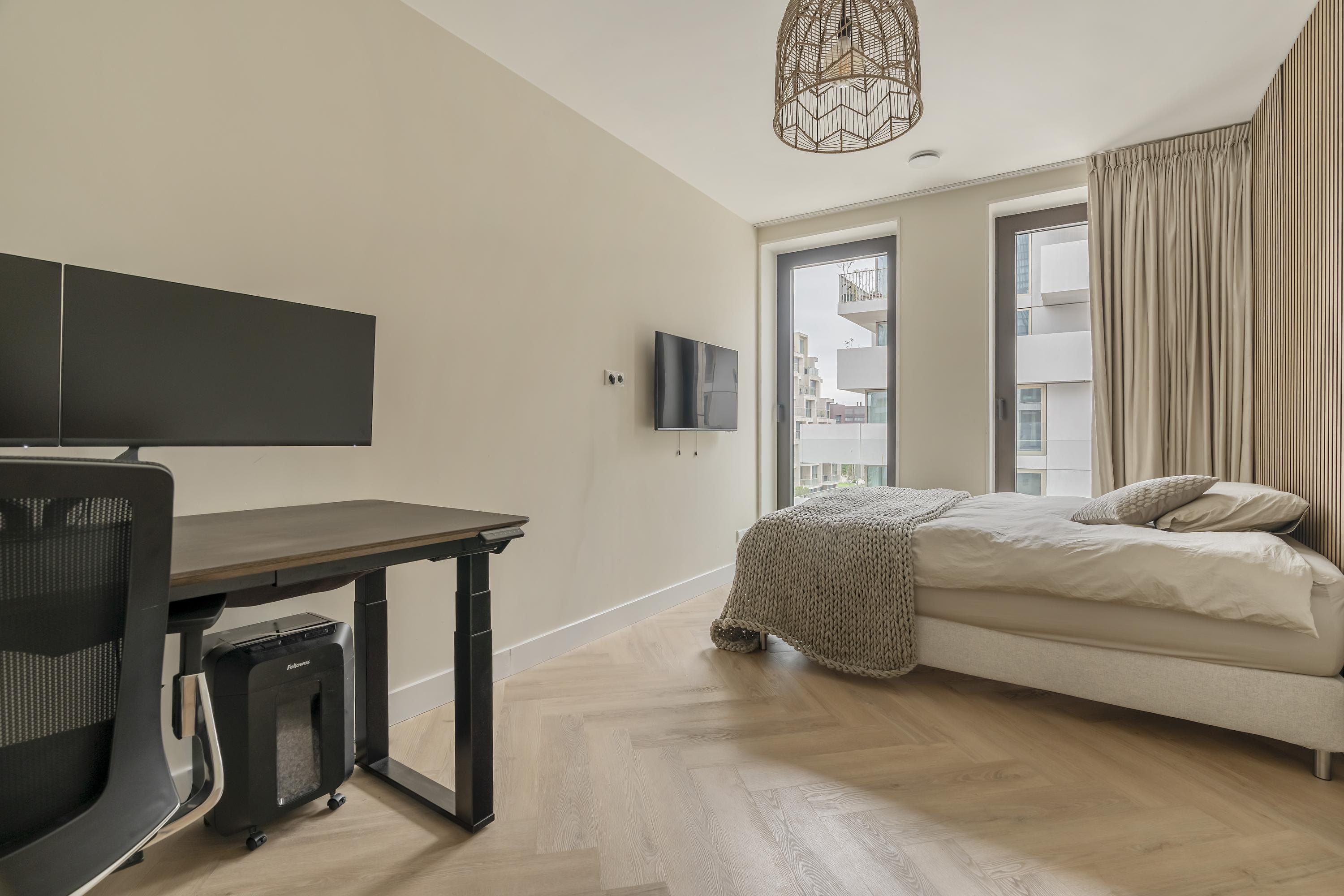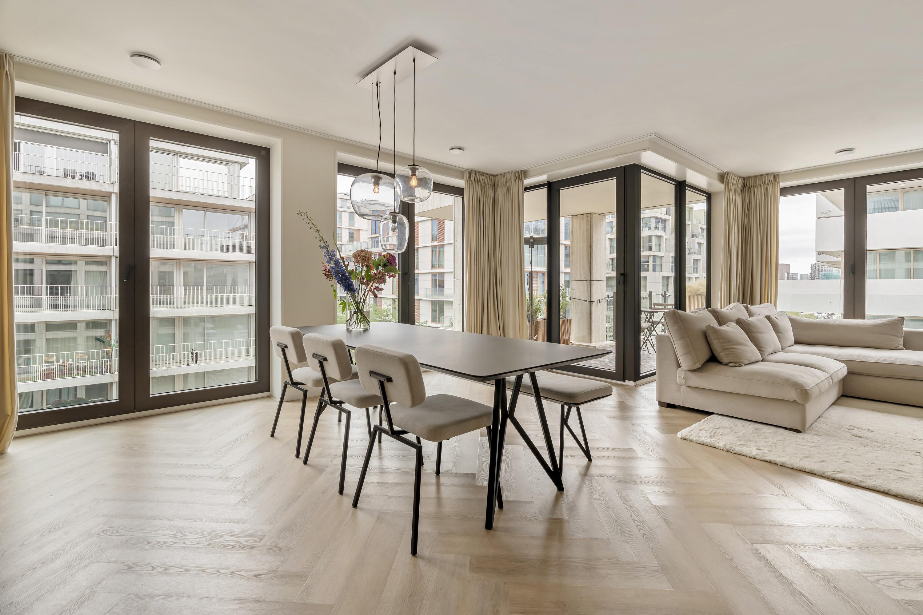 يُعرض شقة أمستردام ضمن مجمع ذا كيوب السكني، حيث يلتقي التصميم المعاصر مع المساحات الخضراء الحضرية على ضفاف نهر آي في أمستردام-شمال. تقع هذه الشقة الزاوية الموفرة للطاقة في الطابق الثالث بمساحة 132 م²، وتضم ثلاث غرف نوم متناسقة وشرفة واسعة مواجهة للجنوب الغربي. يضفي أرضية الباركيه بتصميم شيفرون والإضاءة الطبيعية الوفيرة من النوافذ العالية والاتصال السلس بين غرف المعيشة والمطبخ جواً من السكينة والرقي الهادئ. يوفر التدفئة تحت الأرضية الراحة في جميع أنحاء الشقة، مدعومة بمضخة حرارية ونظام استعادة الحرارة، وتعمل بتناغم مع العزل الممتاز والنوافذ المزدوجة.