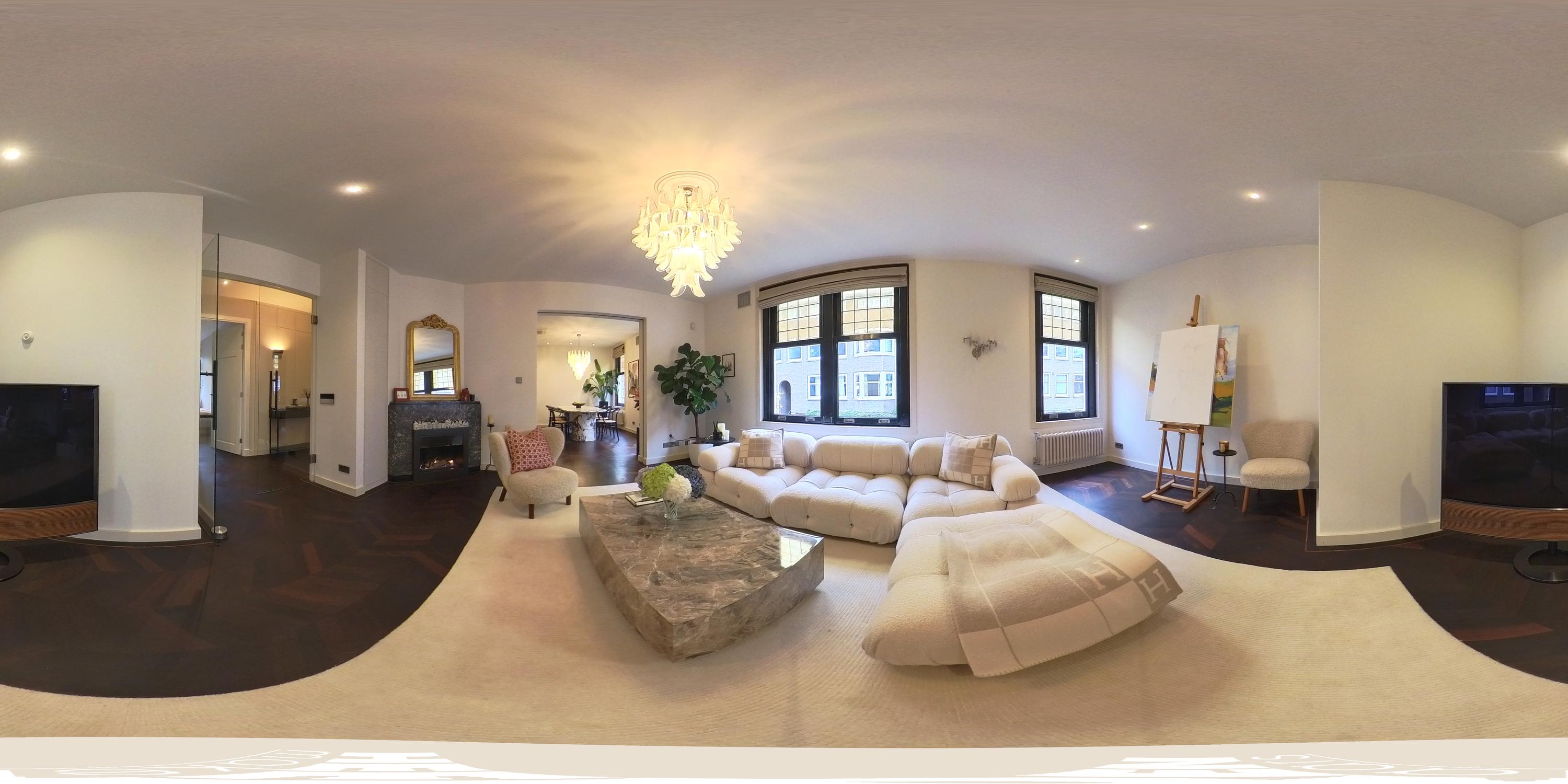 شقة أمستردام شارع تينتوريتو تقدم مزيجًا نادرًا من الأناقة العصرية والسحر الكلاسيكي في واحدة من أرقى أحياء أمستردام السكنية. تمتد هذه الشقة على مساحة 124 م² وتجمع بين التفاصيل المعمارية المدروسة واستخدام المواد الفاخرة. ترحب بك غرفة المعيشة الفسيحة والمشرقة بمدفأة غاز ونوافذ زجاجية ملونة مميزة؛ بينما تفتح الأبواب المنزلقة والفرنسية بسهولة إلى مطبخ بوغنبهول. المطبخ مجهز بأجهزة Gaggenau، وصفيحة Teppanyaki، وخزانة نبيذ، وثلاجتين، وإضاءة مصممة، ليشكل المركز الاجتماعي والعملي للمنزل، ويبرز بمدفأة غاز إضافية.
