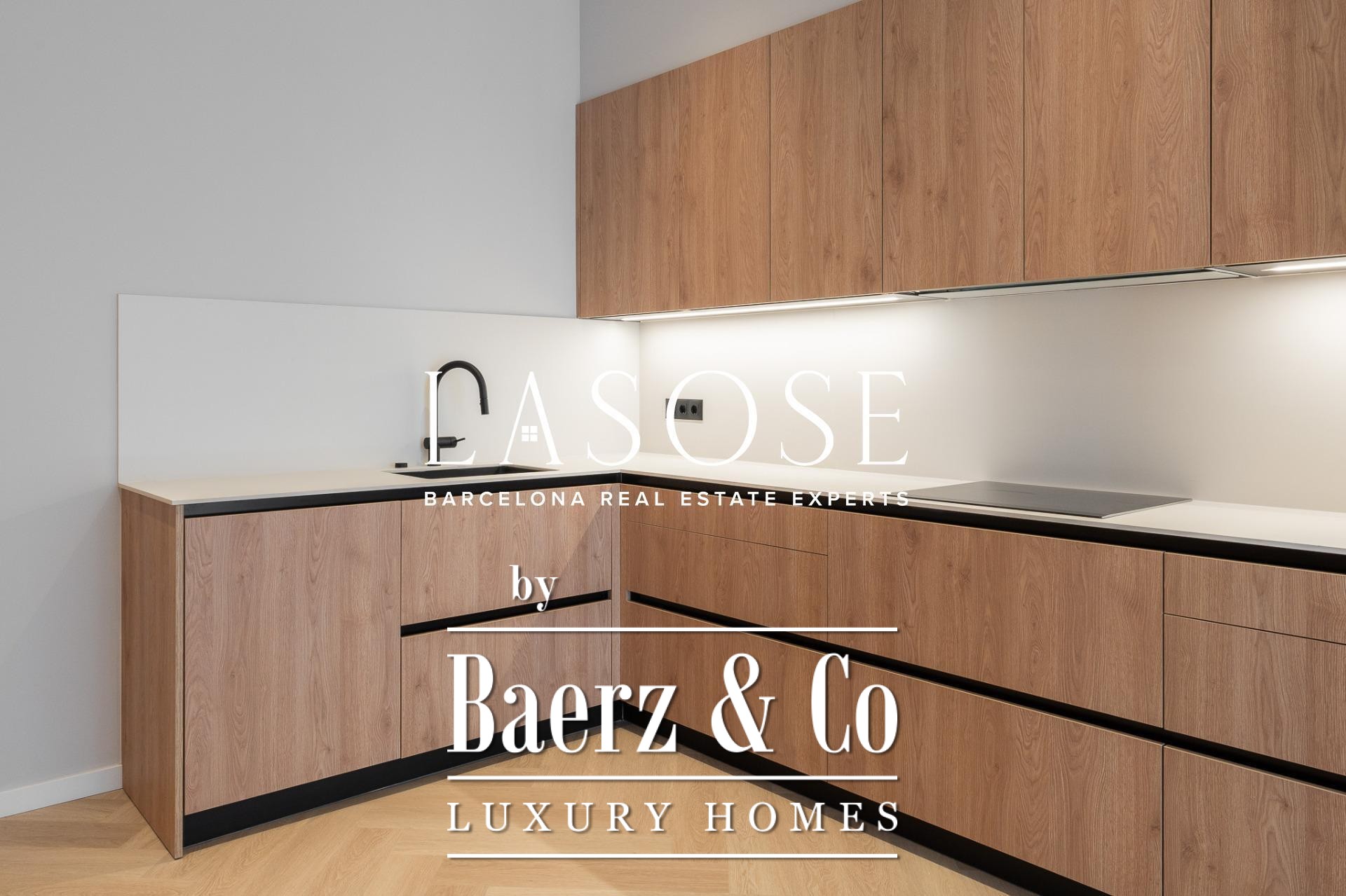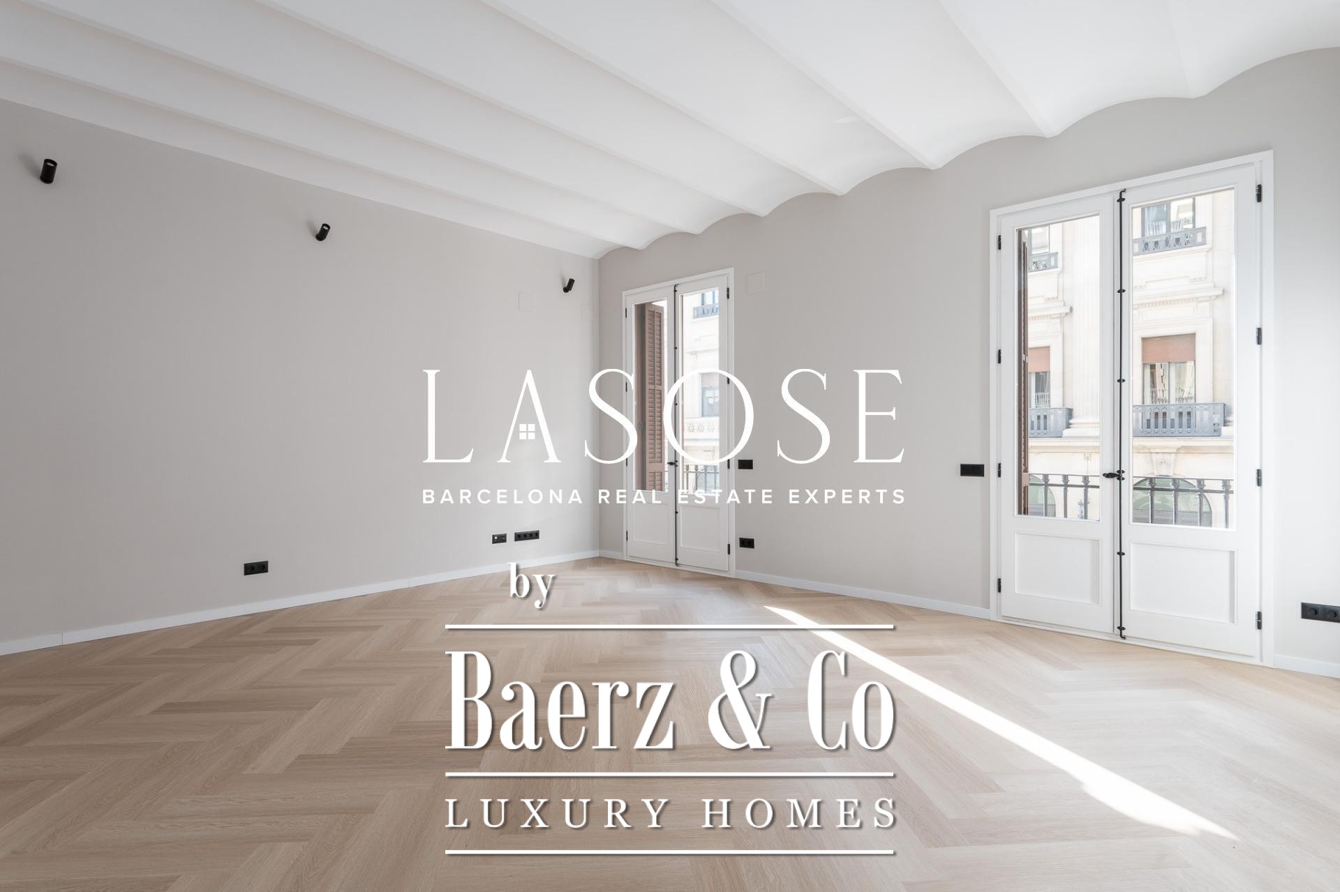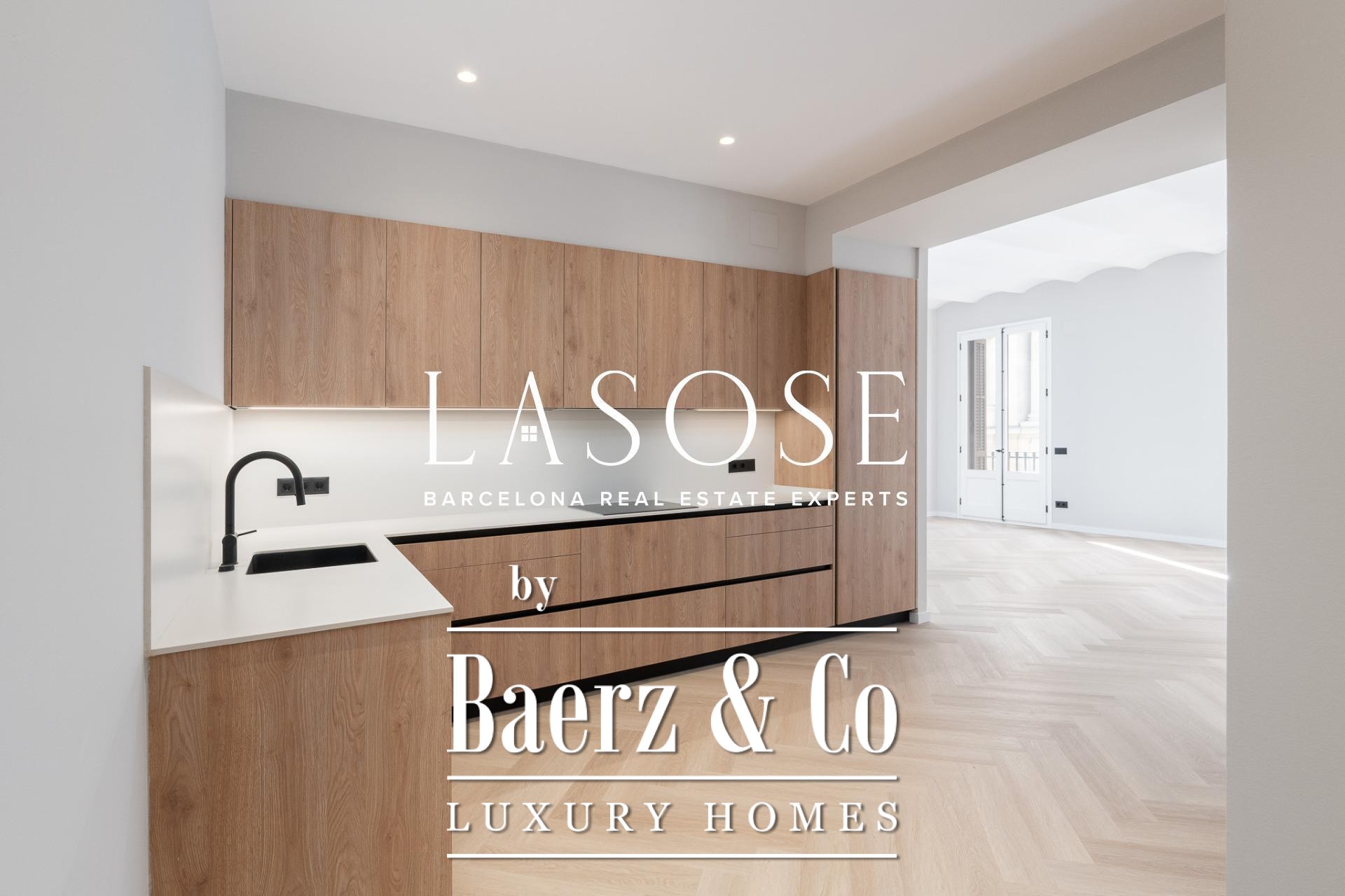 تمنح الأسقف العالية المضاءة بتاج الأقواس الكاتالونية والمصاريع الخشبية الأصلية الشقة ضوءًا ودفئًا فريدين، في حين يؤطر الشرفة المشرقة الواجهة التاريخية للكاتدرائية. تنضح منطقة المعيشة والطعام بجو من الهدوء والرقي غير المتكلف، موحدة بعناصر معمارية أصيلة. المطبخ ذو التصميم المفتوح مزود بالكامل بخزائن أنيقة وأجهزة منزلية متطورة، ليجمع بفعالية بين الوظيفة والنقاء الجمالي.