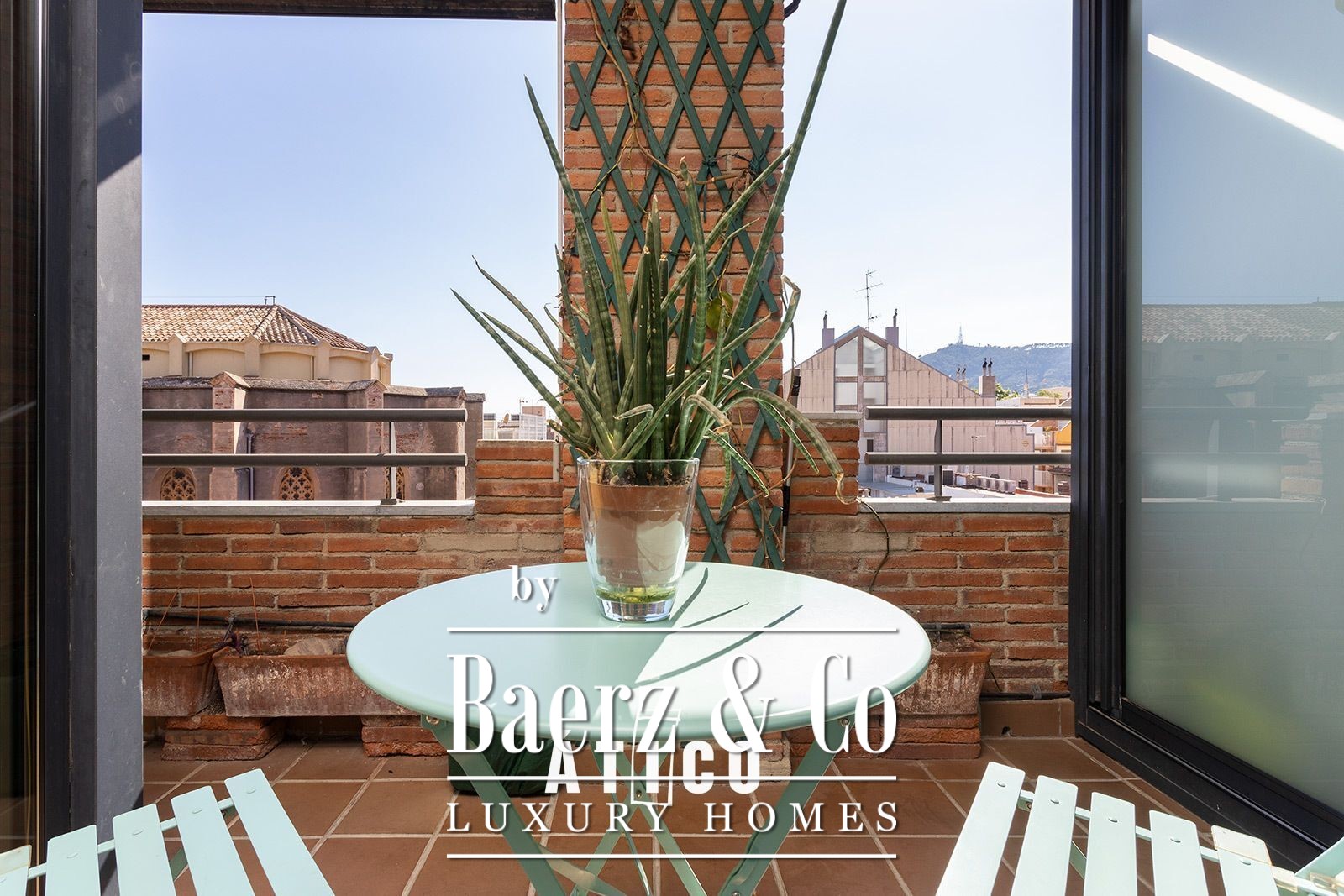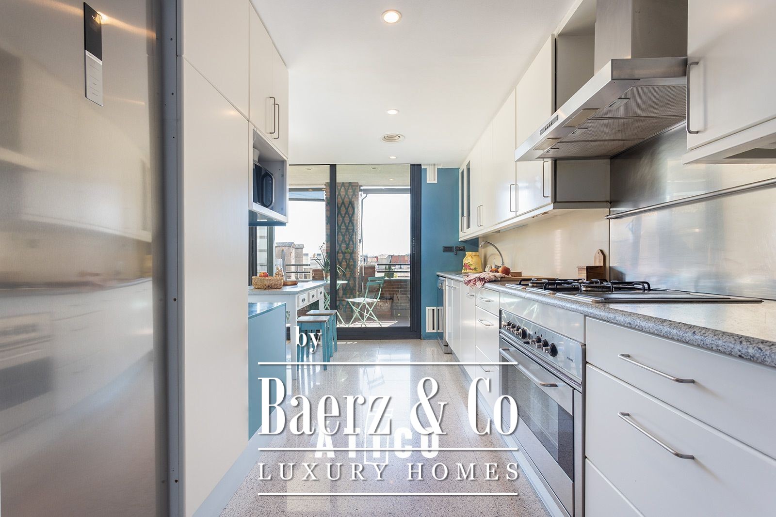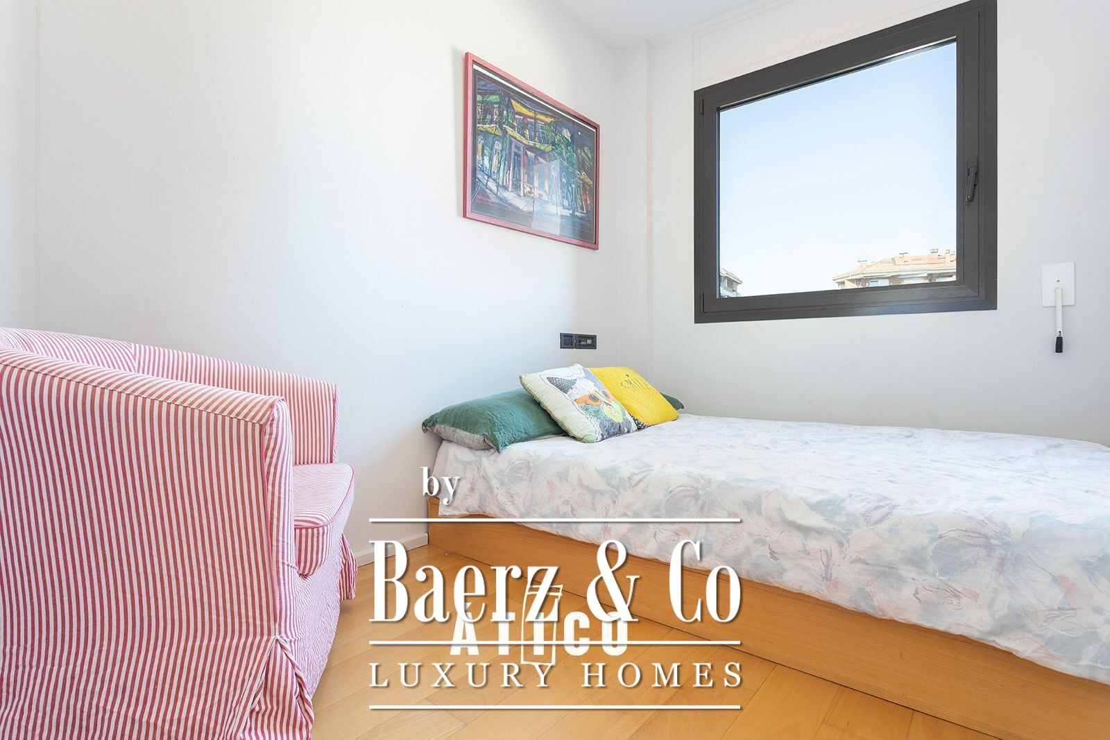 يقدم هذا البنتهاوس الدوبلكس في برشلونة مساحة معيشة تبلغ 227 مترًا مربعًا موزعة على مستويين هادئين في حي سarria الهادئ. تستقبلك الطابق الأول بمنطقة معيشة وطعام فسيحة، ومطبخ قابل للتكيف بأبواب منزلقة، وضوء وفير يتسلل من موقعه المرتفع. تشترك غرفتا نوم مزدوجتان في حمام واحد، مما يوفر إيقاعًا هادئًا للحياة اليومية.