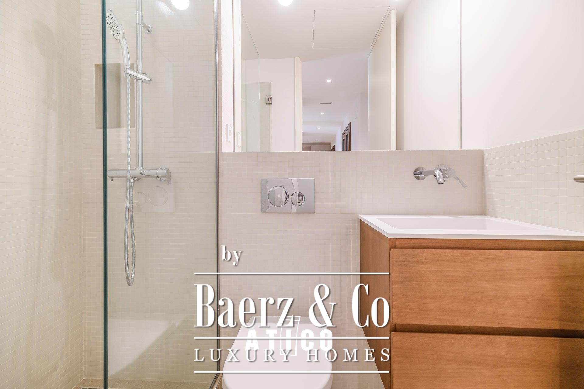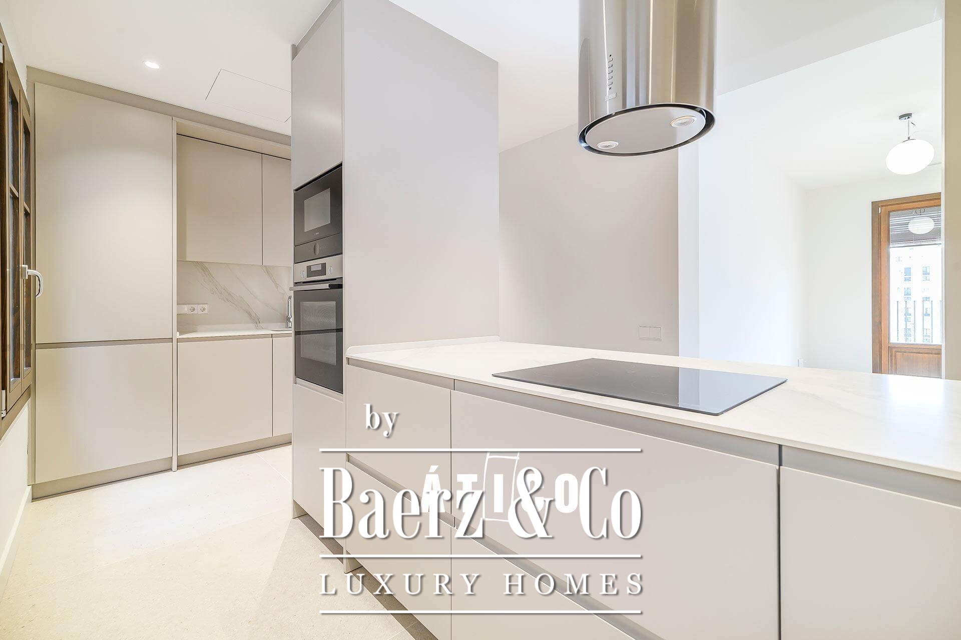 بنتهاوس برشلونة في المربع الذهبي يمثل معياراً للمعيشة الحضرية الراقية. تمتد هذه الإقامة المجددة حديثاً على مساحة 103.70 متر مربع، منظمة بتوازن وإحساس بالاتساع يبعث على السكينة عند دخولها. يوفر البنتهاوس غرفتي نوم وحمامين بتصميم مدروس، حيث ينعكس الاهتمام بالتفاصيل في كل عنصر، بدءاً من اختيار الأرضيات حتى أعمال النجارة المخصصة. يدمج المطبخ العصري بين العملية والذوق الجمالي، موفراً مساحة تخزين سخية مع الحفاظ على خطوط معمارية نظيفة.