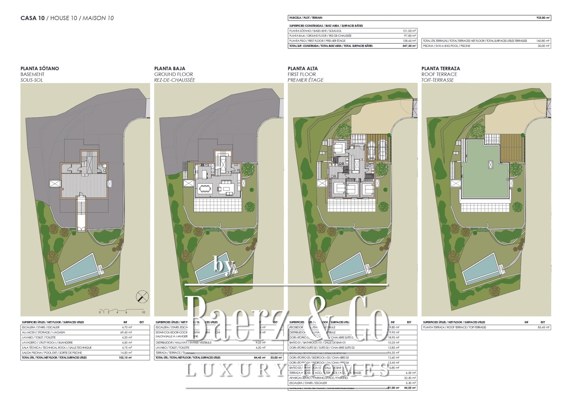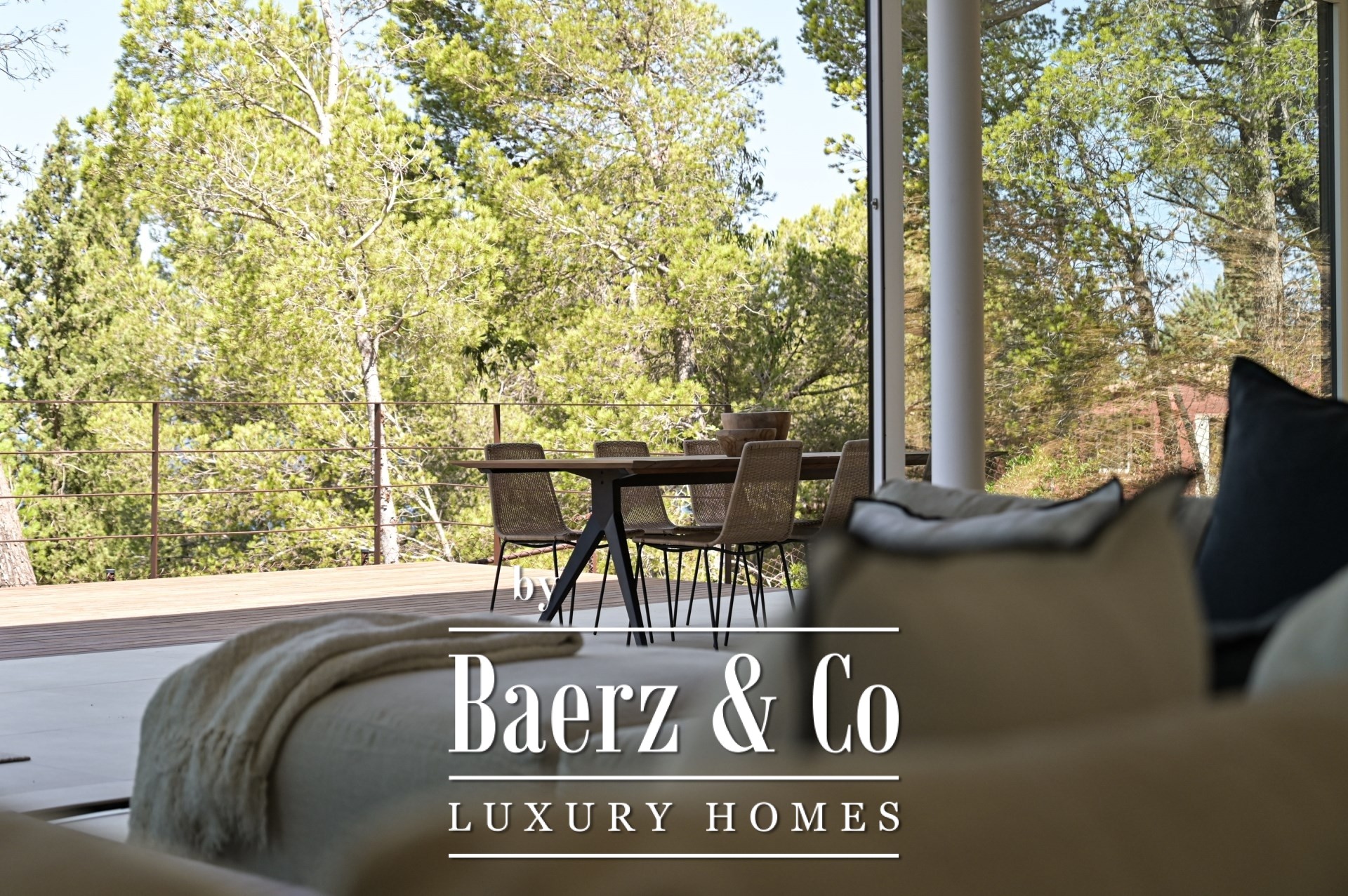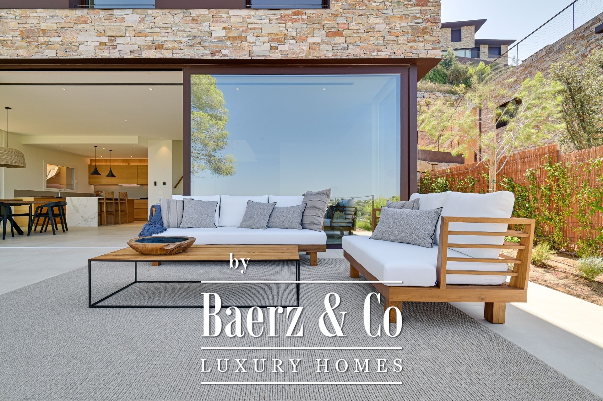 تقدم الفيلا مساحة معيشة تبلغ 347 مترًا مربعًا على أرض مساحتها 925 مترًا مربعًا، تضم أربع غرف نوم وثلاث حمامات. الواجهات الزجاجية ترحب بأجواء الطبيعة وتدمج الضوء المتوسطي في الداخل بشكل سلس. تهيمن المواد الفاخرة والتشطيبات المصممة خصيصًا على أجواء المكان، فيما تتيح الشرفات، وحوض السباحة، ومواقف السيارات، والحديقة المنسقة للسكان الاستمتاع بحياة خارجية هادئة وخاصة. توفر منظومة الإنذار ومدخل البوابة الأمان التام، فيما تمنح أنظمة التكييف والتدفئة راحة متواصلة على مدار العام.