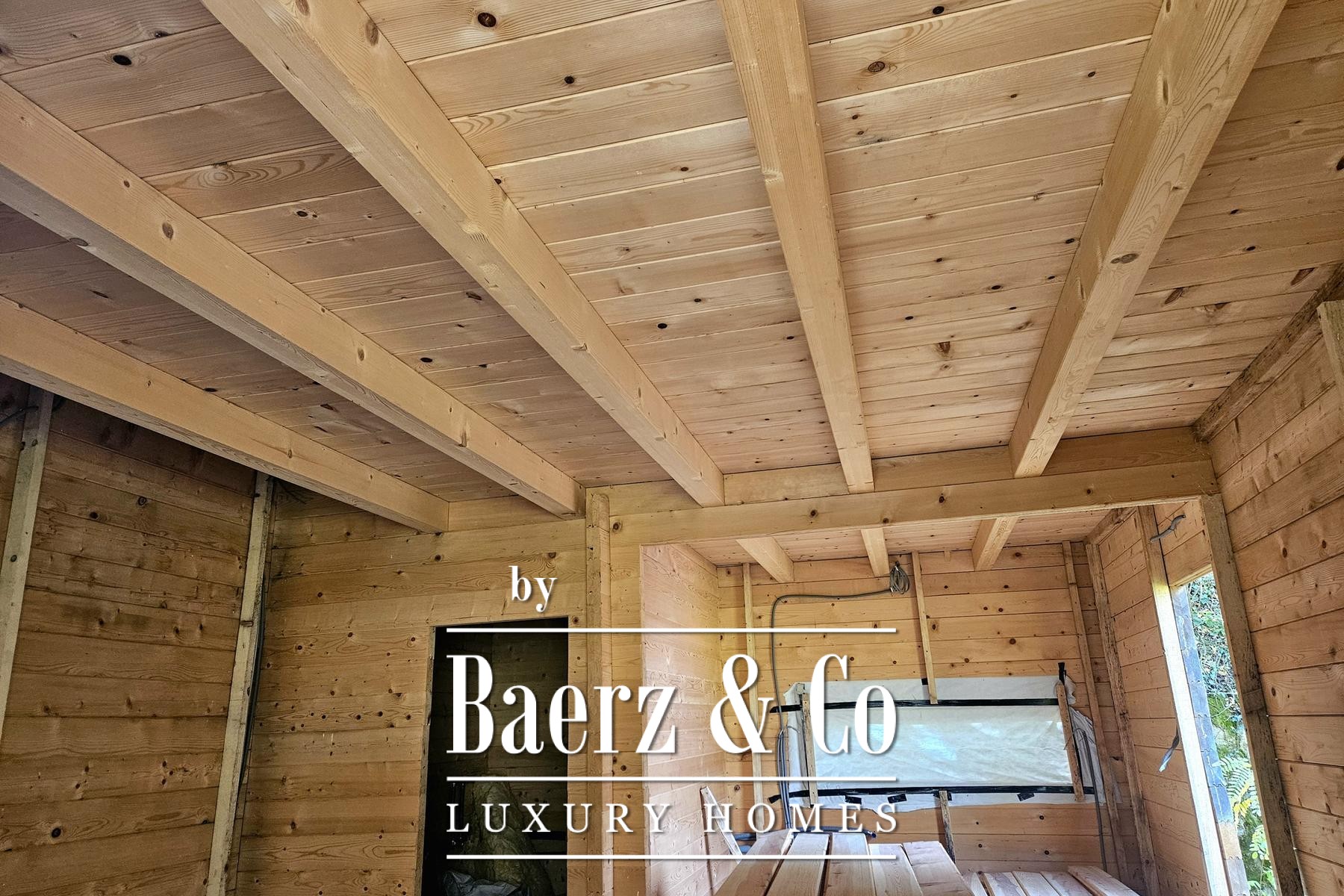 وبجوار المنزل الرئيسي، توفر خمسة منازل خشبية جديدة كل منها 80 متراً مربعاً من مساحة المعيشة. يتكوّن التصميم من منطقة معيشة مشرقة ودورة مياه في الطابق الأرضي، بينما يوجد غرفتا نوم في الطابق العلوي. تطل الشرفات الخاصة في الخلف على الأراضي الواسعة، مع نظام تدفئة صُمّم ليكون فعالاً ومستقلاً.