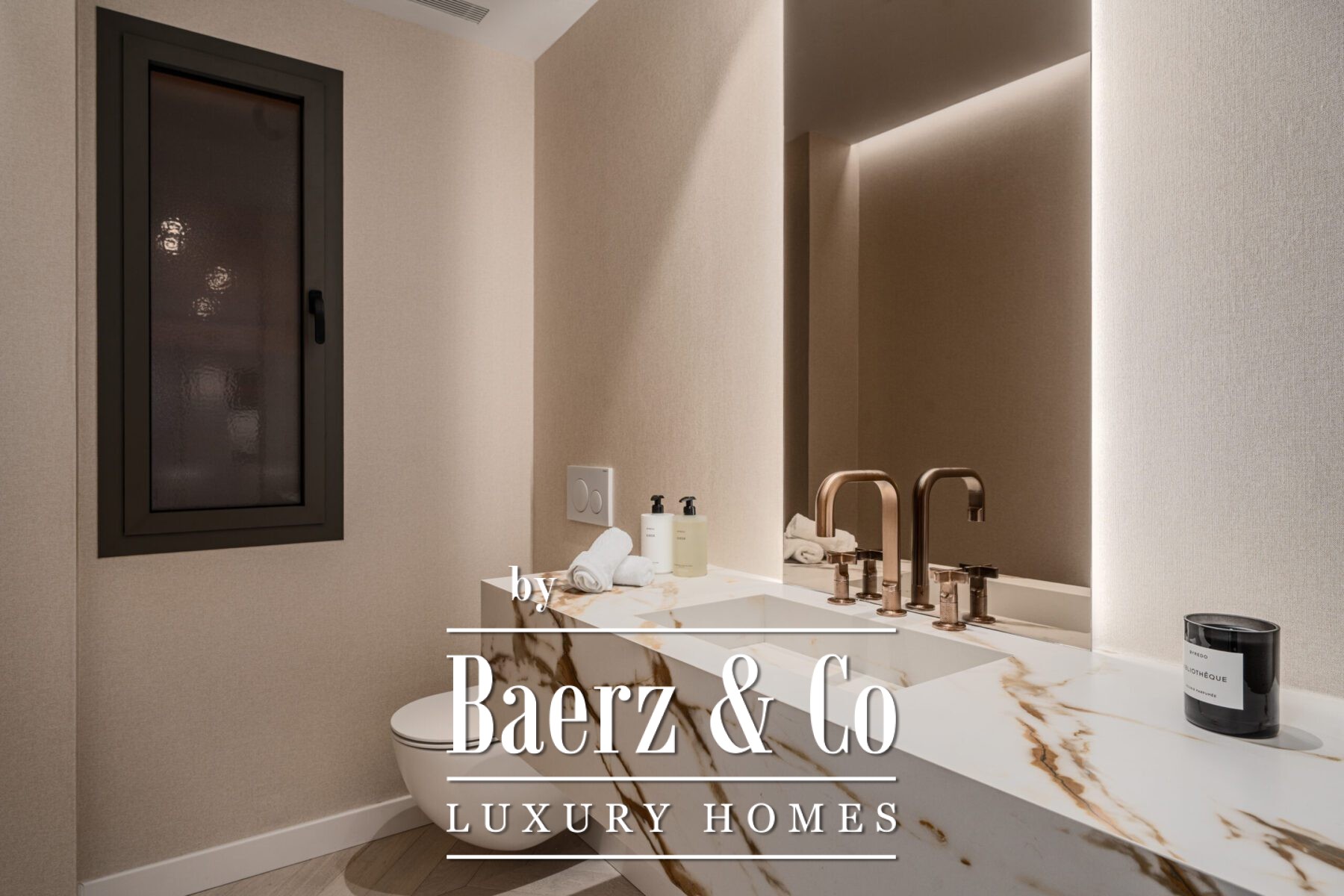 ضمن هذا المجمع السكني المسور الآمن المزود بخدمات أمنية على مدار الساعة، تكشف هذه الشقة المؤلفة من أربع غرف نوم وأربع حمامات ونصف عن تفاصيل مصقولة بعناية. نوافذ تمتد من الأرض حتى السقف تضيء منطقة المعيشة وتناول الطعام المفتوحة، امتداداً سلساً نحو شرفة واسعة صممت لساعات من الهدوء أو للترفيه تحت سماء ماربيا. المطبخ مزود بأجهزة Gaggenau، وأرضيات من خشب البلوط الطبيعي، ونظام ذكي متكامل للمنزل يعزز الشعور بالفخامة المترفة والسهولة.
