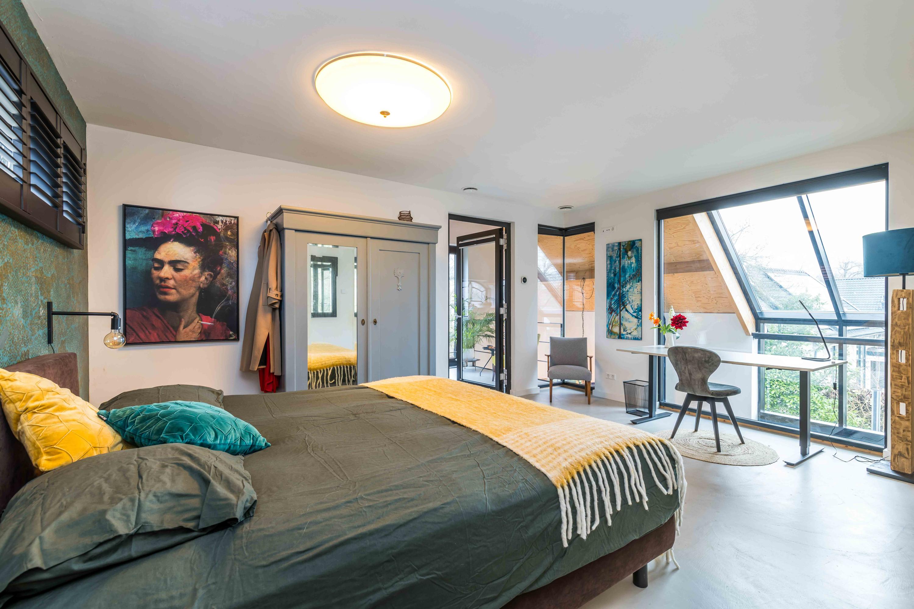 أربع غرف نوم وحمَّامان يوفران ملاذات خاصة. الجناح الرئيسي يحتوي على حمَّام خاص مع حوض استحمام ودش منفصل وإطلالة على الحديقة. من المزايا الإضافية قبو نبيذ وقبوَان بمساحة إجمالية 32 متر مربع، ومستودع خارجي، وسقيفة سيارات مع محطة شحن كهربائي، وأربعون لوحة شمسية تحقق تصنيف الطاقة A. الأراضي مزروعة بأسيجة وأشجار فاكهة وغابة غذائية، وتوفر عدة أماكن جلوس مشمسة وخصوصية تامة. سهولة الوصول إلى وسائل النقل والمتاجر وحدائق روتردام الخضراء تضمن وتيرة حياة متزنة ومطمئنة. تعكس هذه الفيلا الفاخرة المعروضة للبيع في روتردام ترميماً مدروساً وتصميماً فعالاً وحضوراً معمارياً دائماً.