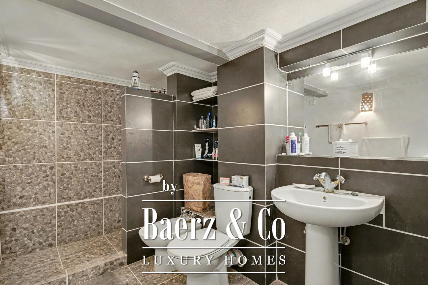 يستقبلك الطابق الرئيسي بشرفة شتوية زجاجية تطل على الأفق والبحر، وتفتح بسلاسة على غرفة معيشة مع مدفأة، ومطبخ مجهز، وغرفة نوم واحدة، وحمام، ومكتب. نزولاً إلى الطابق السفلي، هناك غرفتان إضافيتان متصلتان بحمام فسيح ومنطقة تبديل ملابس وغرفة غسيل، لتصبح ملاذاً عملياً وهادئاً في الوقت ذاته.