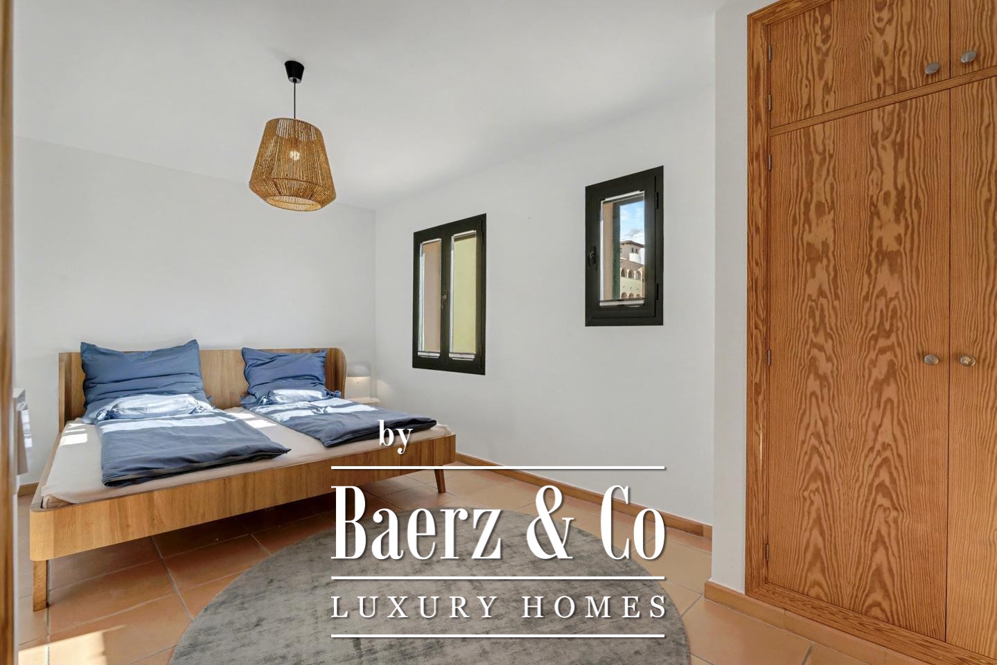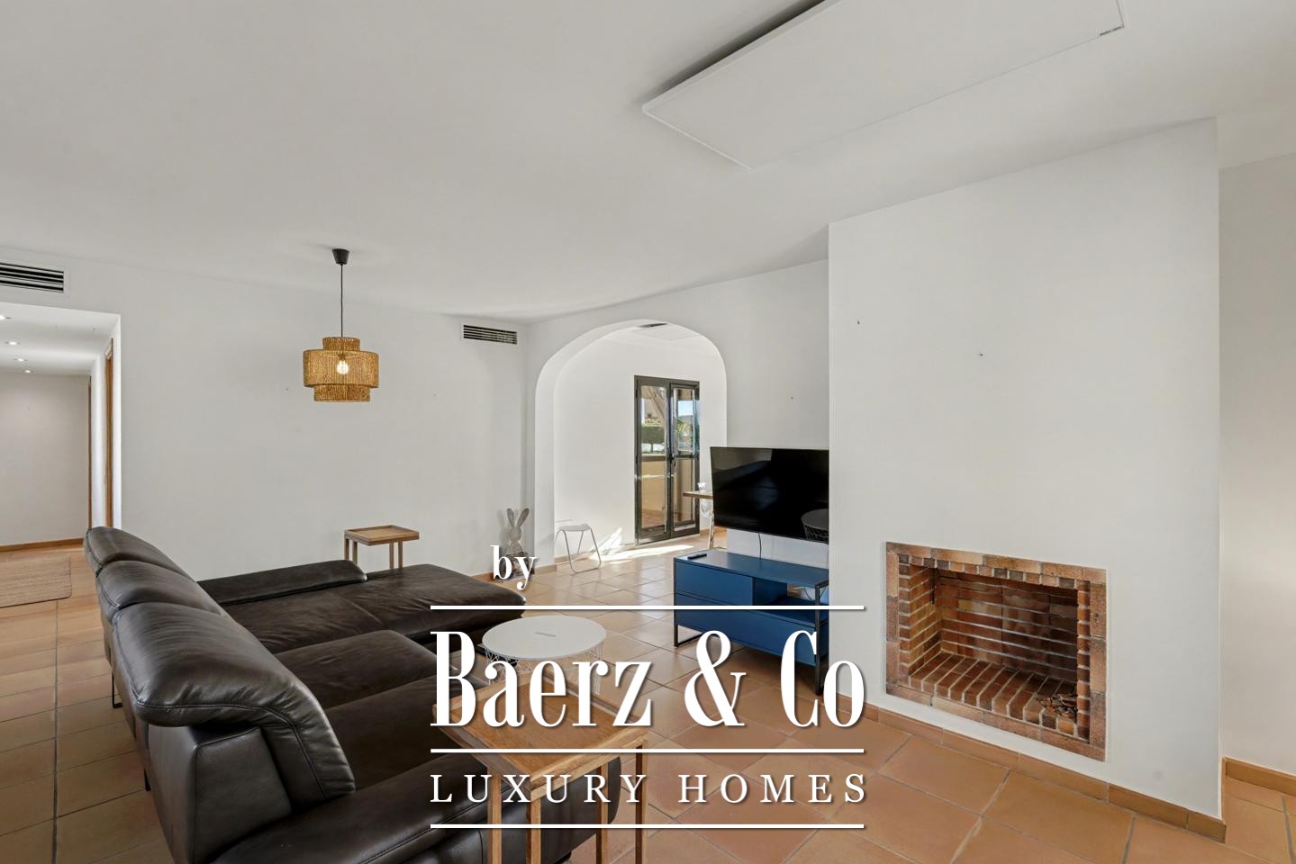 يستقبلك ردهة دخول فسيحة نحو مساحات داخلية أنيقة ومضيئة. وتطل غرفة المعيشة المزودة بمدفأة على تراس يصبح فيه البحر حضوراً دائماً. تنتقل منطقة المطبخ المفتوح وغرفة الطعام إلى تراس ثانٍ مثالي للجلسات الخارجية، ويتصل عبر درج خارجي بحدائق متوسطية مشتركة وحوض سباحة.