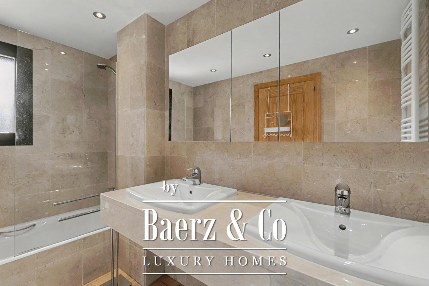 تتمتع غرفة النوم الرئيسية بحمام خاص، بينما توفر غرفة الضيوف والحمام المستقل أجواء من الراحة والهدوء. ارتقِ إلى تراس السطح الخاص عبر درج البرج للاستمتاع بالشمس طوال النهار والمشاهد البانورامية للخليج. يضمن التكييف، ونظام الإنذار، ومواقف السيارات المشتركة أقصى درجات الراحة والأمان.