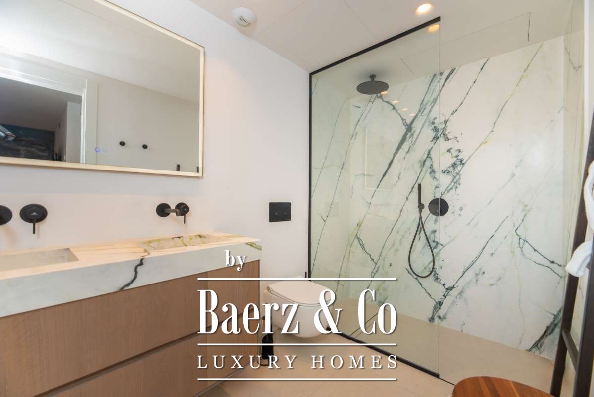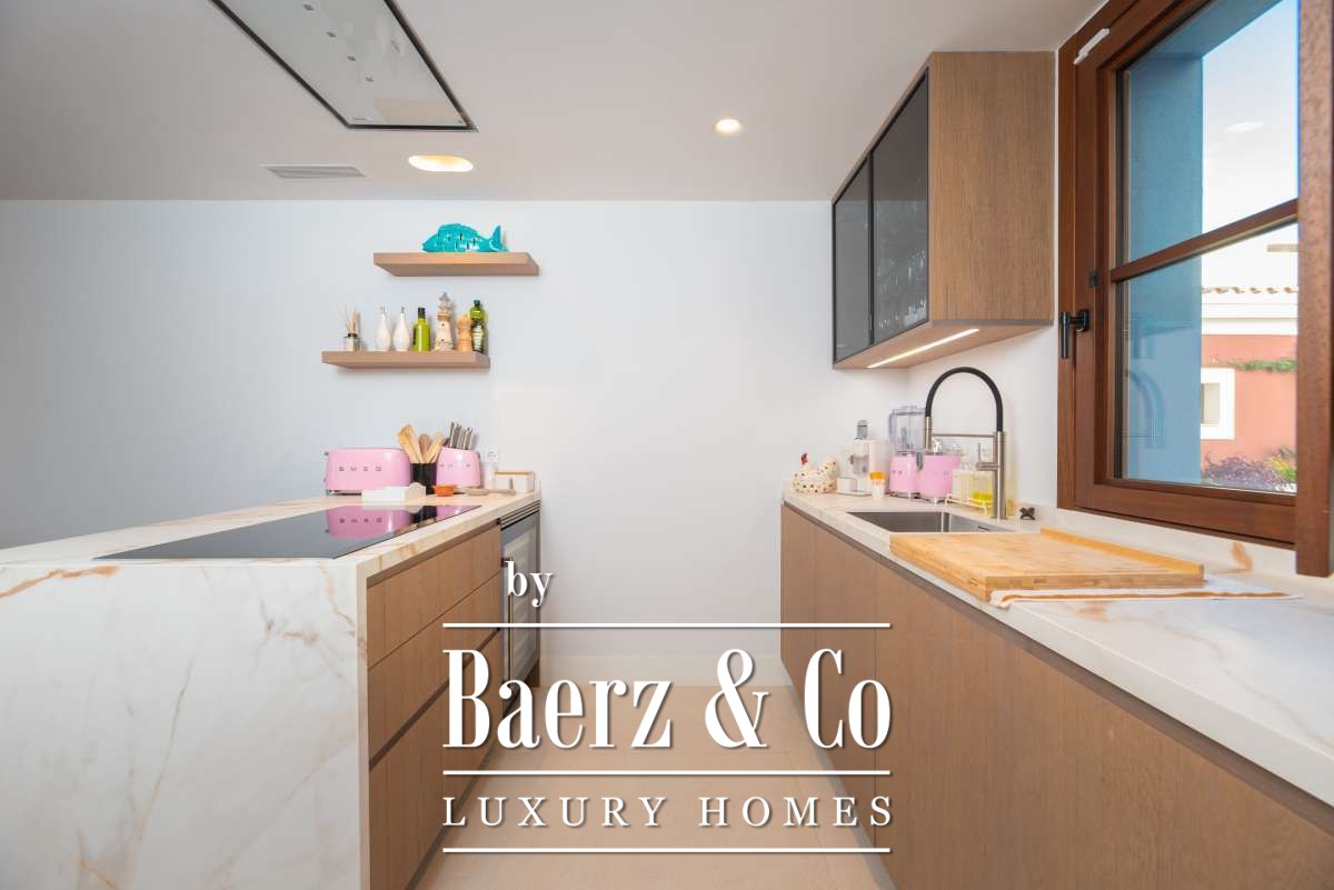 تظهر العناية في اختيار المواد وجودة التنفيذ في كافة التفصيلات، من الأرضيات حتى الإضاءة. في الخارج، تمتد الملكية إلى شرفة واسعة وسطح مذهل يعلوه مسبح خاص يطل على مناظر بانورامية لبلدة Santa Gertrudis. يثري الأجواء وجود حديقة هادئة وتوفير مرافق مستدامة كالمضخة الحرارية، مما يضفي إحساسًا خالدًا بالكفاءة والسكينة.