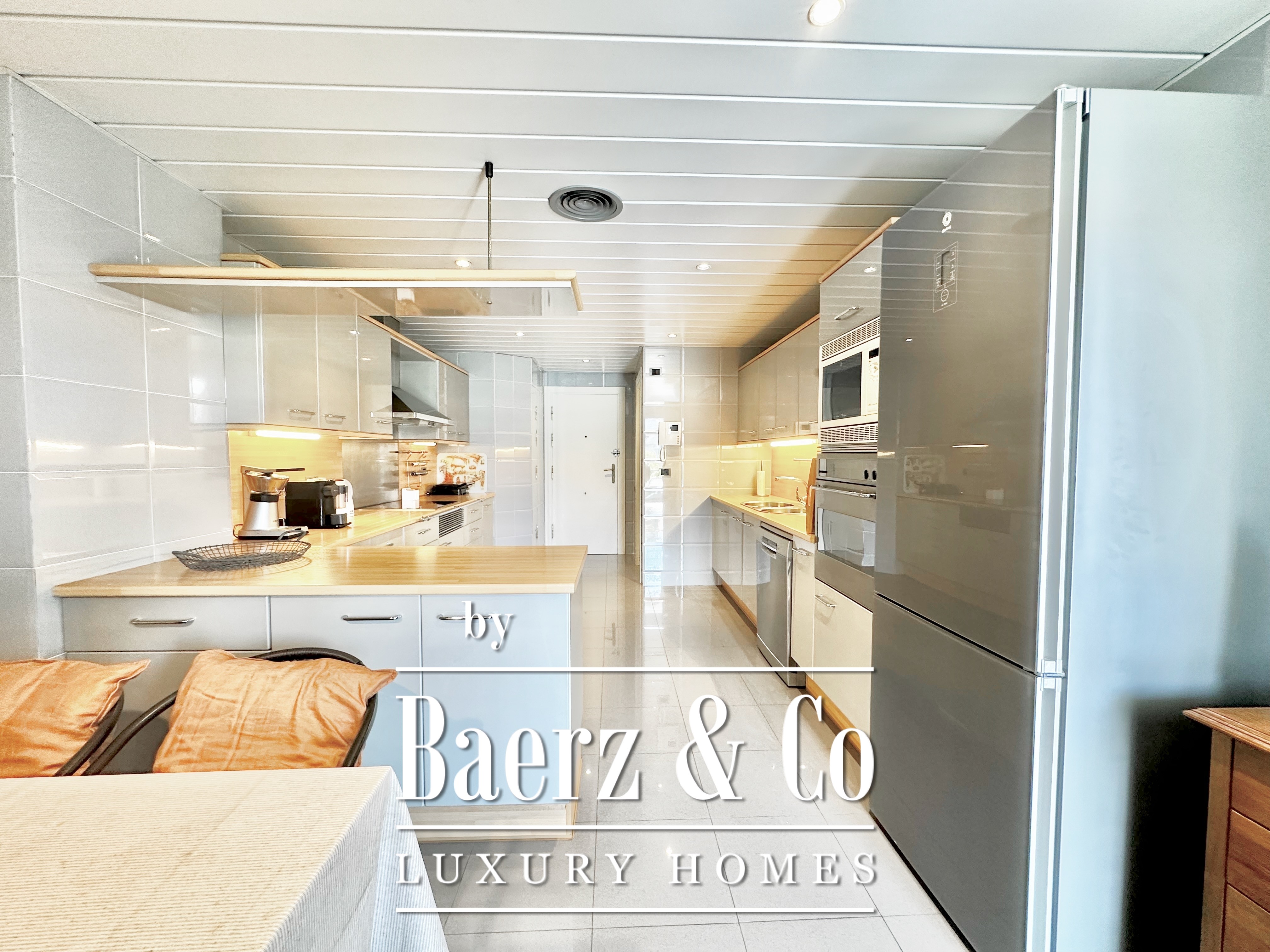 يمتد شرفتان واسعتان بمساحة إجمالية تبلغ 71 مترًا مربعًا على محيط الشقة، تطل إحداهما على الحدائق المشتركة الهادئة، بينما تقع الأخرى مباشرة فوق الساحل لتوفر رؤية بانورامية من دون عوائق. يندمج المطبخ ومساحة الطعام بين العملية والانفتاح، ويمتدان نحو تراس مؤطر بالخضرة. تم تحديث العقار مؤخرًا ويشمل مكانين لوقوف السيارات ووحدة تخزين بمساحة 14 مترًا مربعًا.