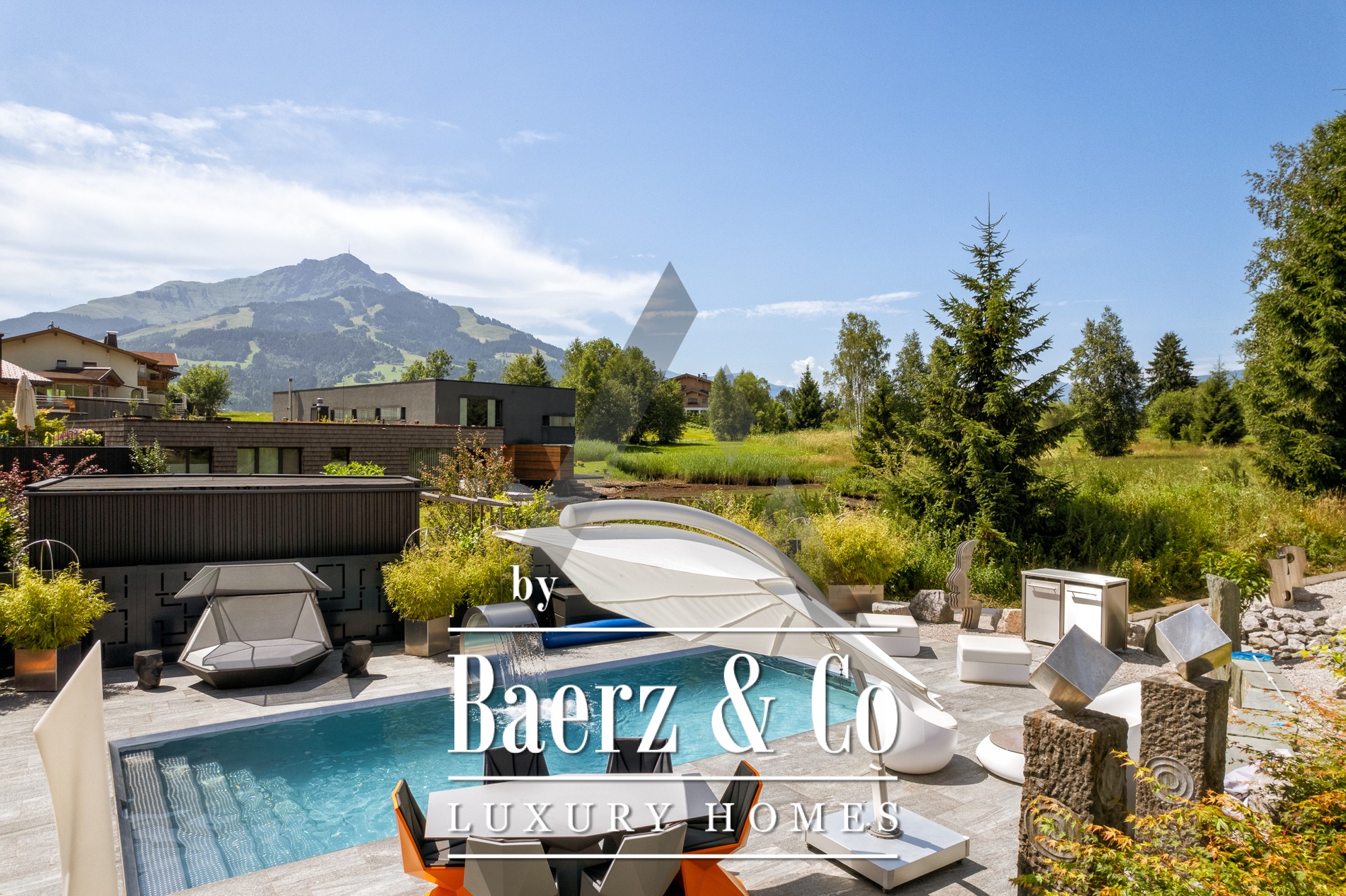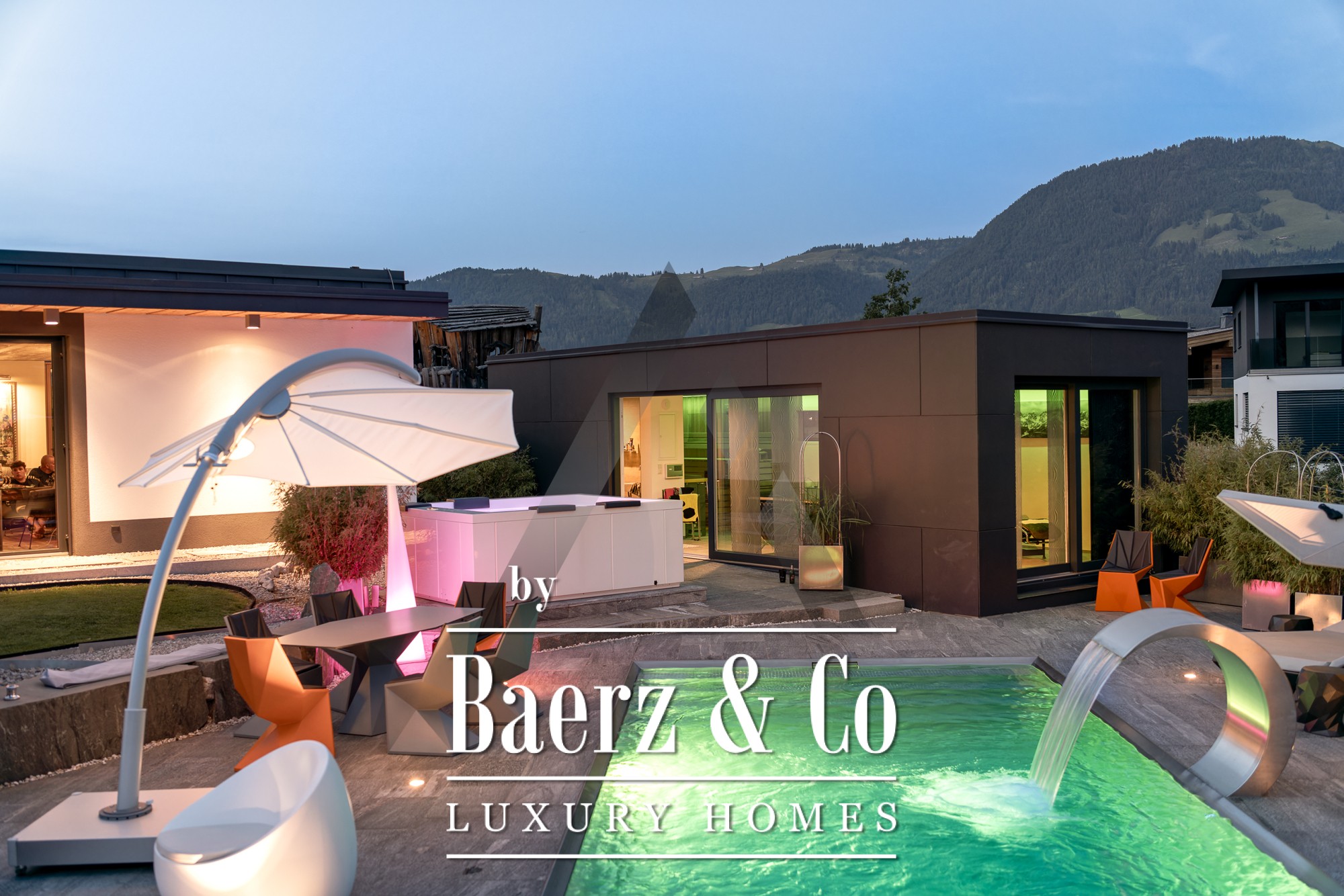 يقع المنزل المنفصل في سانت يوهان إن تيرول في موقع هادئ تغمره أشعة الشمس، ويوفر إطلالات شاملة على جبال كيتسبويل هورن وويلدر كايزر. تعكس هذه الملكية العصرية، بمساحة معيشة تبلغ 418 م² على قطعة أرض مساحتها 1,186 م²، جوهر الحياة الجبلية الراقية. تنسحب أمامك مناظر طبيعية شاعرية تشمل بركة مياه، جداول مصممة بعناية، تراسات واسعة، وإطلالات بانورامية على الجبال. تعزز الخيارات الخارجية بحوض سباحة من الفولاذ المقاوم للصدأ، وجاكوزي Treesse المصمم، وساونا، لتدعوك لصباحات هانئة وبعد الظهر مفعمة بالاسترخاء.
