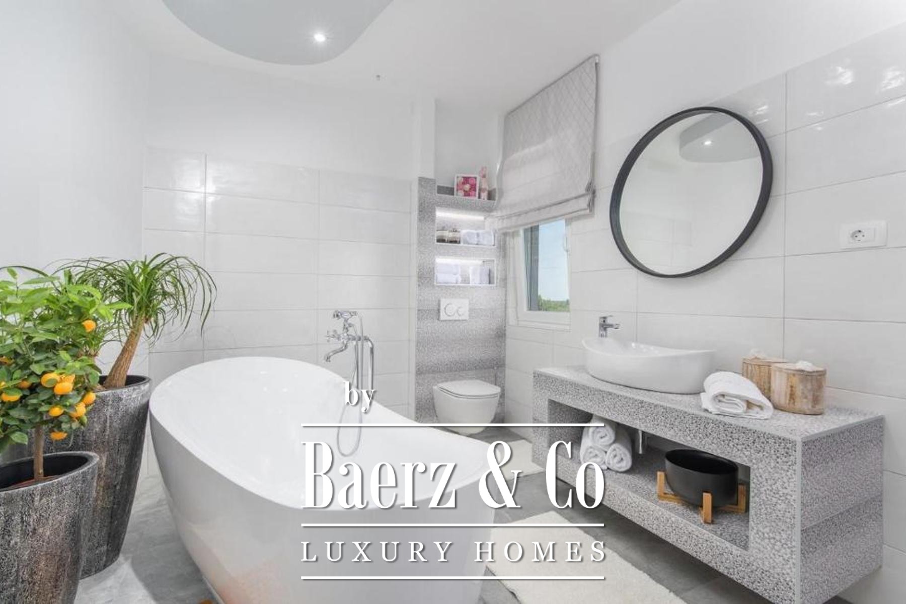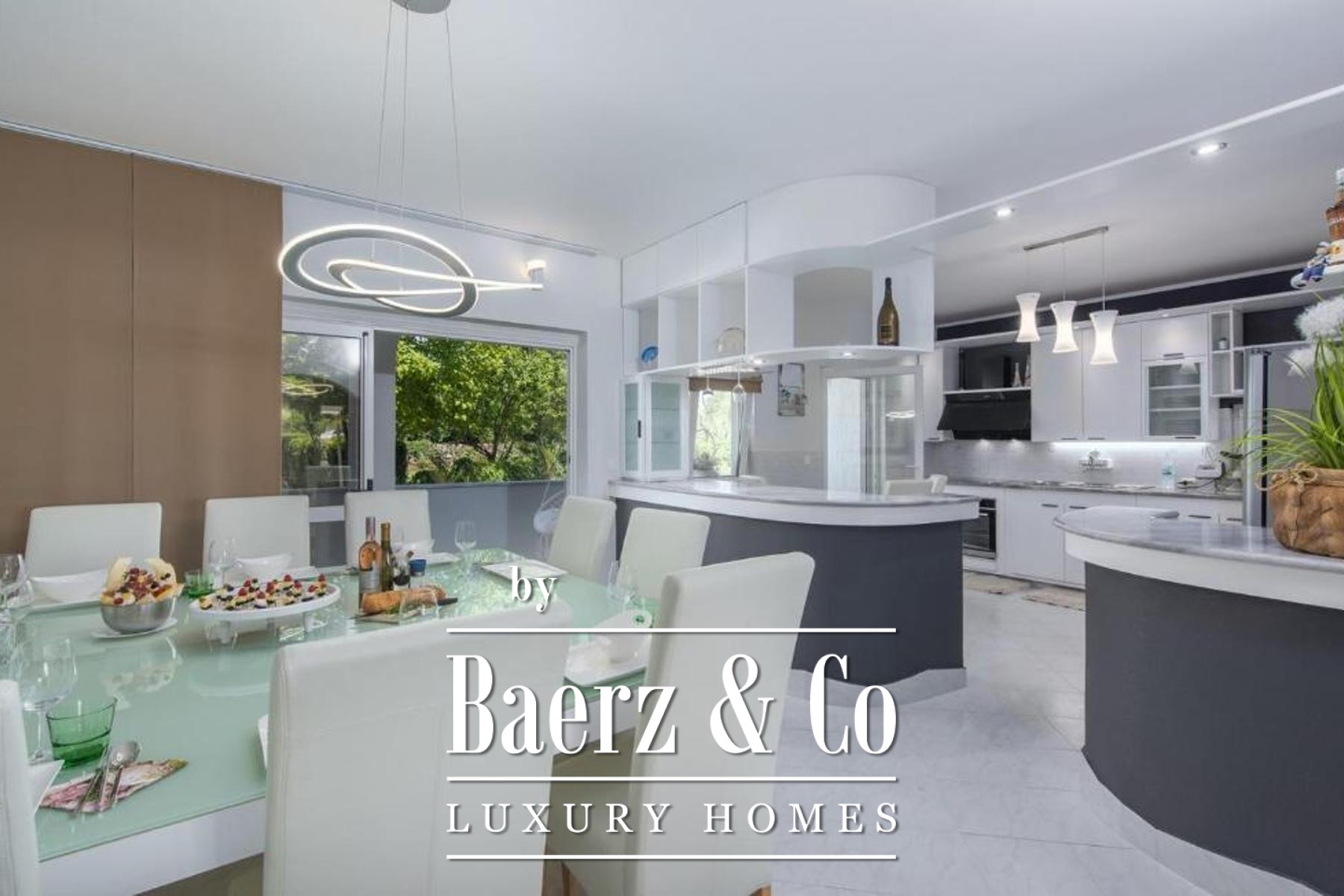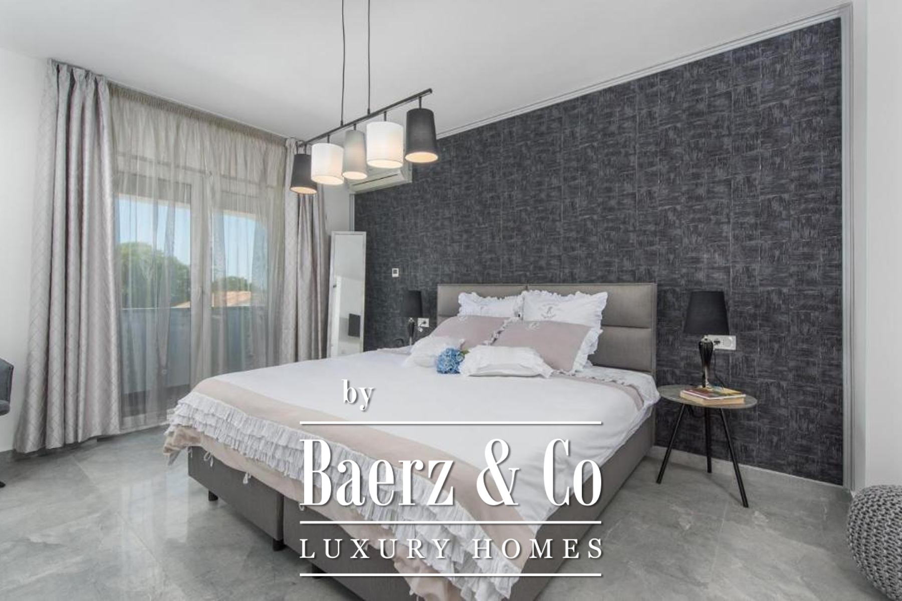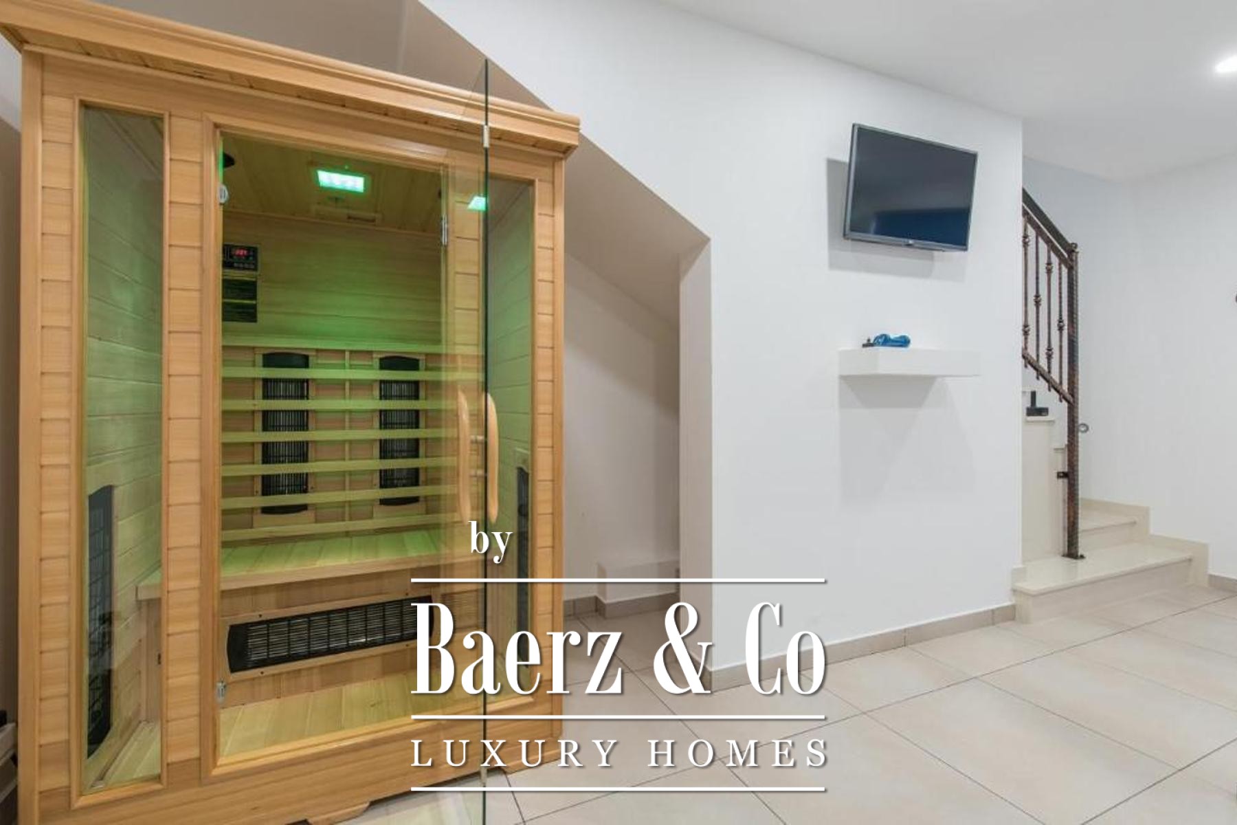 يضم الطابق الأرضي مساحات داخلية واسعة تمتد بسلاسة إلى المناطق الخارجية مع مسبح بمساحة 30 مترًا مربعًا وجاكوزي وتراسين مغطى وغرفة معيشة متصلة مباشرة بالحديقة. تفتح المطبخ ومنطقة الطعام على تراس خاص بهما، ما يجعل المكان مثاليًا للاجتماعات تحت الشمس أو الظل. يحتوي القبو على صالة رياضية وساونا لتعزيز الاسترخاء والصحة. يضم الطابق الأول ثلاث غرف نوم وثلاثة حمامات مع إمكانية الوصول إلى شرفة تطل على مناظر طبيعية مريحة وبحر بعيد. يوفر الطابق العلوي غرفتي نوم إضافيتين وحمامين، ما يضمن الخصوصية للضيوف أو أفراد الأسرة، ويتضمن الميزانين غرفة نوم بحمام داخلي لمزيد من الراحة.