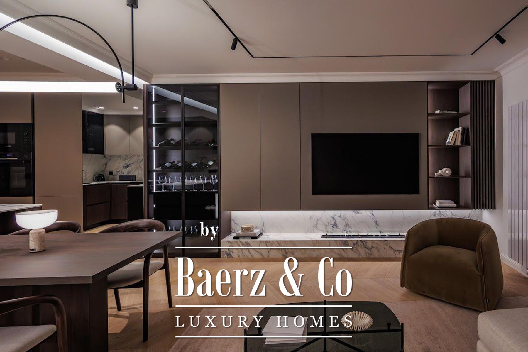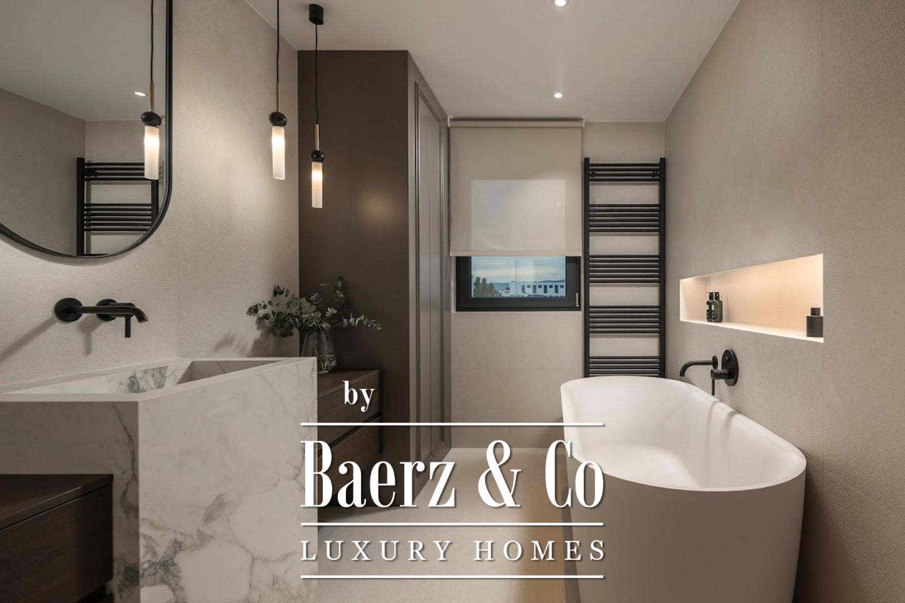 من الدخول المباشر بالمصعد بين الجراج تحت الأرض والبوابة الخاصة، يبرز البنتهاوس خصوصية استثنائية وسرية عالية. يضم المسكن خمس غرف نوم وخمس حمامات، جميعها تحتوي على تجهيزات صحية مخصصة وتدفئة تحت الأرضية. تغمُر المساحات المعيشية أشعة الضوء، مع أرضيات باركيه شيفرون Boen الأنيقة، ونوافذ ألومنيوم ثلاثية الطبقات، وإضاءة LED متكاملة تمنح المكان أجواء راقية ودافئة.
