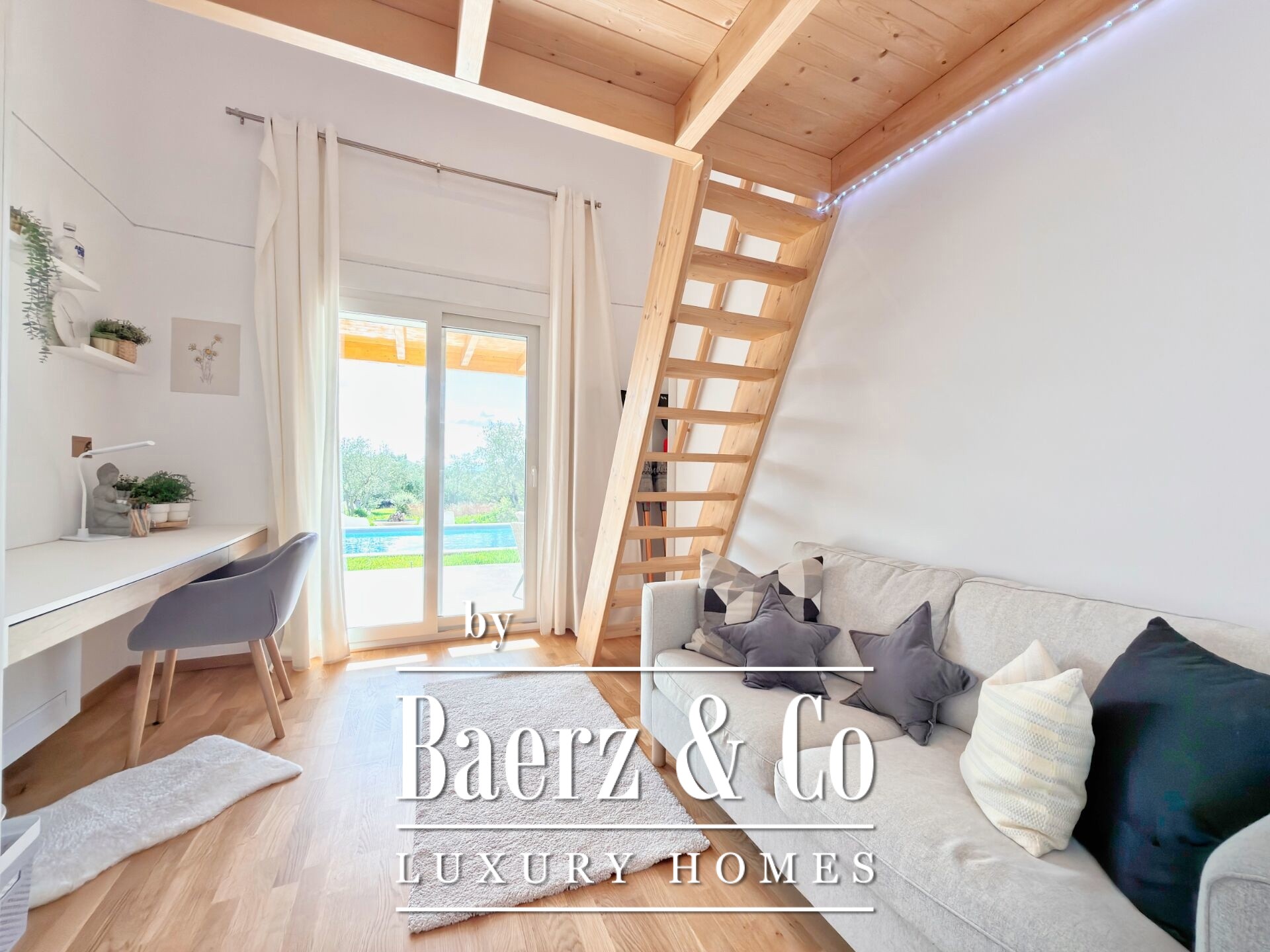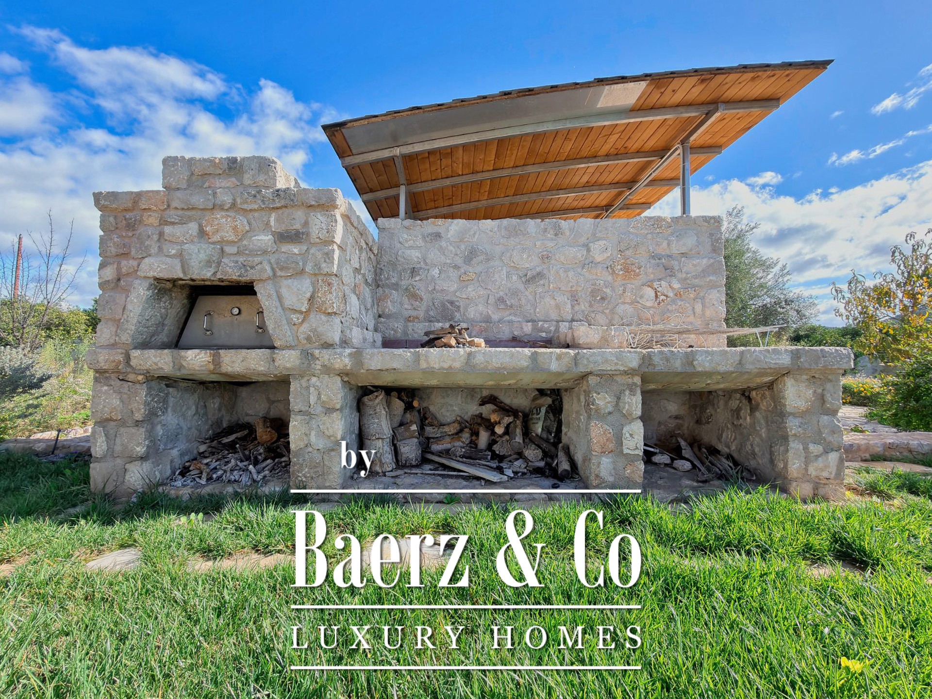Das Leben hier wird vom Garten geprägt, in dem Obst- und Olivenbäume, saisonale Blumen und liebevoll angelegte Steinecken eine seltene Oase schaffen. Ein Brasero, Grill mit traditionellem Holzofen sowie ein komplett ausgestattetes Außenbad laden zu gesellschaftlichen Zusammenkünften ein. Die Immobilie bietet zudem Platz für vier Fahrzeuge und einen 15 m² großen Lagercontainer, sodass Funktionalität und durchdachtes Design Hand in Hand gehen.