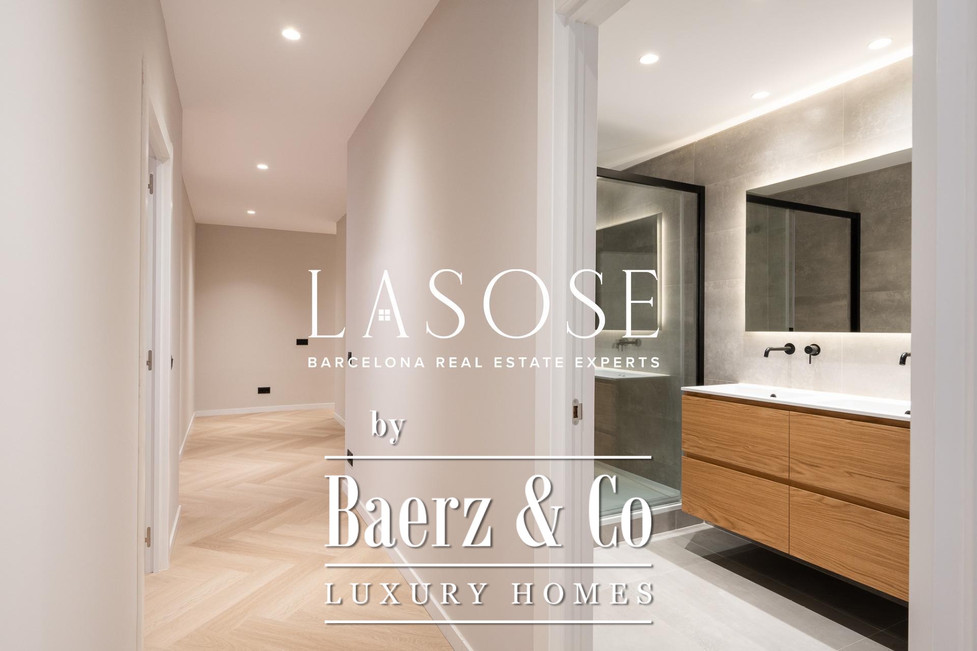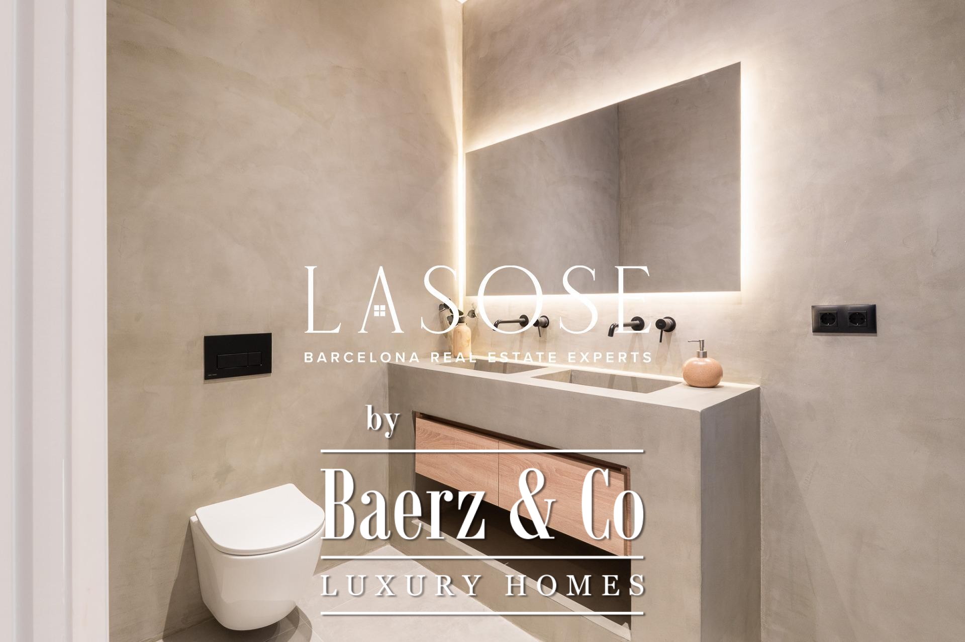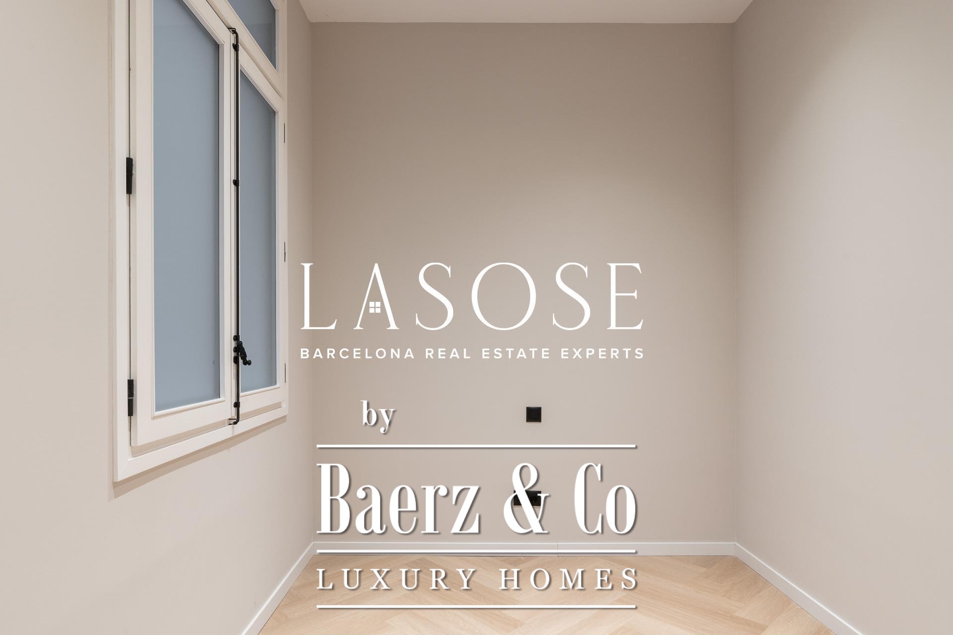 Drei Schlafzimmer, darunter eine Master-Suite mit eigenem Bad und separatem Ankleidezimmer, werden durch Einbauschränke und individuell angefertigte Tischlerarbeiten ergänzt. Für Komfort sorgen eine aerothermische Klimaanlage sowie doppelt verglaste Holzfenster. Die Bewohner profitieren vom Komfort eines Aufzugs, Concierge-Service, Video-Gegensprechanlage und einer sicheren gepanzerten Tür. Die Variante "Luxusapartment zum Verkauf in Barcelona" eignet sich ideal für Menschen, die Diskretion und Design schätzen.