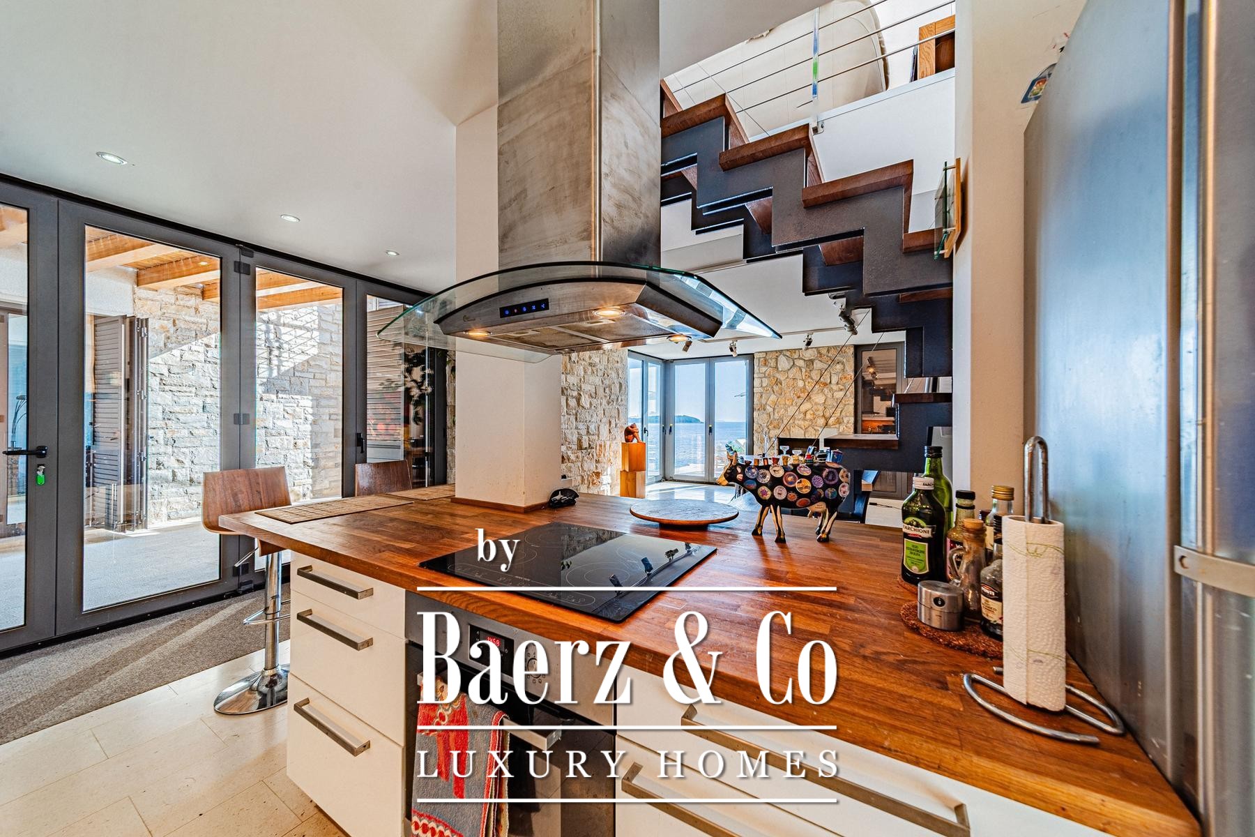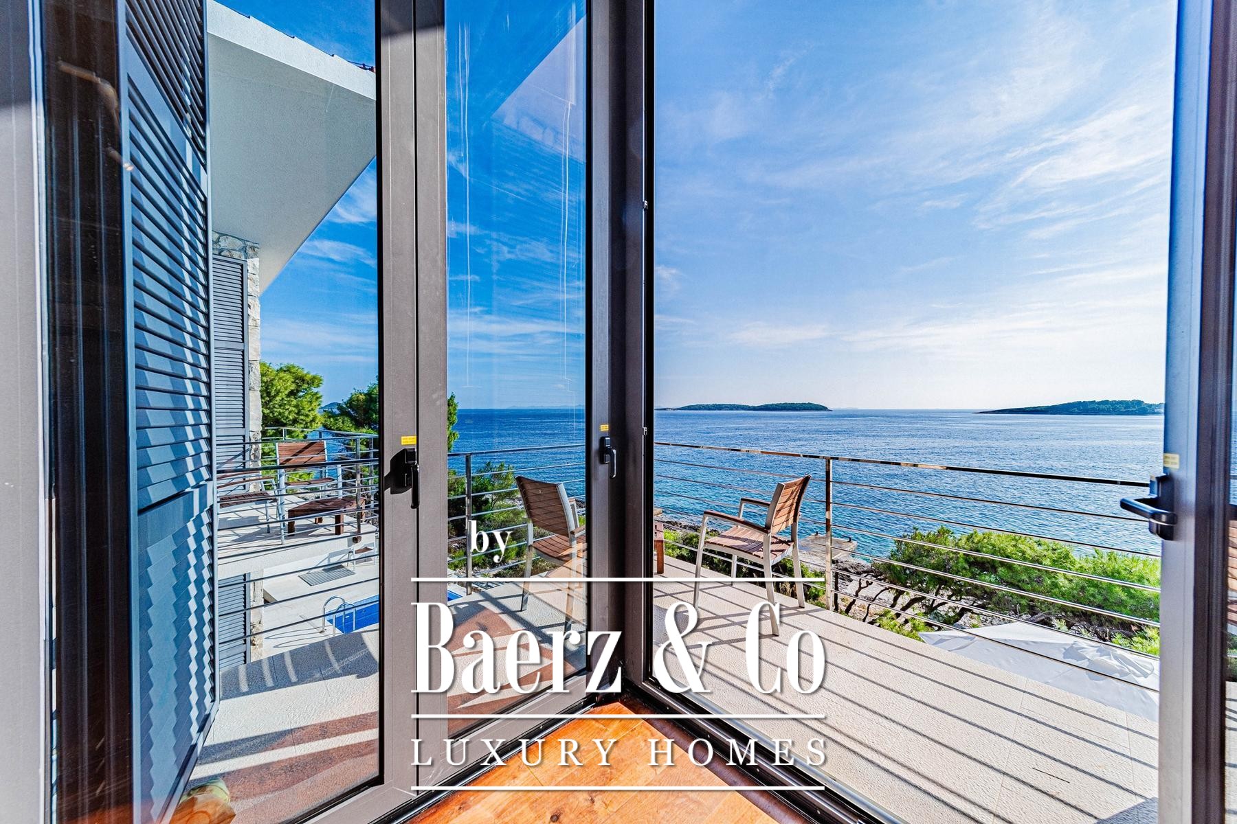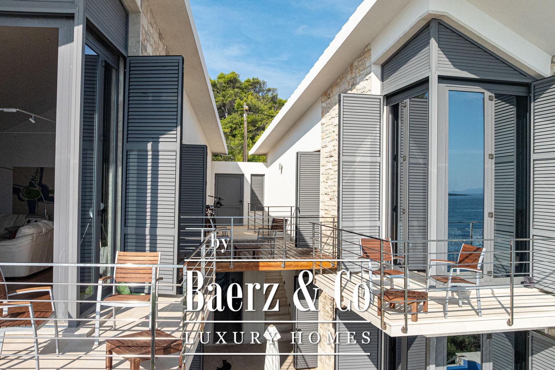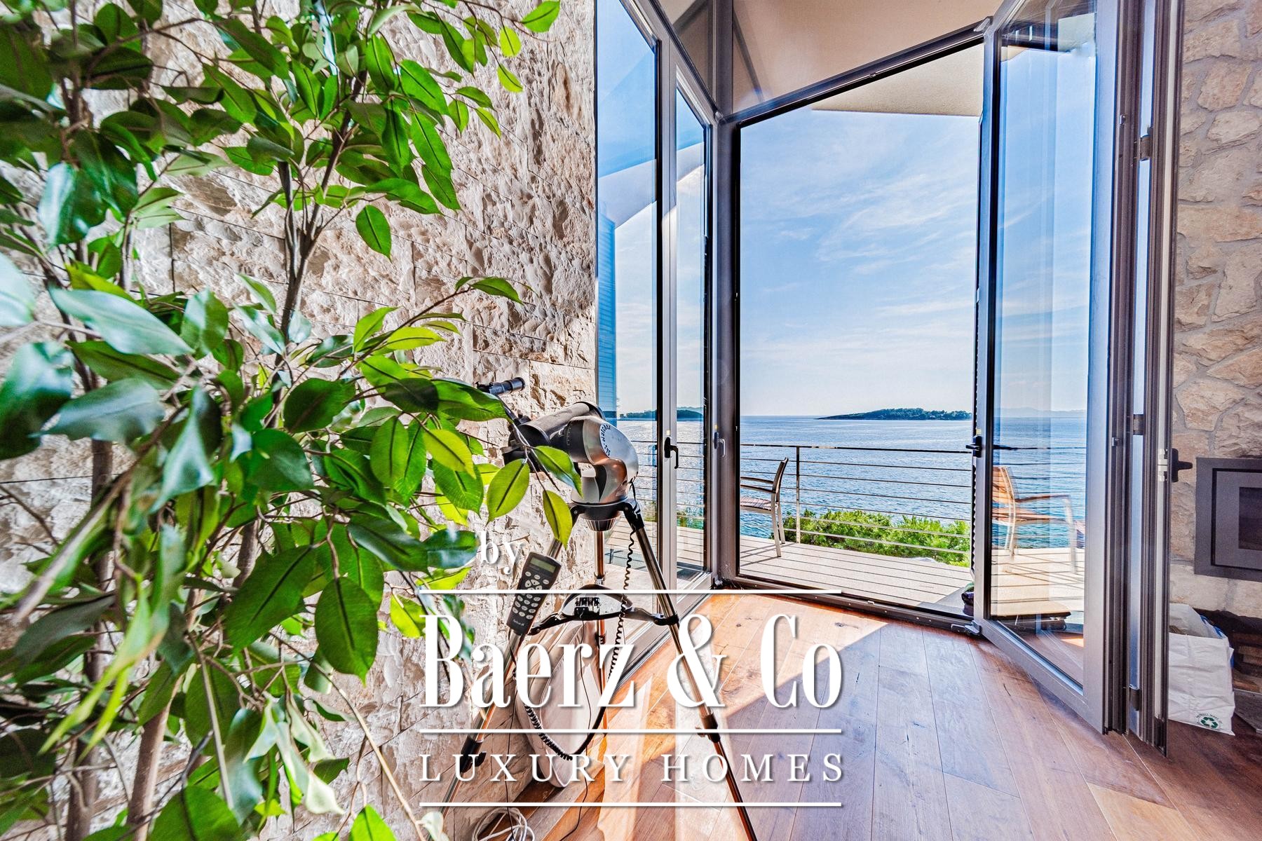 Blickachsen von Boden bis zur Decke eröffnen das Panorama der Adria und des Lastovo-Archipels und unterstreichen das Erlebnis der Villa Blato als Oase von Privatsphäre, Gelassenheit und ursprünglicher Schönheit – eine wahre Verkörperung kroatischen Küstenlebens.