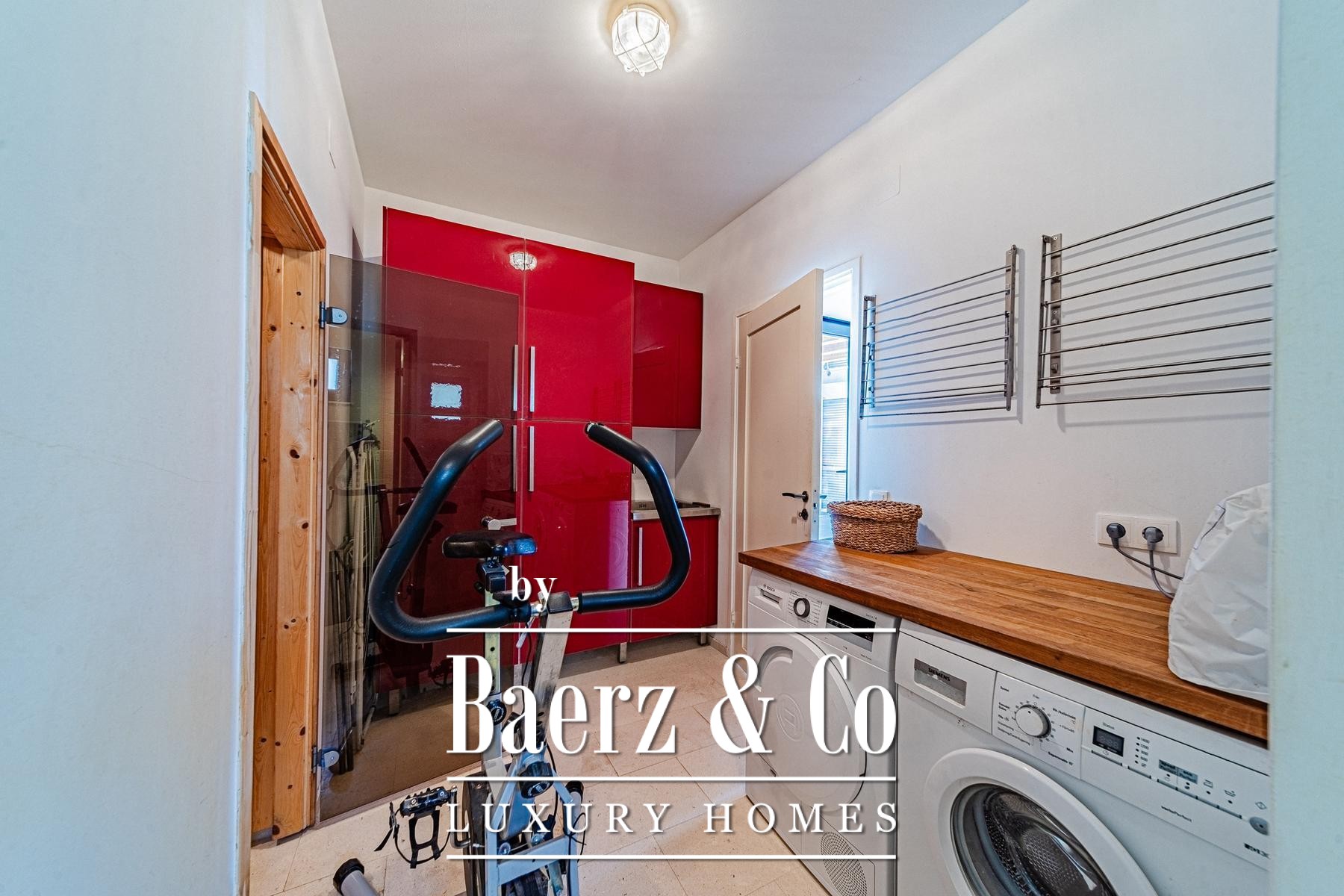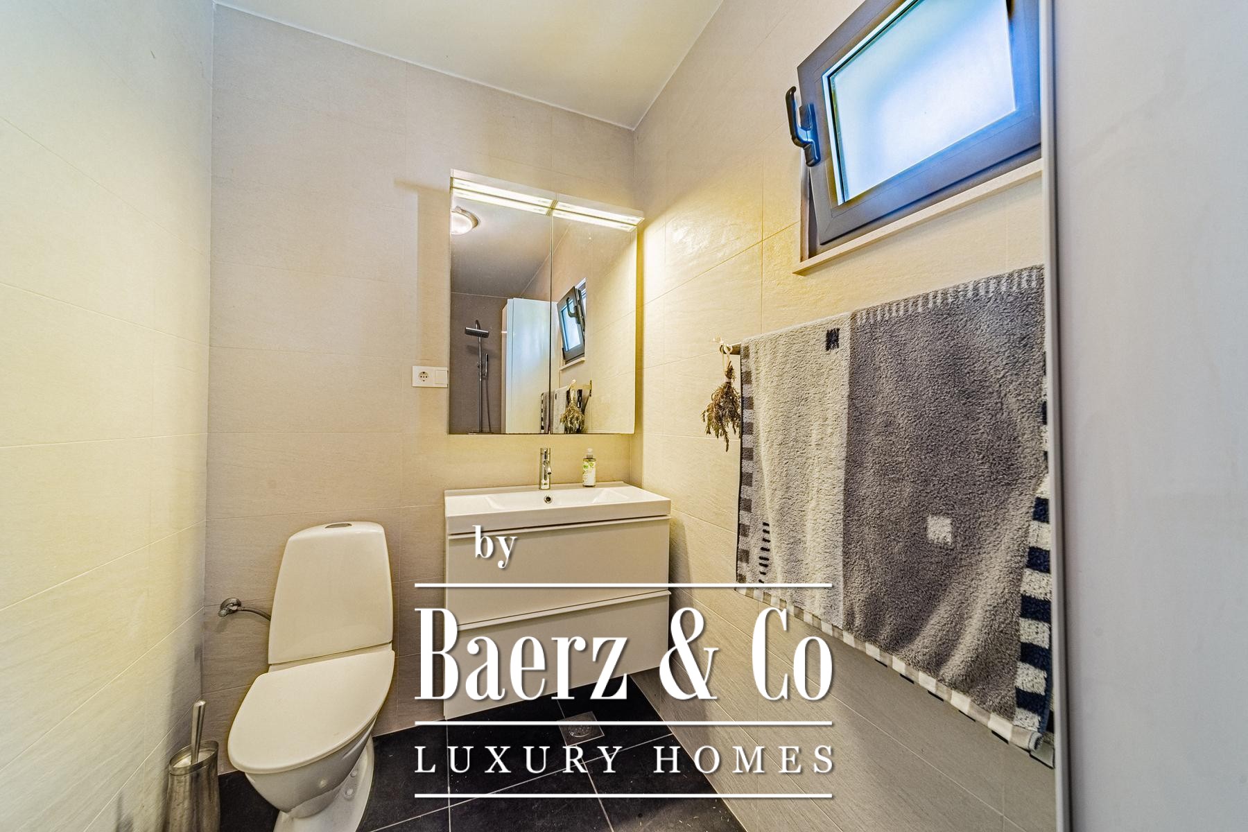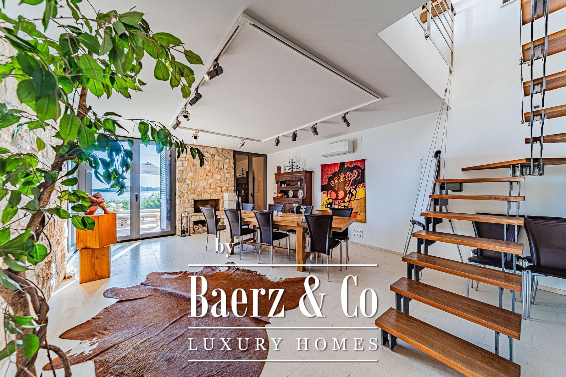 Die Außenanlage vor der Villa zeichnet sich durch hellen Natursteinbelag, einen Swimmingpool und ausgewiesene Sonnenbereiche aus, alles darauf ausgerichtet, das entspannte Leben am Meer zu fördern. Ein Fußweg führt Sie in nur 15 Metern direkt ans Wasser, wo ein kleiner Steg das Anlegen eines Bootes sowie private Rückzugsorte ermöglicht. Hochwertige Materialien und sorgfältig ausgewählte Innenausstattungen sorgen durchgehend für dezente Exklusivität.