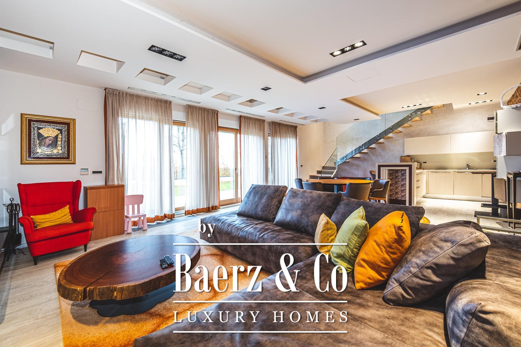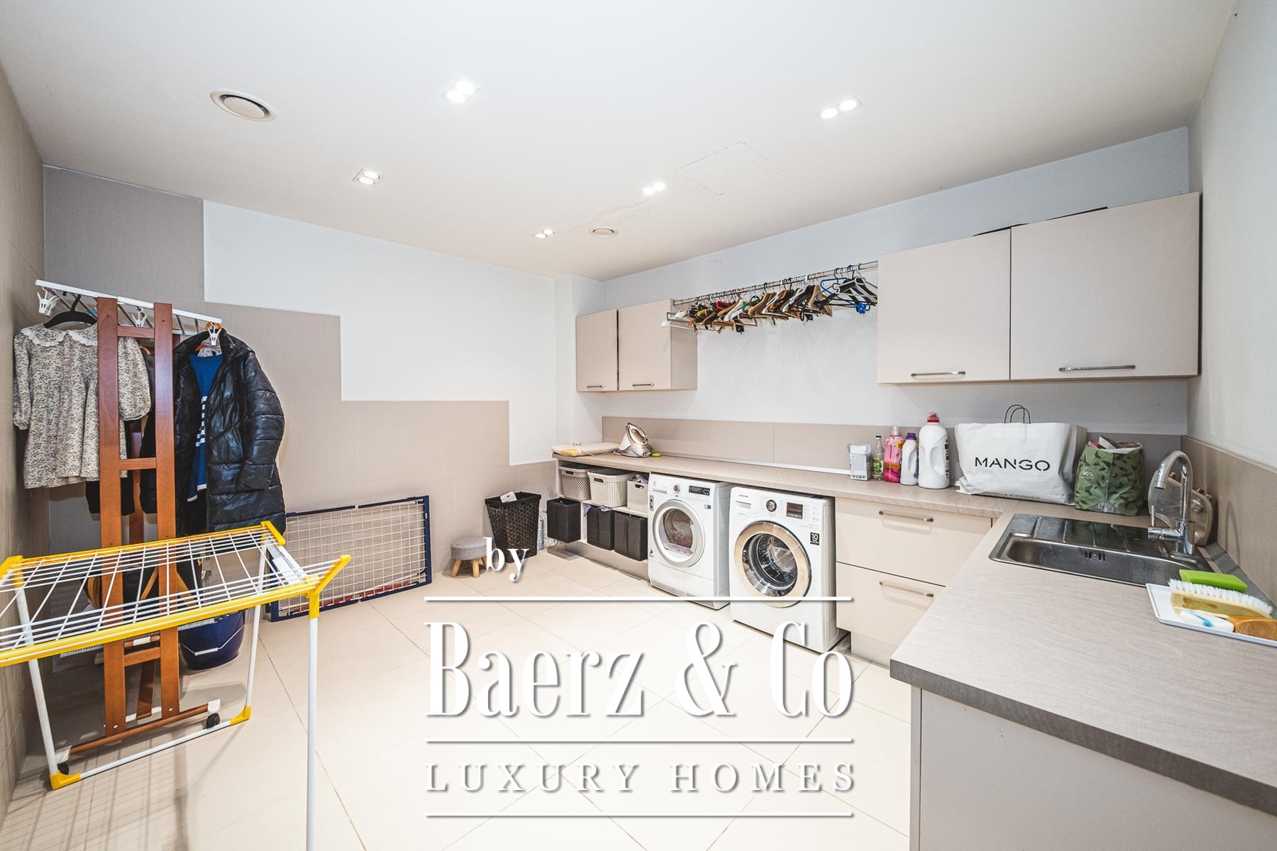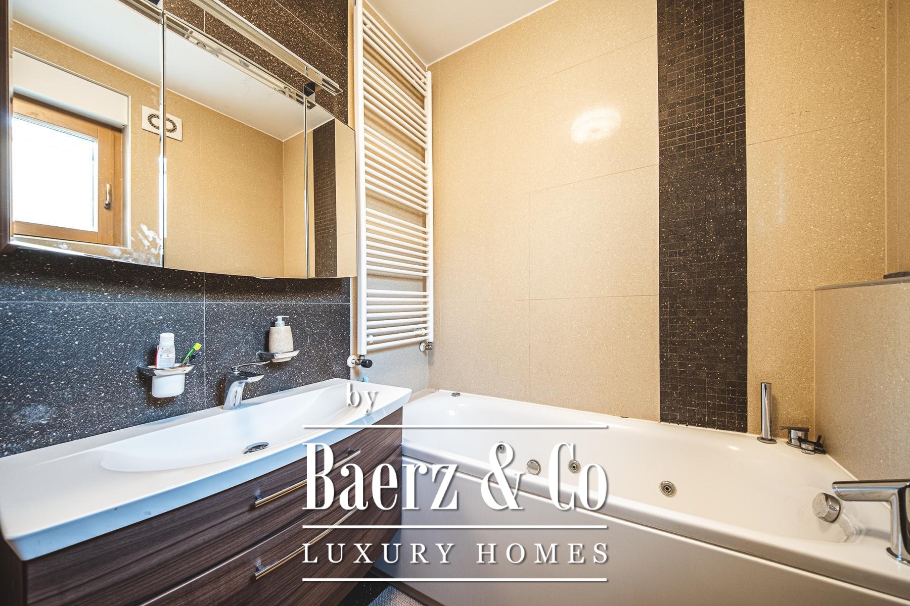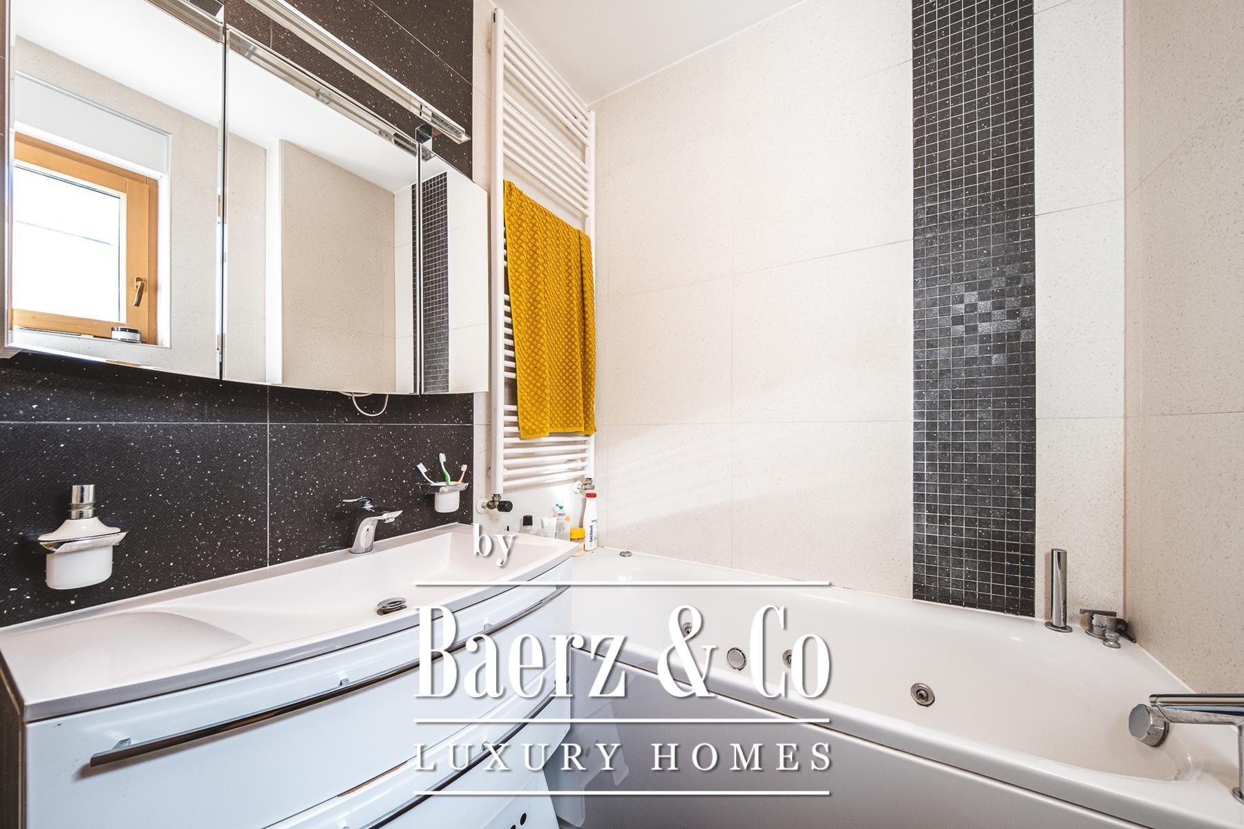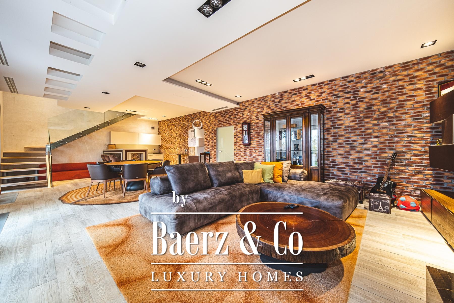 Im Erdgeschoss durchflutet Tageslicht die offenen Wohnbereiche. Der Eingangsbereich verleiht dem Haus eine souveräne Atmosphäre und erschließt eine moderne Küche, einen Essbereich sowie ein einladendes Wohnzimmer. Zusätzliche Annehmlichkeiten umfassen eine Speisekammer, eine Garderobe und Gäste-WCs. Im Untergeschoss bieten ein privater Salon, Hauswirtschaftsraum, ein Bad mit Dusche und zusätzlicher Stauraum flexible Nutzungsmöglichkeiten für Wellness, Freizeit oder diskrete Zusammenkünfte.