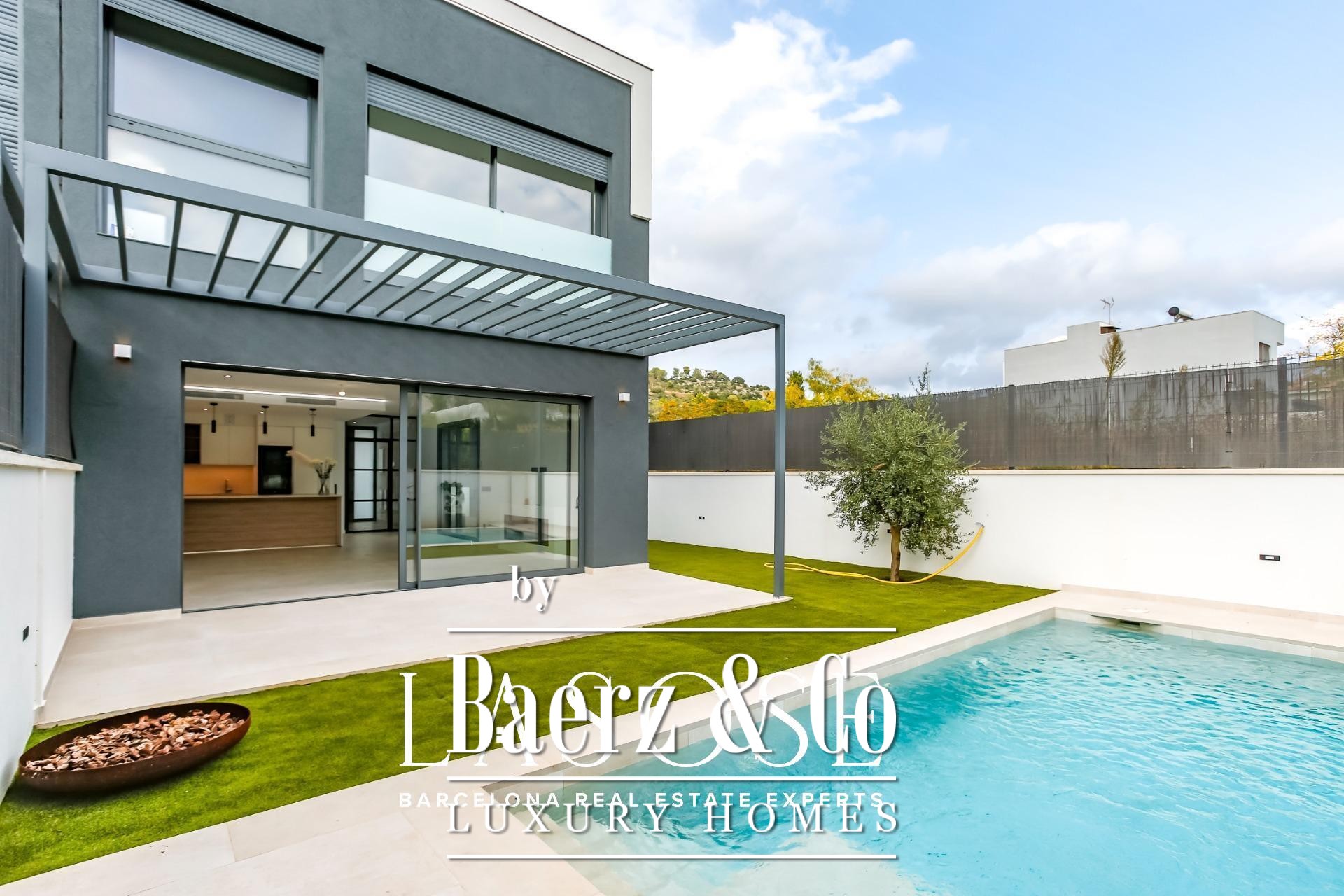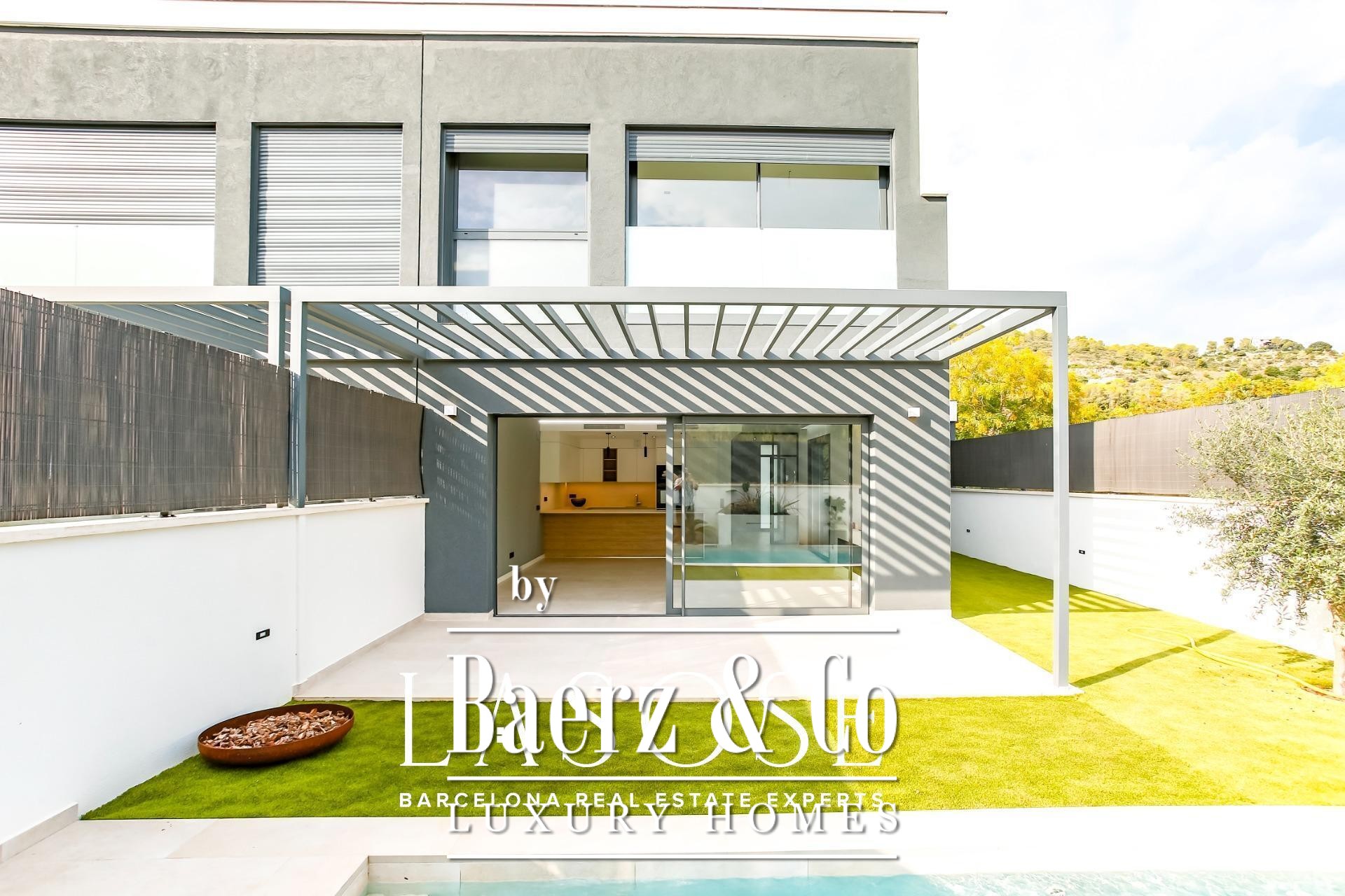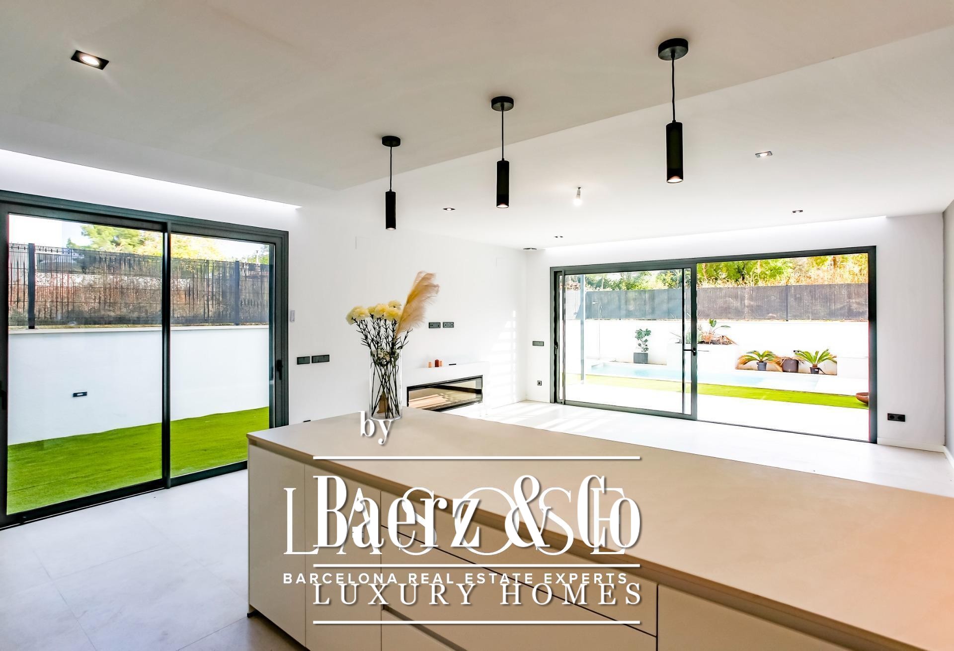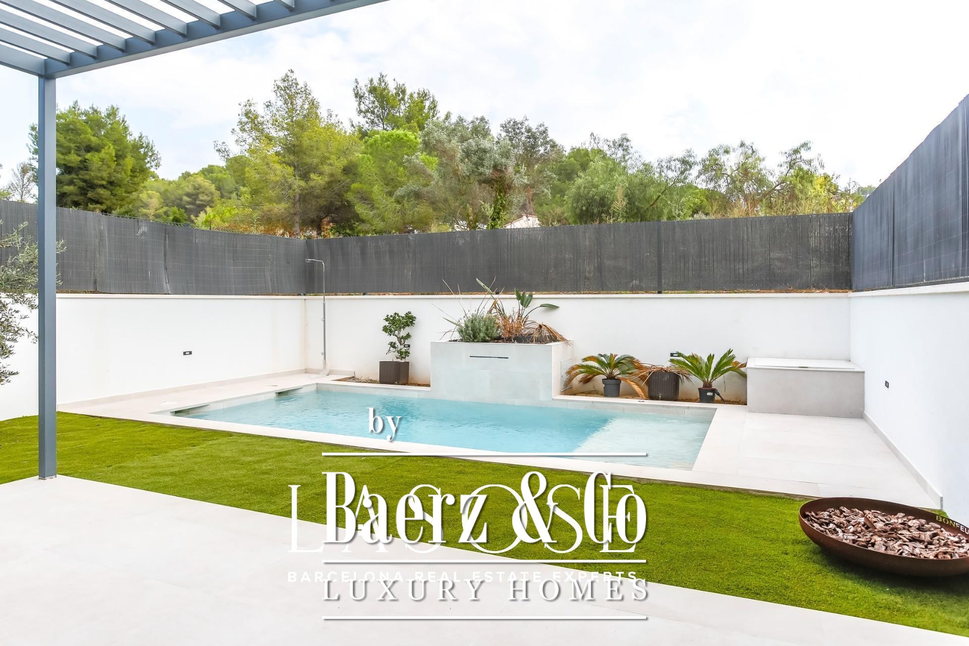 Im Außenbereich laden ein privater Swimmingpool, eine Terrasse und ein angelegter Garten zu ruhigen Morgenstunden oder geselligen Zusammenkünften ein. Die integrierte Garage, großzügige Stauräume und energieeffiziente Ausstattungen – darunter Solarpaneele und Aerothermie-Systeme – sorgen für zeitgemäßen Komfort ohne Kompromisse. Die moderne Villa in Sant Pere de Ribes liegt in einem begehrten Wohnviertel, das für die Nähe zu renommierten internationalen Schulen wie der British School of Barcelona, Olive Tree School, Lycée Bel Air und Richmond International bekannt ist. Wichtige Dienstleistungen und Verkehrsanbindungen befinden sich in direkter Umgebung und ermöglichen einen reibungslosen Alltag sowie unkomplizierte Reisen innerhalb Europas.