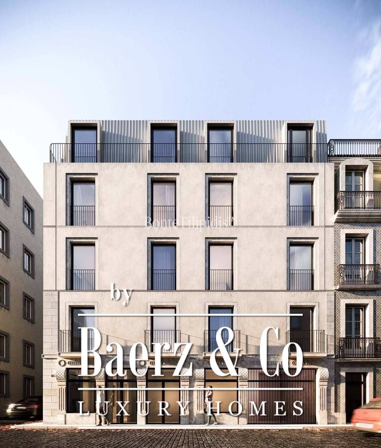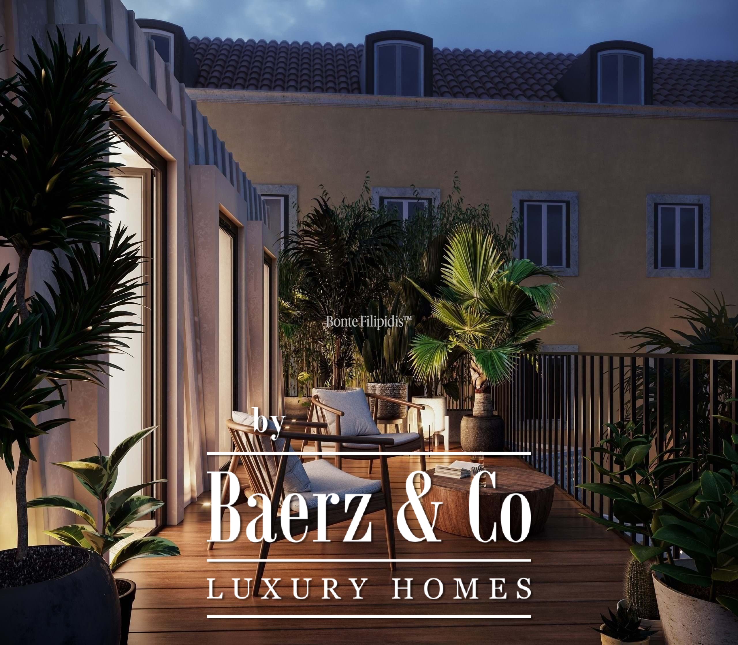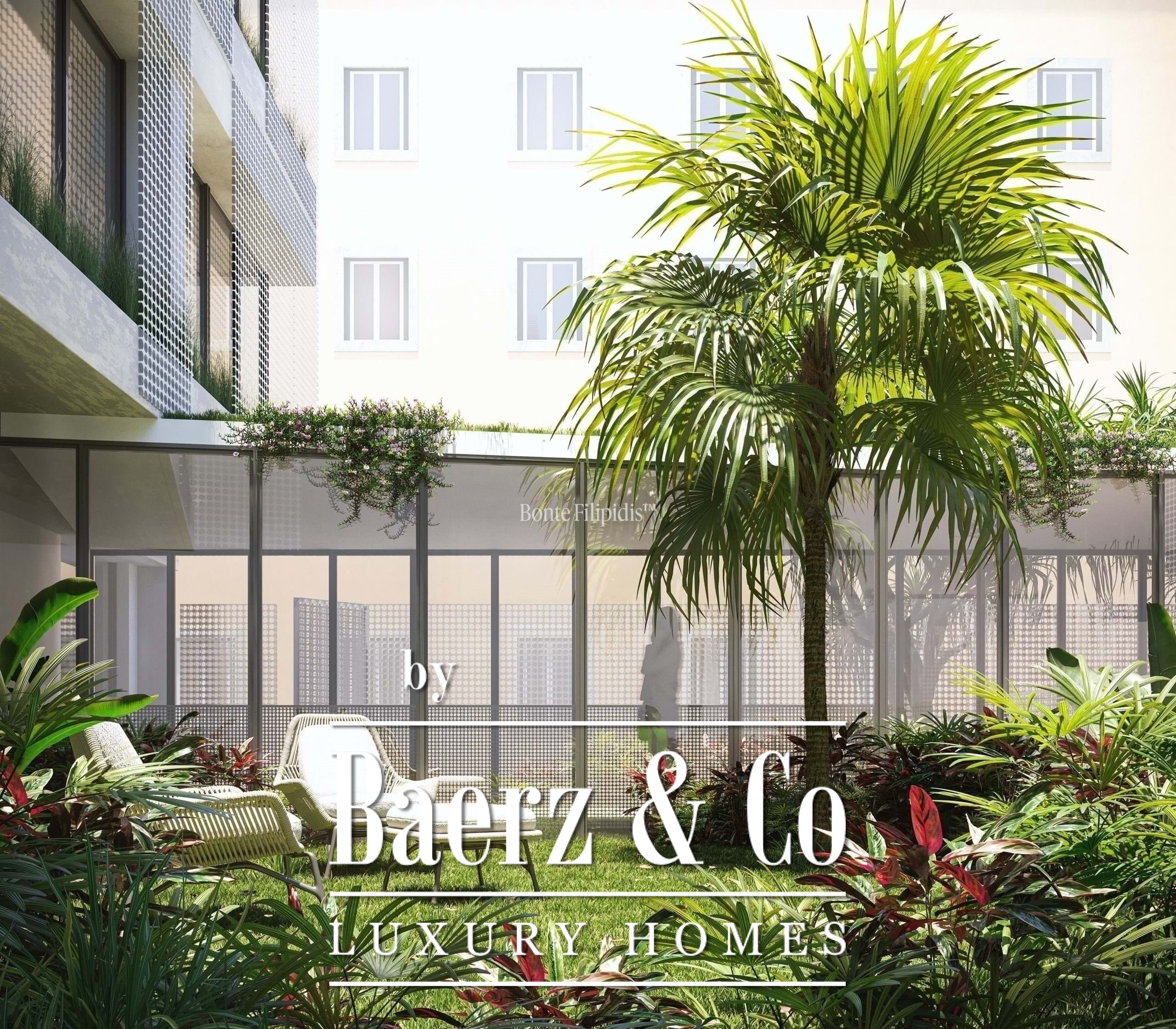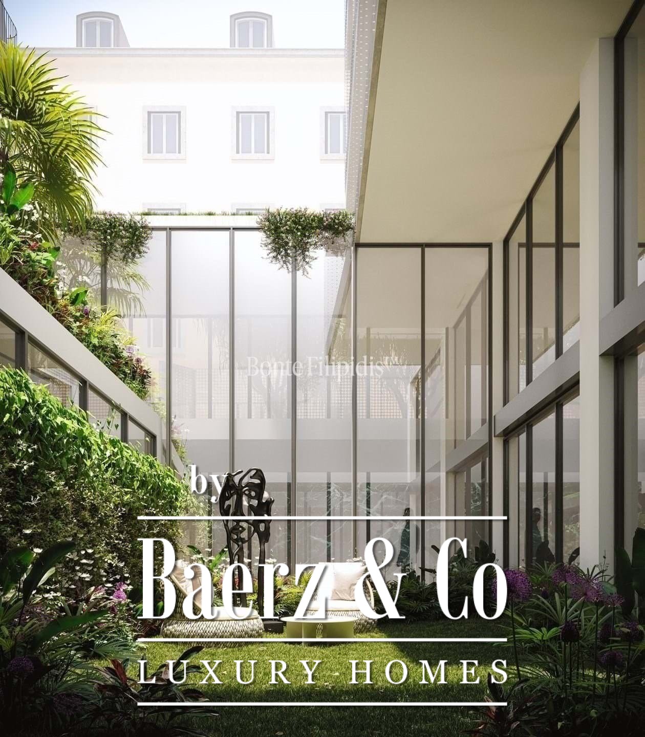 Innerhalb dieses Apartments gestalten grüne Patios und private Gärten eine anspruchsvolle Wohnatmosphäre – ein Luxusapartment zum Verkauf in Santo António Lisbon, das mit dezentem Designanspruch überzeugt.