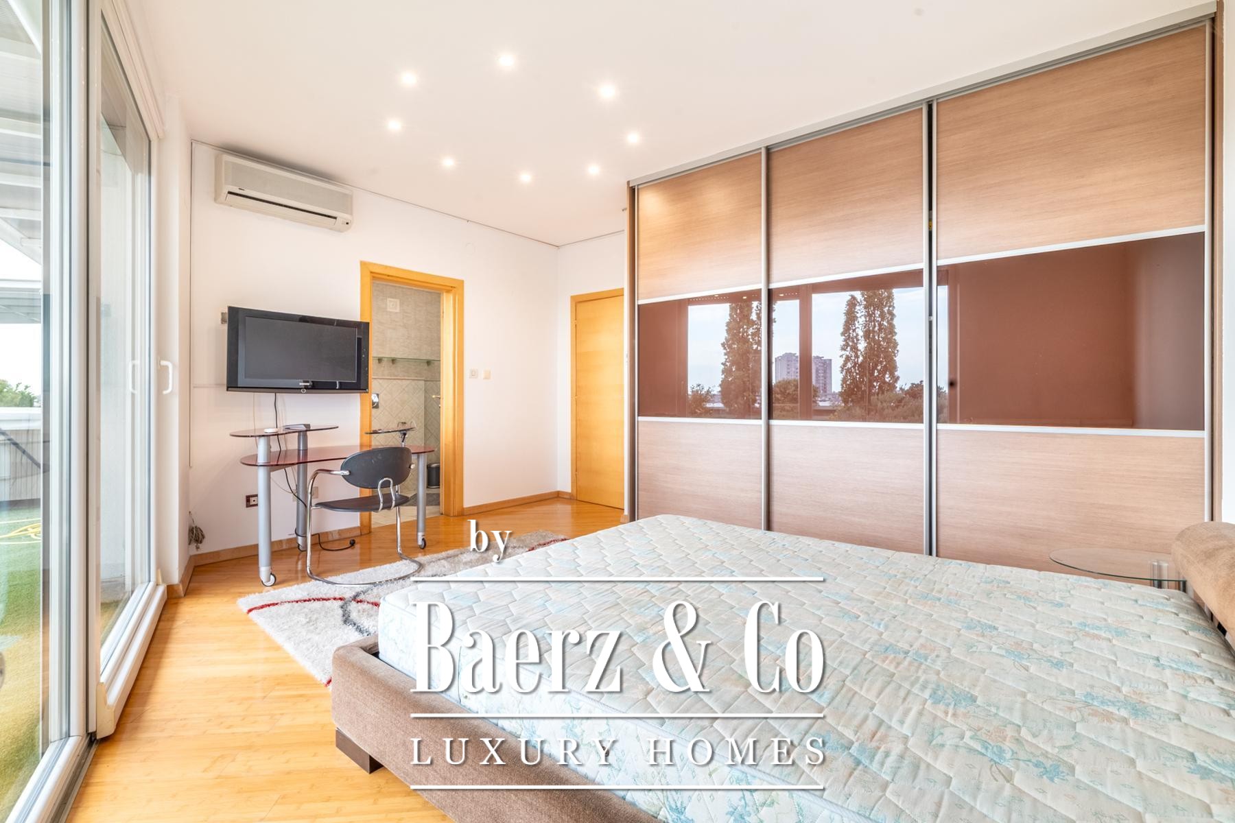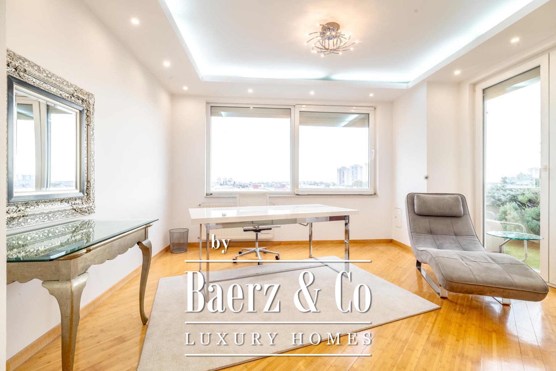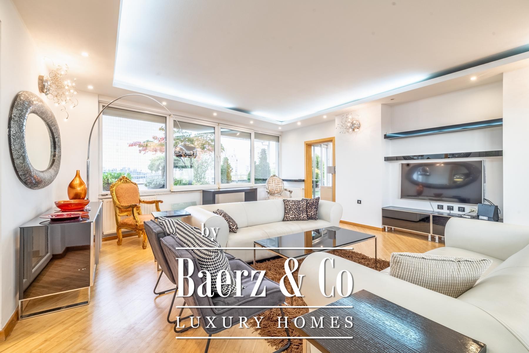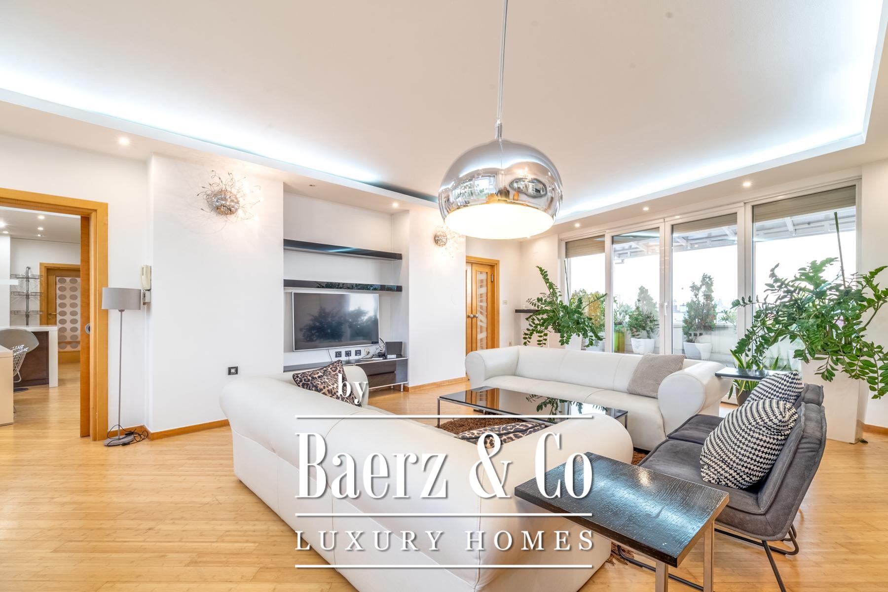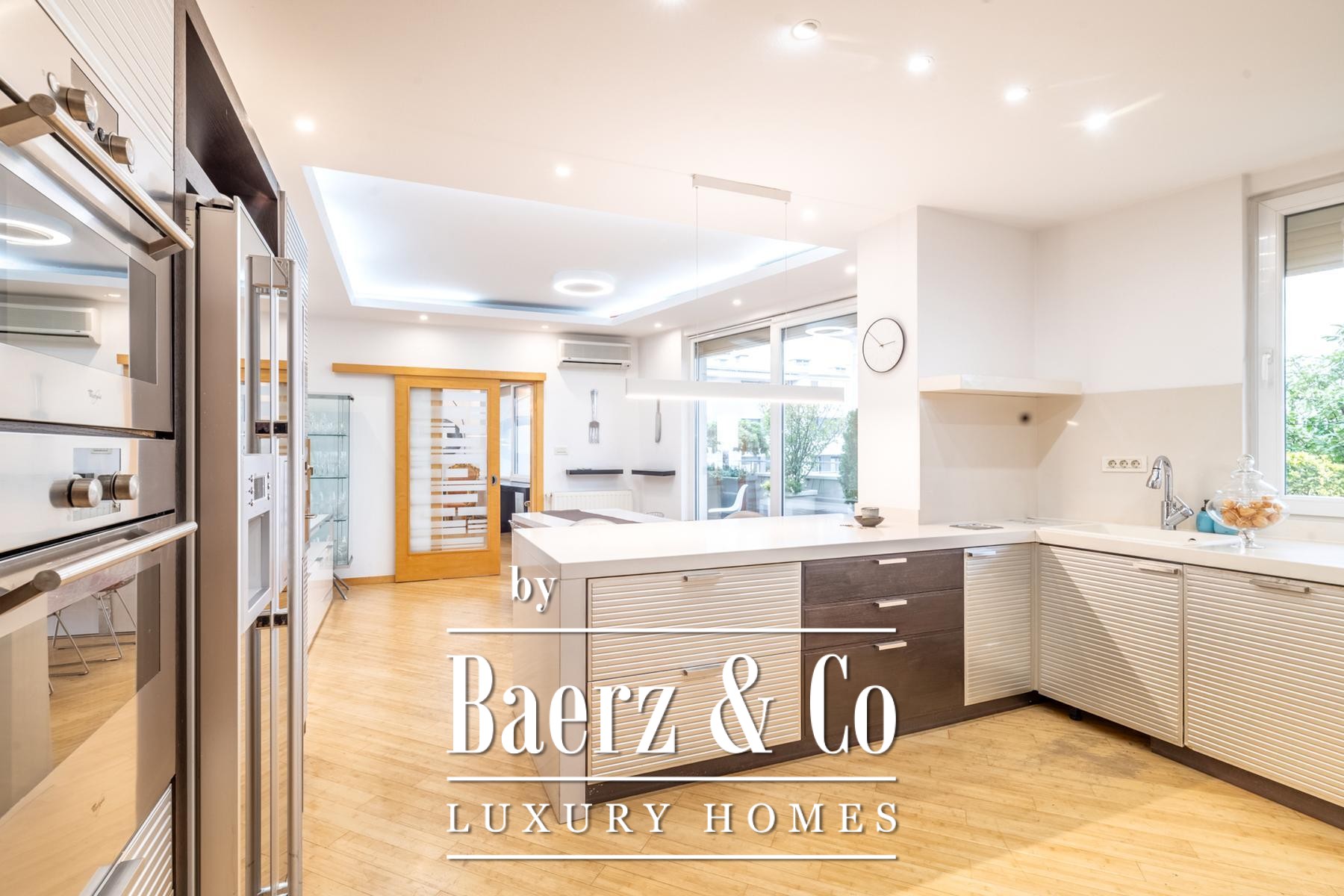 Eine legalisierte, geschlossene Terrasse wurde als ruhige 44 m² große Lounge neu interpretiert und bietet zusätzlichen Raum zum Nachdenken oder Arbeiten. Voll klimatisierte Innenbereiche, Wasch- und Abstellräume sowie ein Gäste-WC unterstreichen Funktionalität und stilvolle Ausführung.