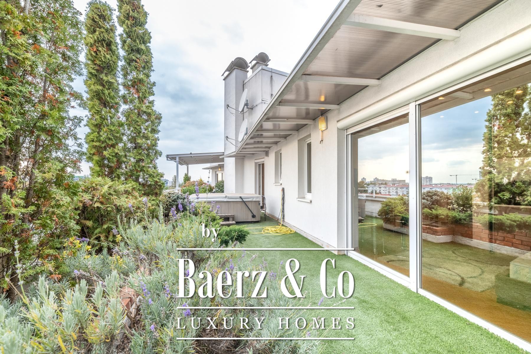 Jedes Detail wurde auf Privatsphäre und Komfort ausgerichtet: Drei Schlafzimmer, jeweils mit eigenem Bad, eine Master-Suite mit begehbarem Kleiderschrank sowie Fußbodenheizung in den Bädern. Der Wohnbereich fließt harmonisch—offener Lounge- und Essbereich, eine voll ausgestattete moderne Küche, die zu 130 m² üppig bepflanzten Terrassen führen. Diese sind von Grün umgeben und bieten mit Grillbereich sowie Jacuzzi den perfekten Ort für Entspannung und private Zusammenkünfte.