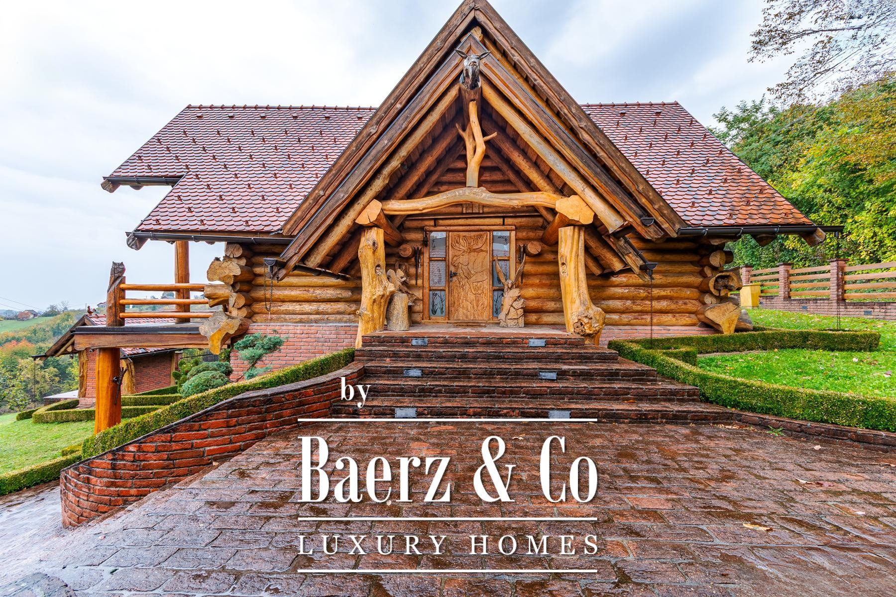 Das Log House Varaždinske Toplice ist eine zurückhaltende Hommage an natürliche Abgeschiedenheit und durchdachtes Design. Dieses Blockhaus in Varaždinske Toplice bietet 190 m² Wohnfläche auf einem 3.378 m² großen Privatgrundstück, das von Wald und Weinbergen eingefasst ist. Die Annäherung führt über sanft angelegte Wege und Obstgärten und schafft eine Atmosphäre von Privatsphäre und diskreter Eleganz.