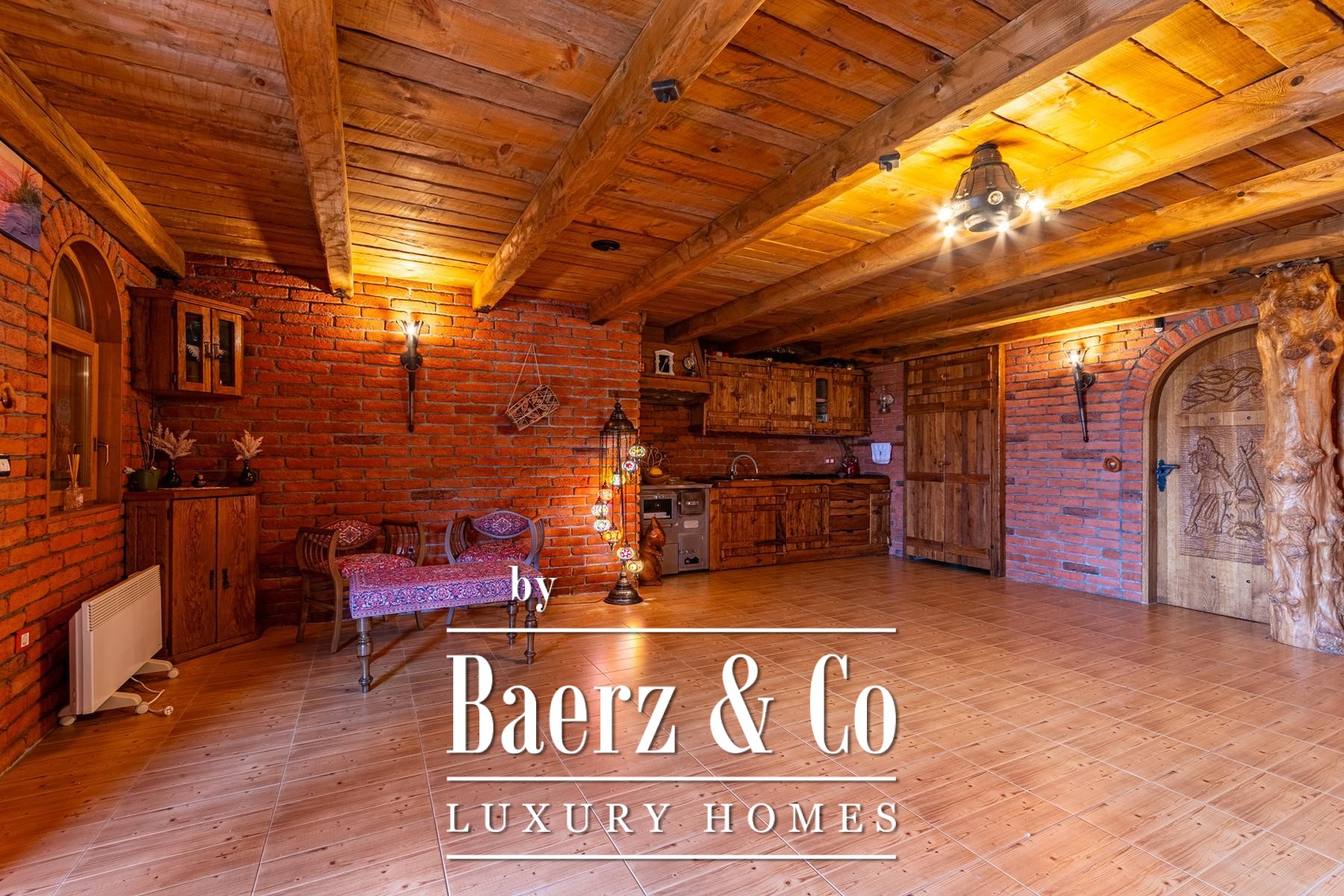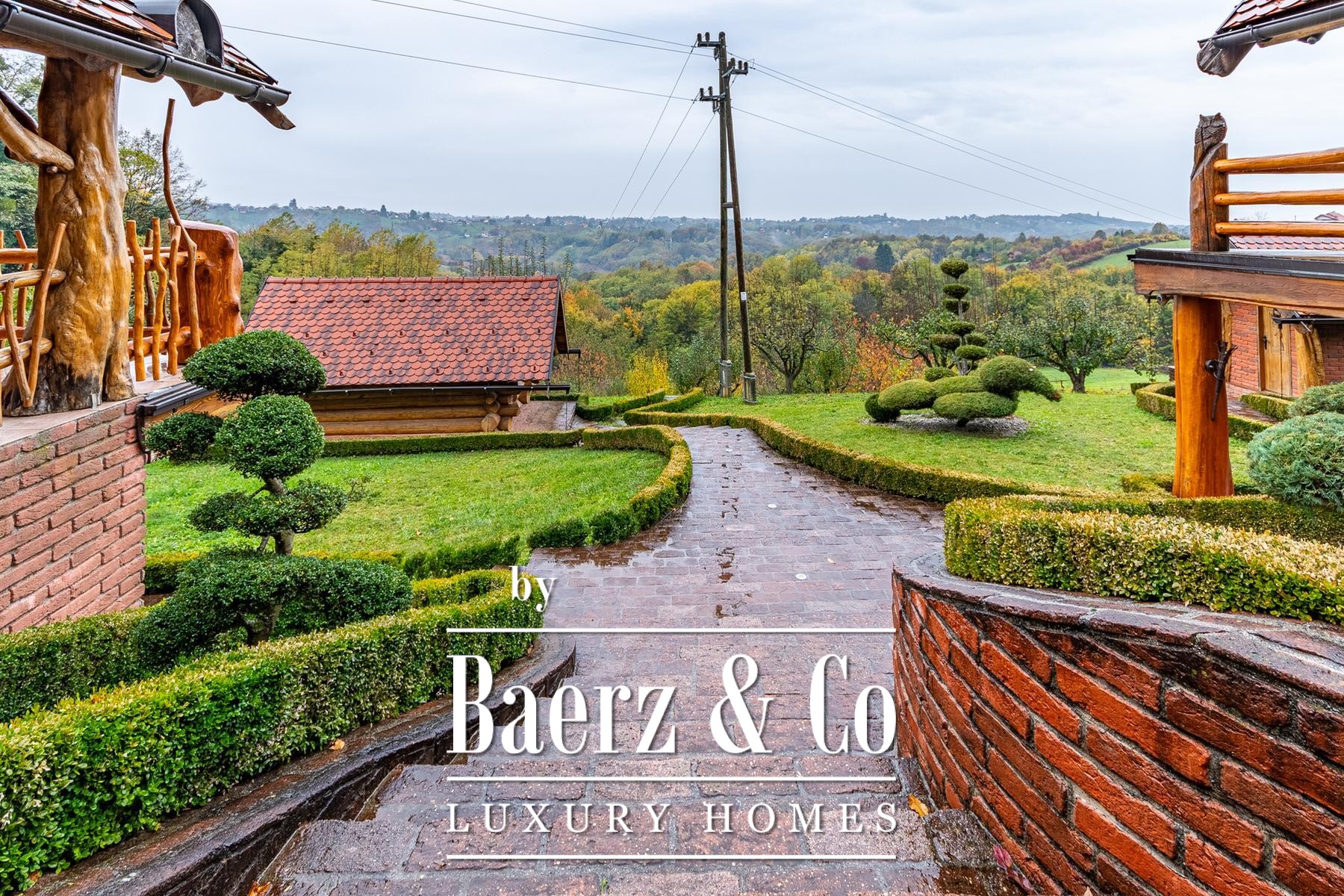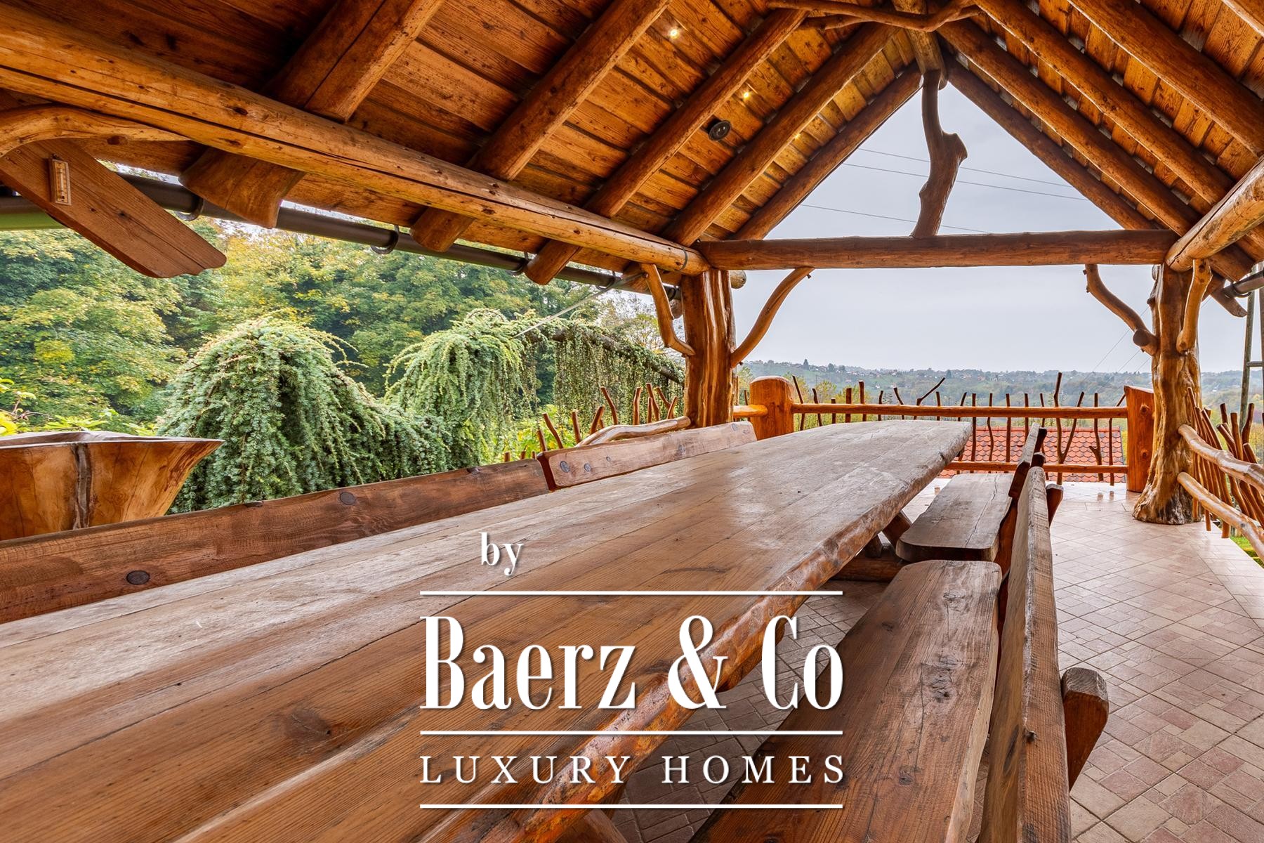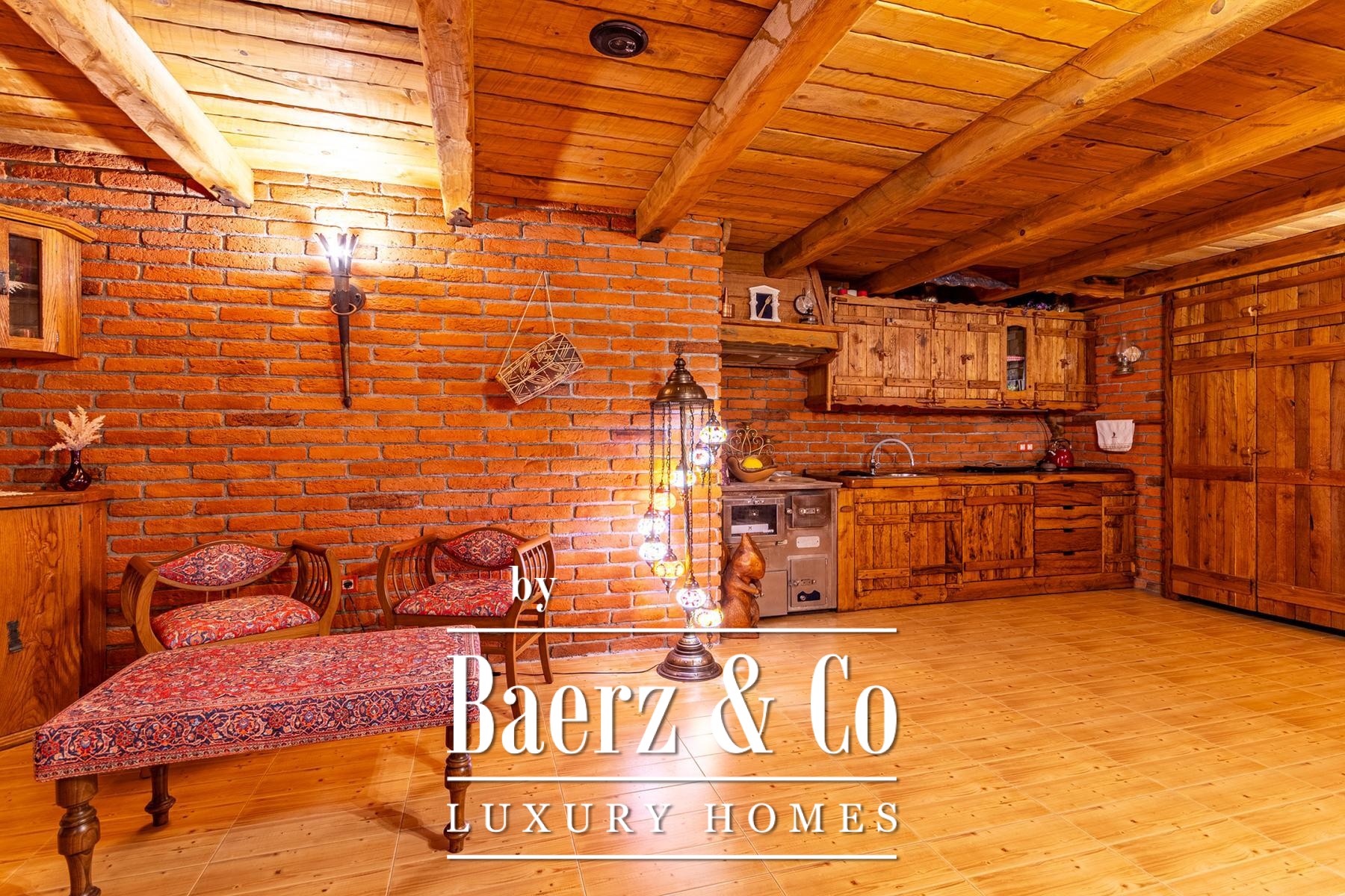 Drei Nebengebäude—ein Pavillon, eine Werkstatt und ein Außen-WC—unterstreichen den authentisch ländlichen Charakter. Das sorgfältig gestaltete Grundstück mit Apfel-, Pflaumen-, Feigen-, Aronia- und Himbeerbäumen bietet Orte der Einkehr und des Rückzugs. Panoramablicke und tiefe Privatsphäre schaffen eine unverwechselbare Atmosphäre. Dies ist nicht einfach ein Blockhaus zum Verkauf in Varaždinske Toplice, sondern ein durchdachtes Refugium, das mit Ort und Material verwurzelt ist.
