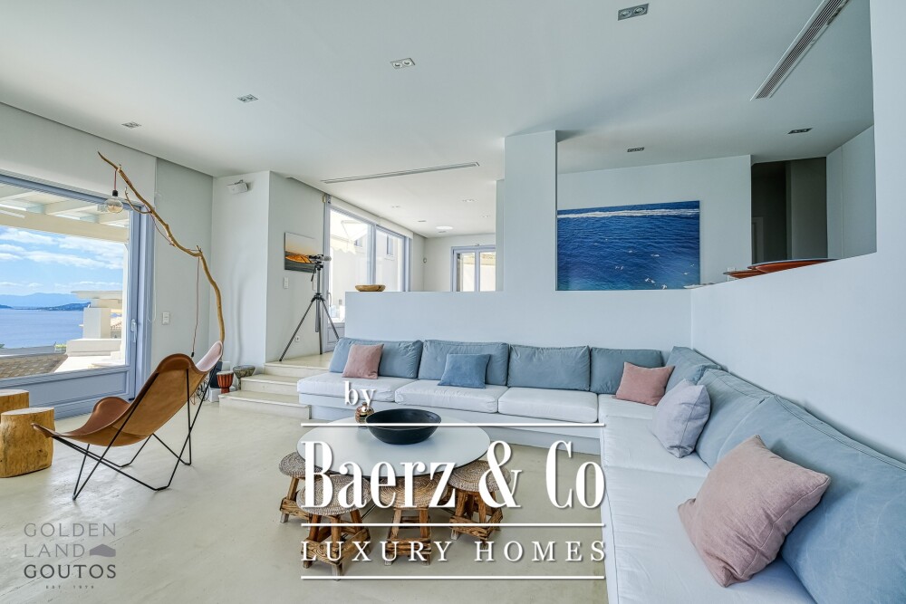 Villa for sale Aghios Emilianos commands an exceptional hilltop position, offering panoramic sea views that frame the island of Spetses. This 400 m² residence, set on a 514 m² plot, is designed for those seeking both refinement and comfort. It stands just a ten-minute drive from Porto Heli and its lively marina, creating a seamless connection between tranquil retreat and vibrant coastal life.