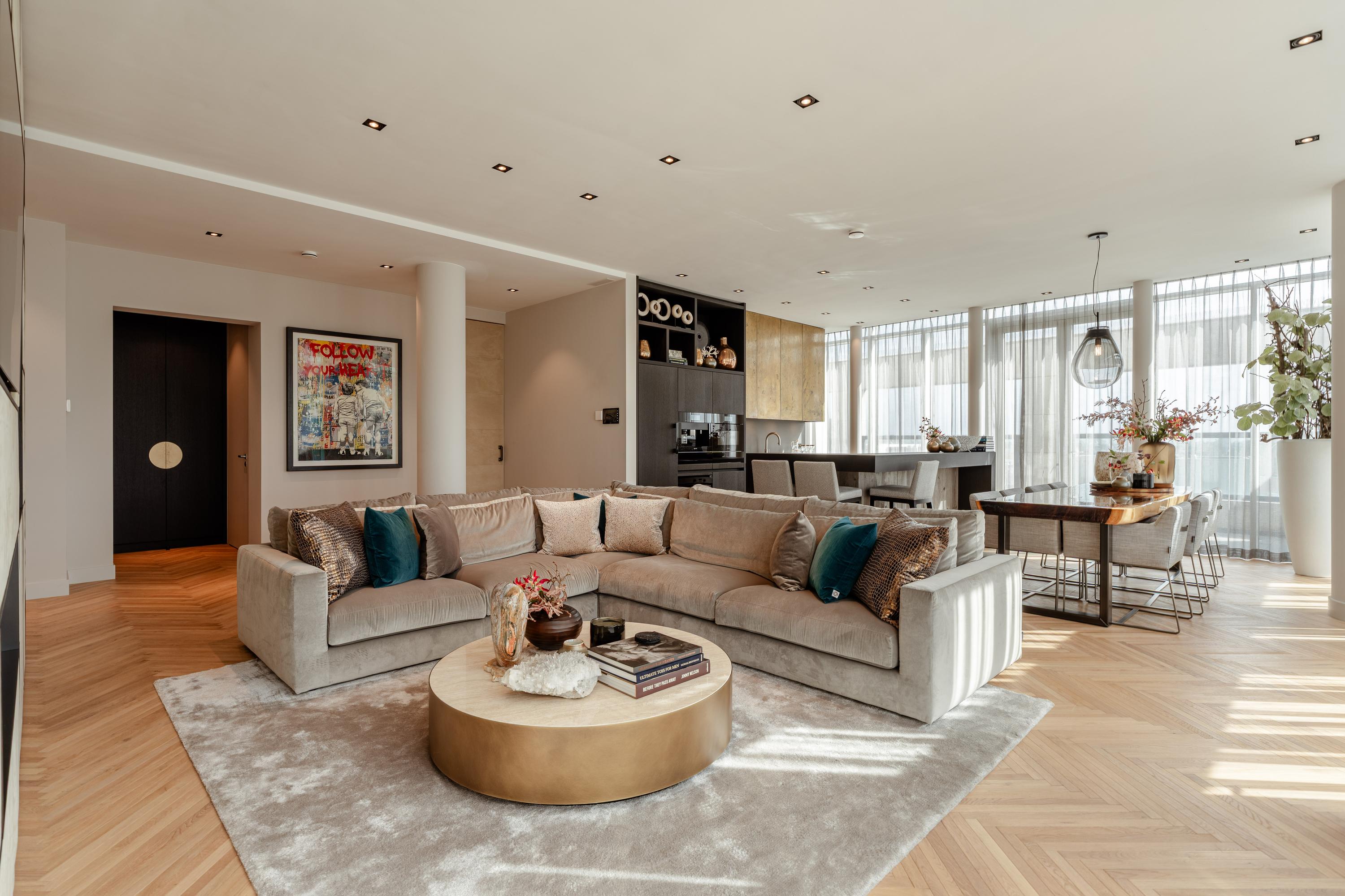 The large glass façades allow you to fully embrace the vibrant city life outside or close it off entirely to enjoy privacy and tranquility. The high-quality materials and finishes ensure a refined and comfortable living experience. The interior has been designed under the supervision of internationally renowned interior architect Pieter Laureys and finished to the highest standards. The apartment is offered including new, carefully selected bespoke furniture.