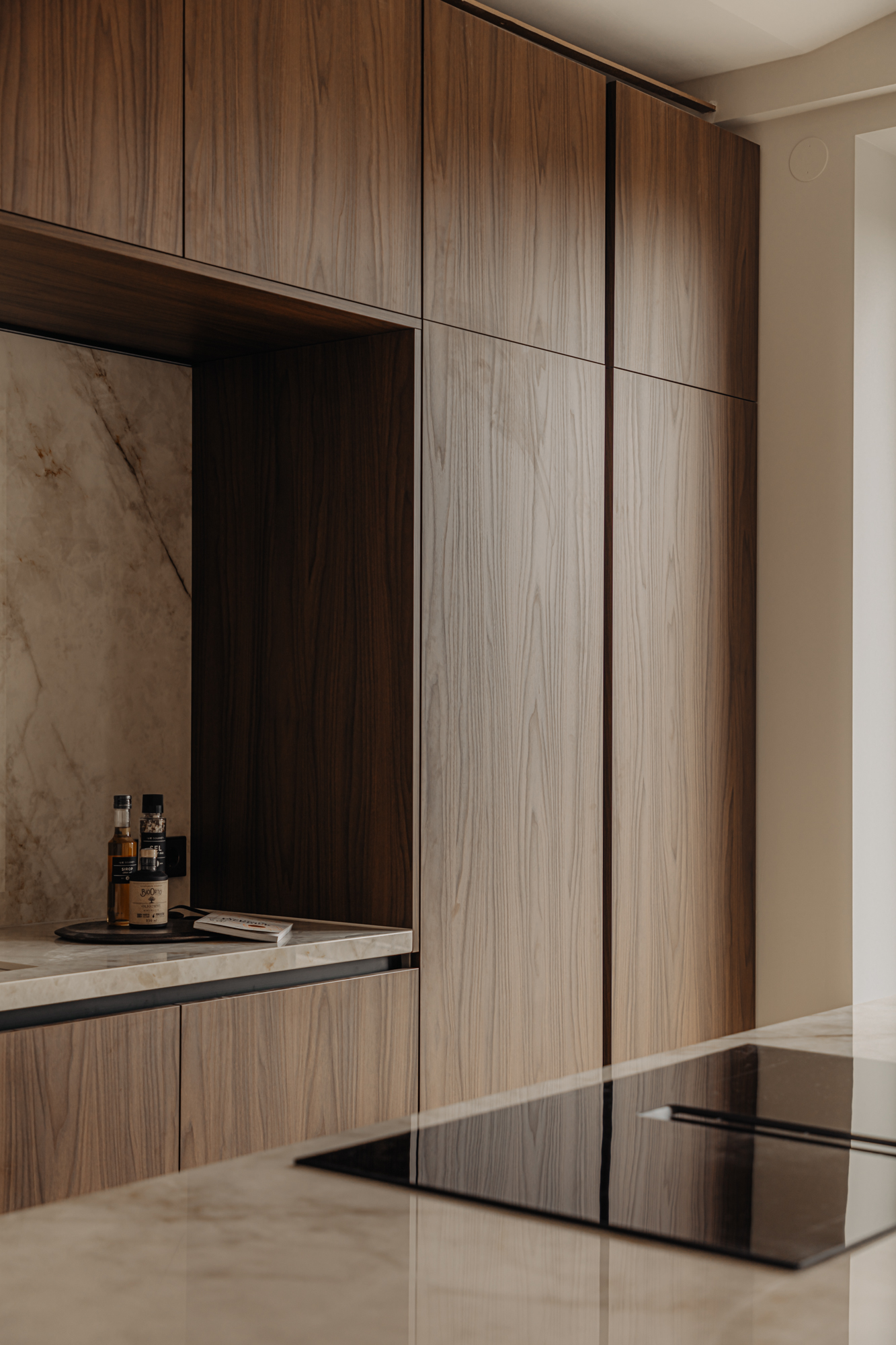 A luxury penthouse of approx. 148 m², with two (and the option for three) bedrooms, two bathrooms, a large south-facing roof terrace, an open-plan kitchen with a cooking island and internal storage space. The apartment features carefully selected, high-end materials that create a sense of warmth and comfort. Luxury herringbone floors, high ceilings, subtle tones in the kitchen and bathrooms and a well-thought-out lighting plan create a harmonious and inviting ambiance. The kitchen, with its clean lines and ample storage space, is a perfect combination of style and practical functionality. The building itself is a freehold property.