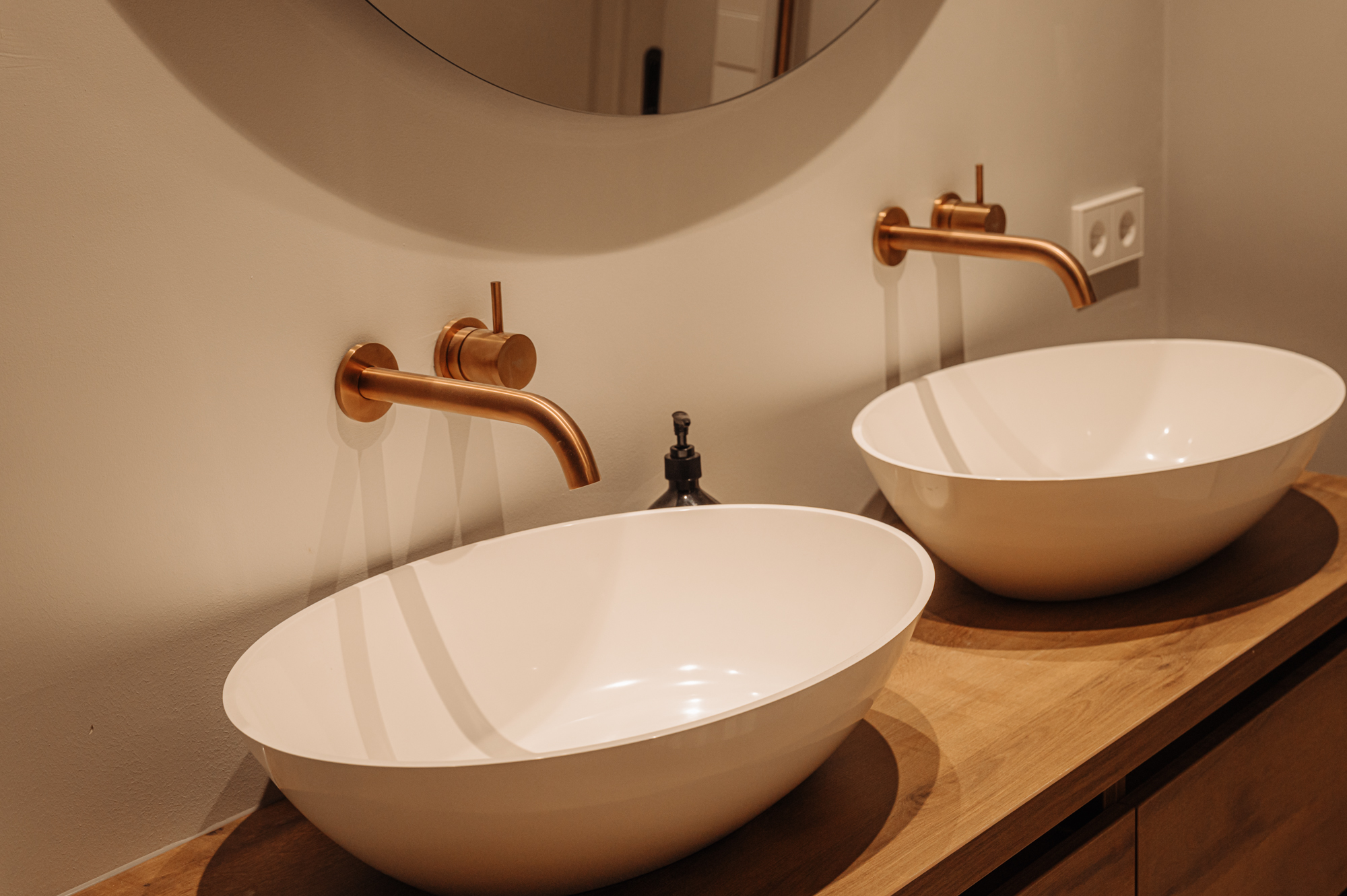 The two bedrooms at the back are flooded with natural light. They are so spacious that it would be easy to create a third bedroom. They have been beautifully finished with original wooden beams, which contribute to the apartment’s distinctive charm. The Master bedroom has its own en-suite bathroom with a double washbasin, a large bath and walk-in shower and a toilet. This bathroom is the epitome of comfort and luxury. The second bathroom is elegant too and has a double washbasin unit and a walk-in shower.