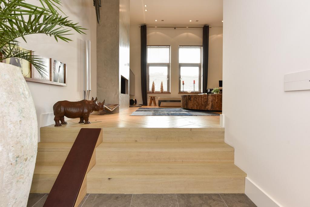The generous entrance with a lift offers access to the apartment. Spacious hallway with separate toilet and cloakroom. You enter into the epicentre of the apartment - the open kitchen - which provides access to the spacious garden of 41 m2 through French windows. The luxurious and well-equipped kitchen is fitted with all the conveniences you can imagine. From the professional dishwasher to the several fridges, which make staying in this space an absolute joy. Here, you will also find a spacious cupboard under the stairs.