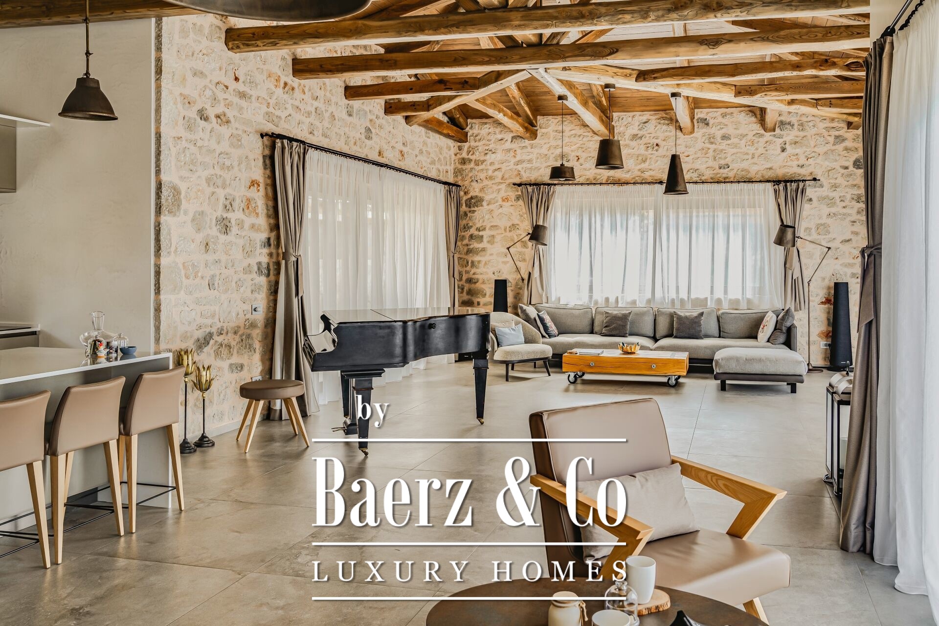 The property is a solid stone construction, built with exceptional attention to detail and timeless architectural elegance.