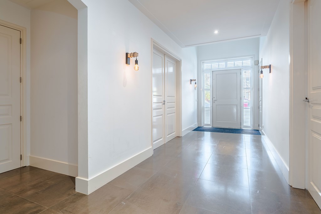 Middels de onderhoudsvriendelijke voortuin met oprit voor meerdere voertuigen, bereikt u de entree van de woning. Bij binnenkomst merkt u direct dat dit een bijzondere woning is. De riante hal met vide is voorzien van een meterkast, garderobe, toiletruimte en biedt toegang tot een hobbykamer, de leefkeuken alsmede de living.
