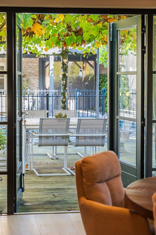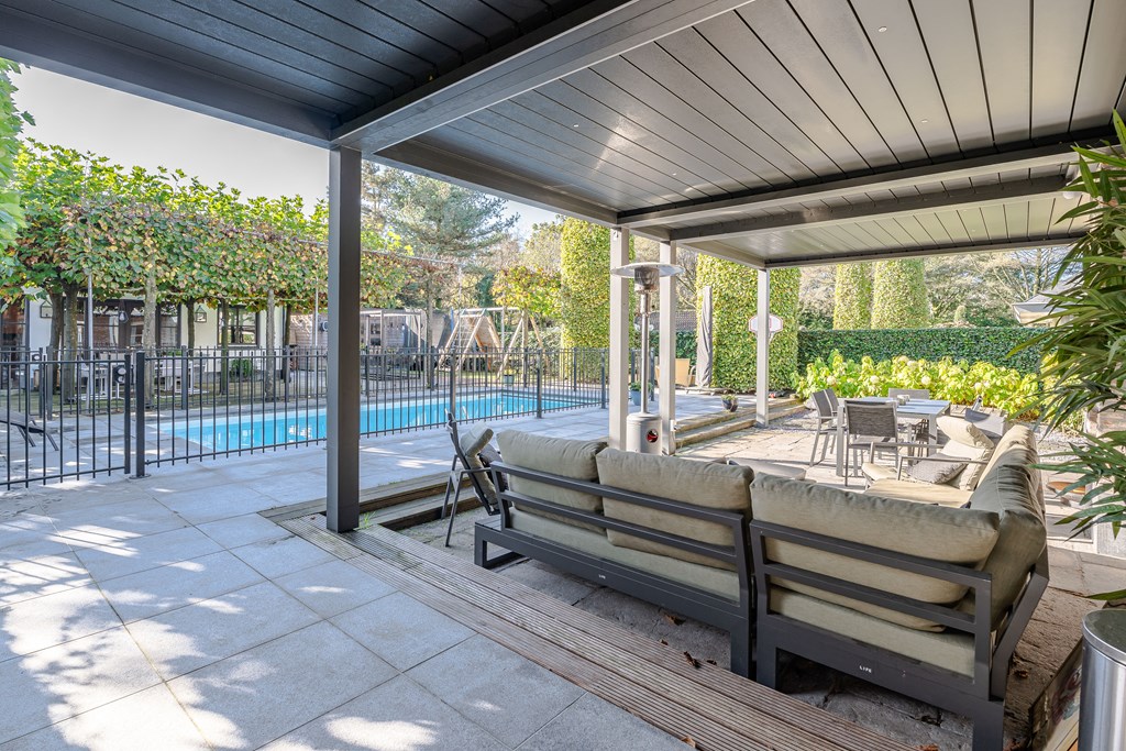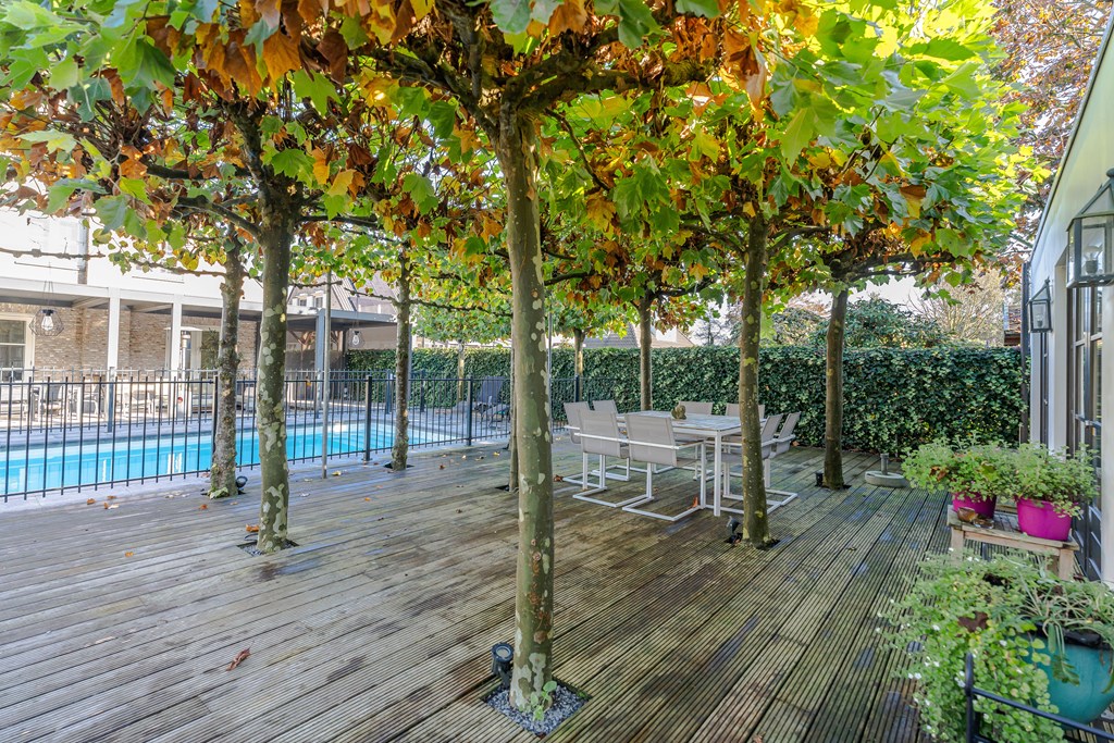 Door de openslaande deuren staat het poolhouse direct in verbinding met een terras en de rest van de tuin. Hier kunt u ultiem ontspannen en genieten.