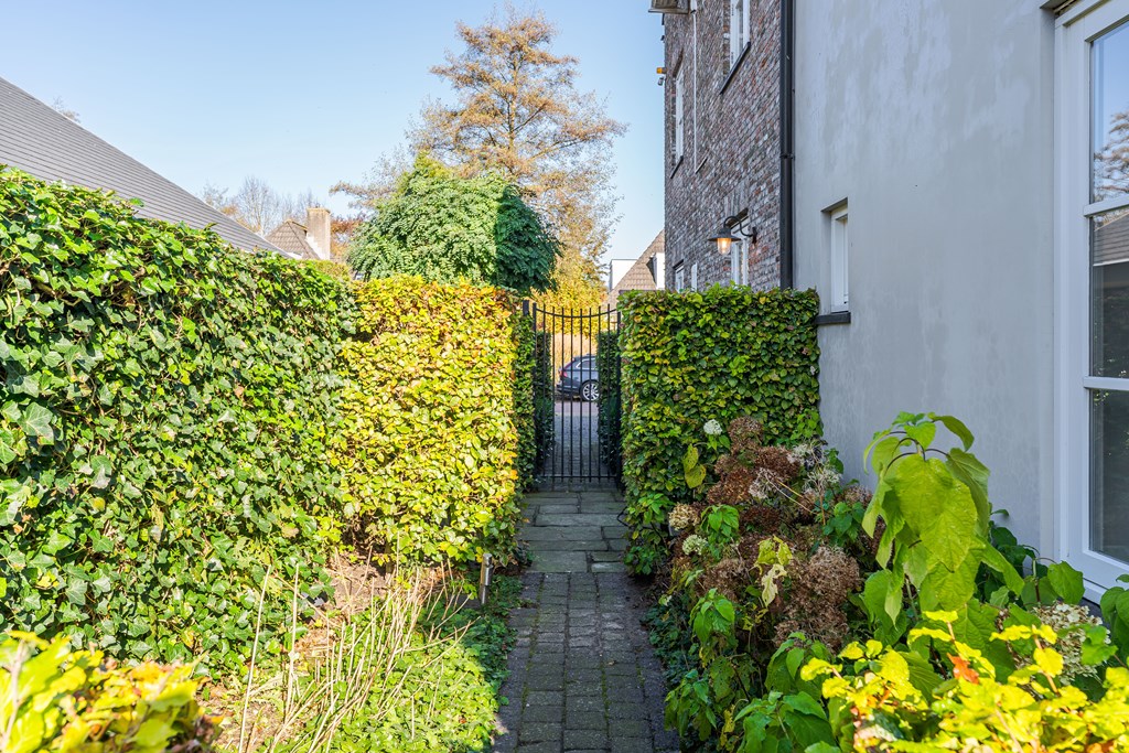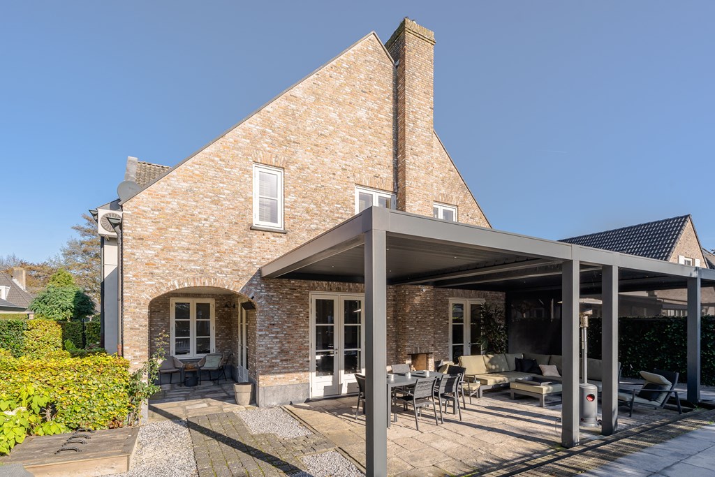 Dit is dé ideale tuin voor iedereen die van zowel het buitenleven als luxe en comfort houdt. Tegen de achtergevels is een mooie veranda geplaatst met open haard, verlichting en elektra. Deze open veranda is als het ware een schakel tussen de woonkamer en de tuin.