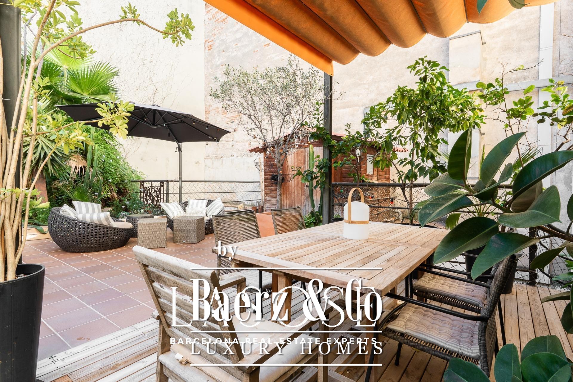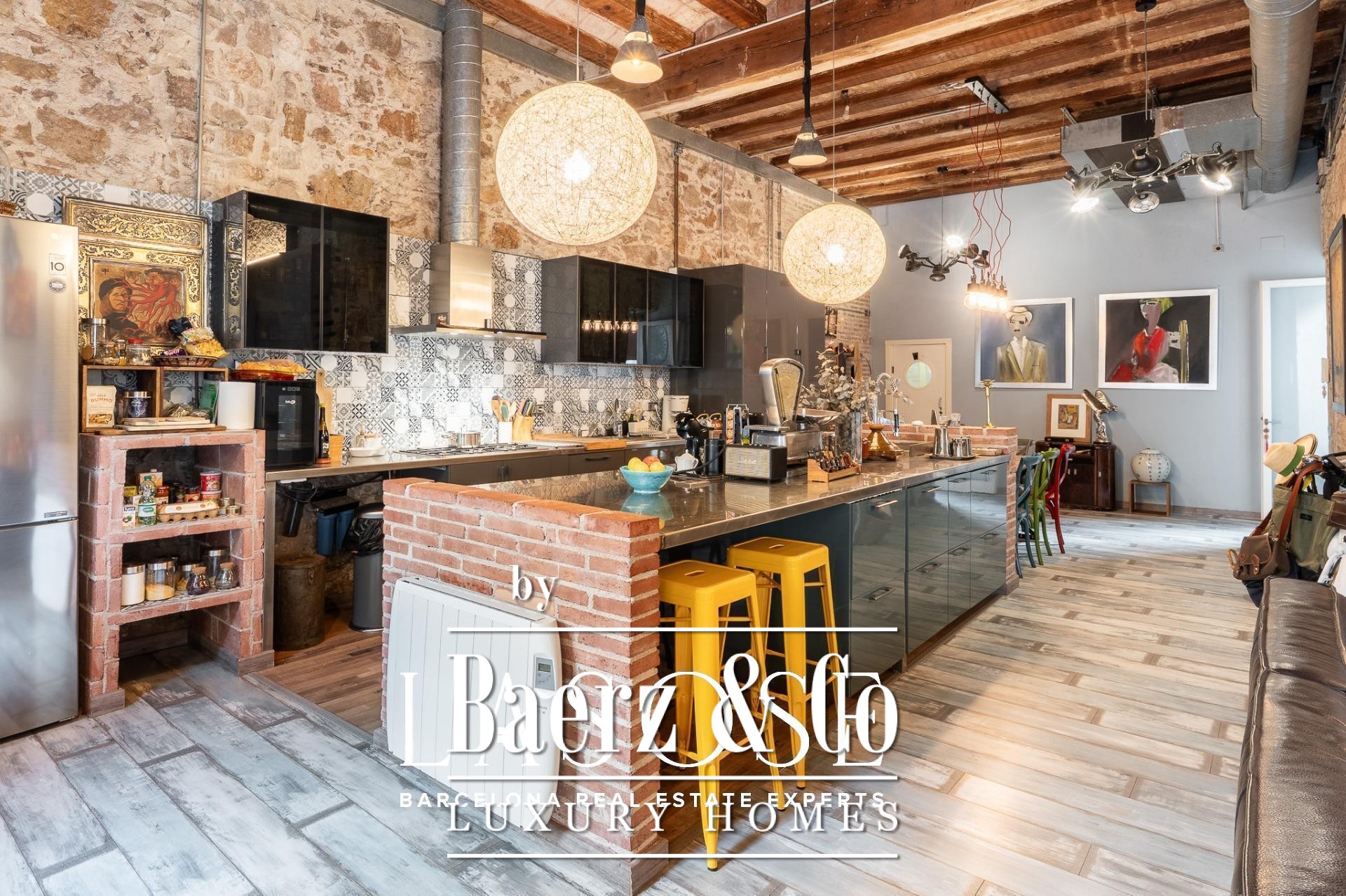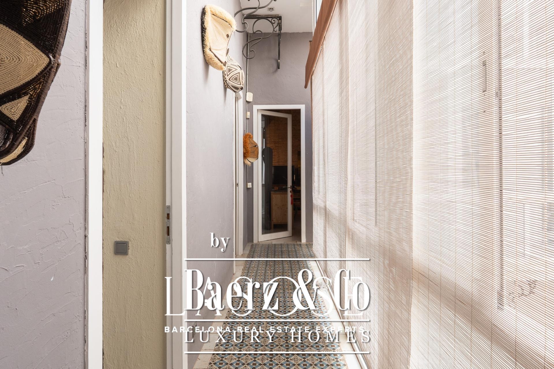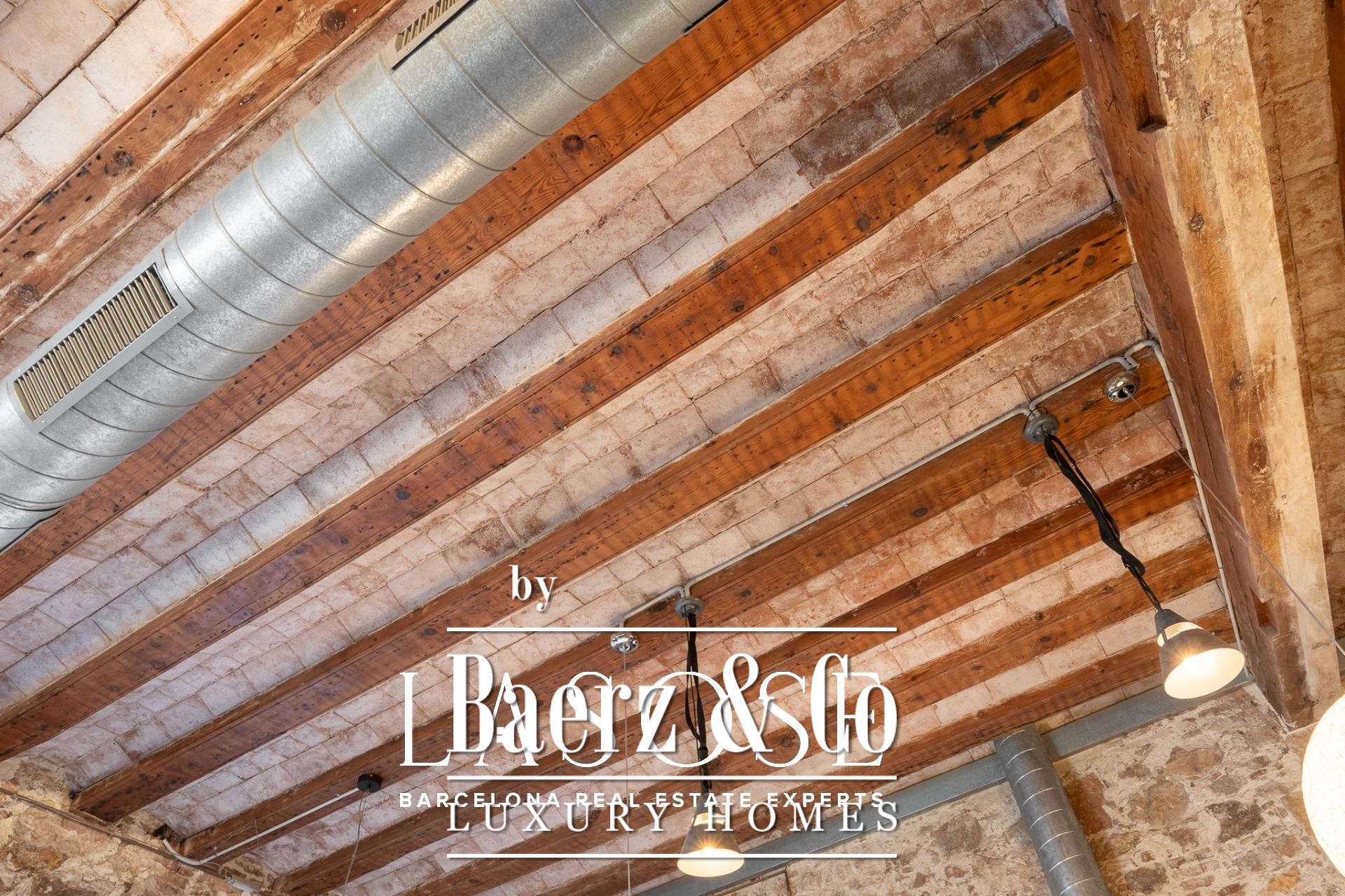 . . This catalan style apartment consists of 218 m2 plus 74 m2 of private terrace with pool. Upon entering, we find a corridor with huge windows that overlooks a large interior patio offering the space plenty of natural light. Ithis area connects the three double bedrooms; each one with its private bathroom, and another room that acts as a large multifunctional space that can perfectly be used as an office space.. . Following the corridor we find the day area, a huge and spacious space with very high ceilings up to 5 meters, composed of a large open kitchen, original brick walls and tiles, a toilet and a beautiful living room with a (wood) fireplace from which you can access the wonderful terrace with a pool shared with the neighbour next door. The terrace is private and is recently restored with new roofing to guarantee privacy. The whole house was completely renovated keeping original elements and decorated with great