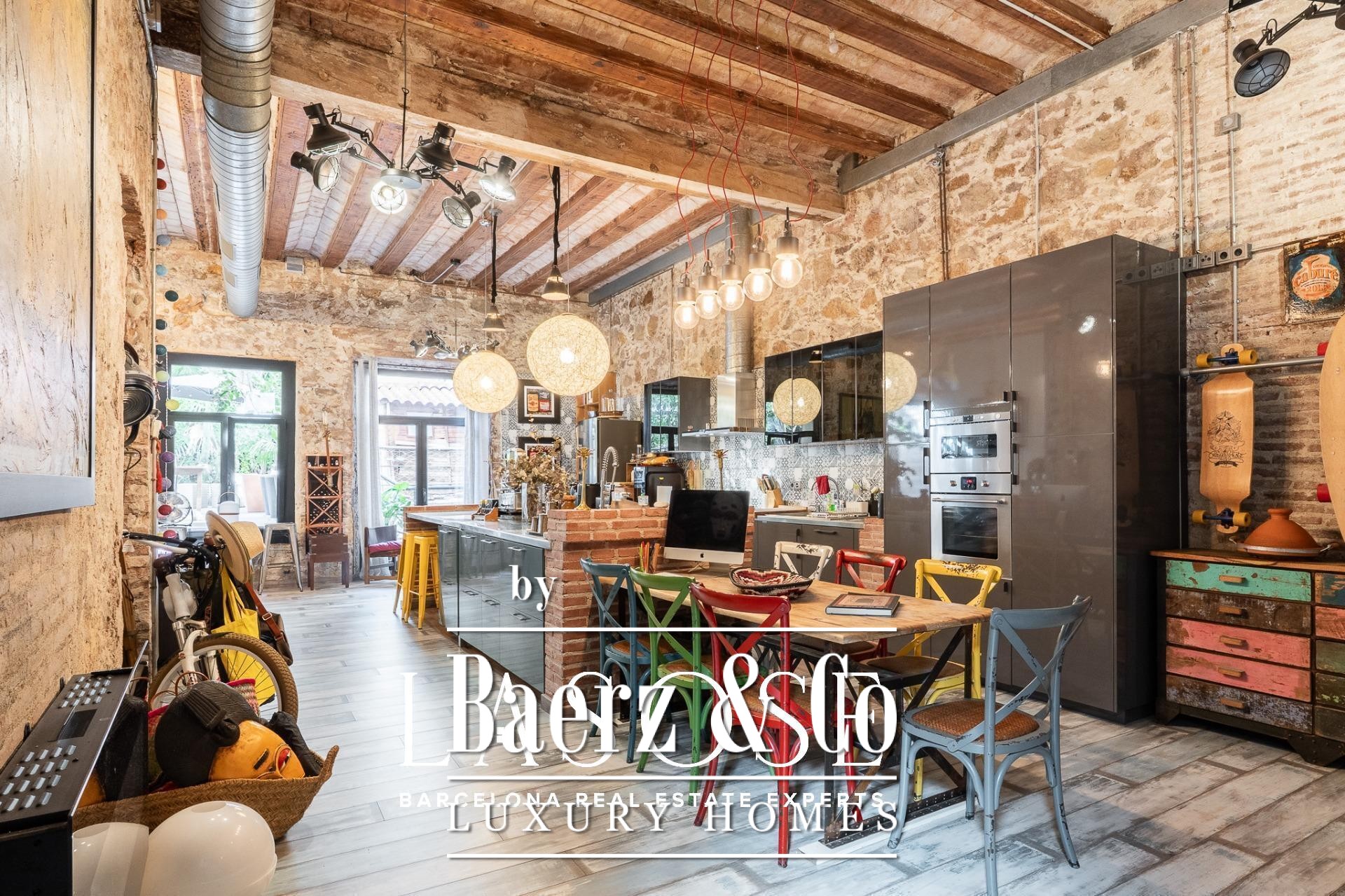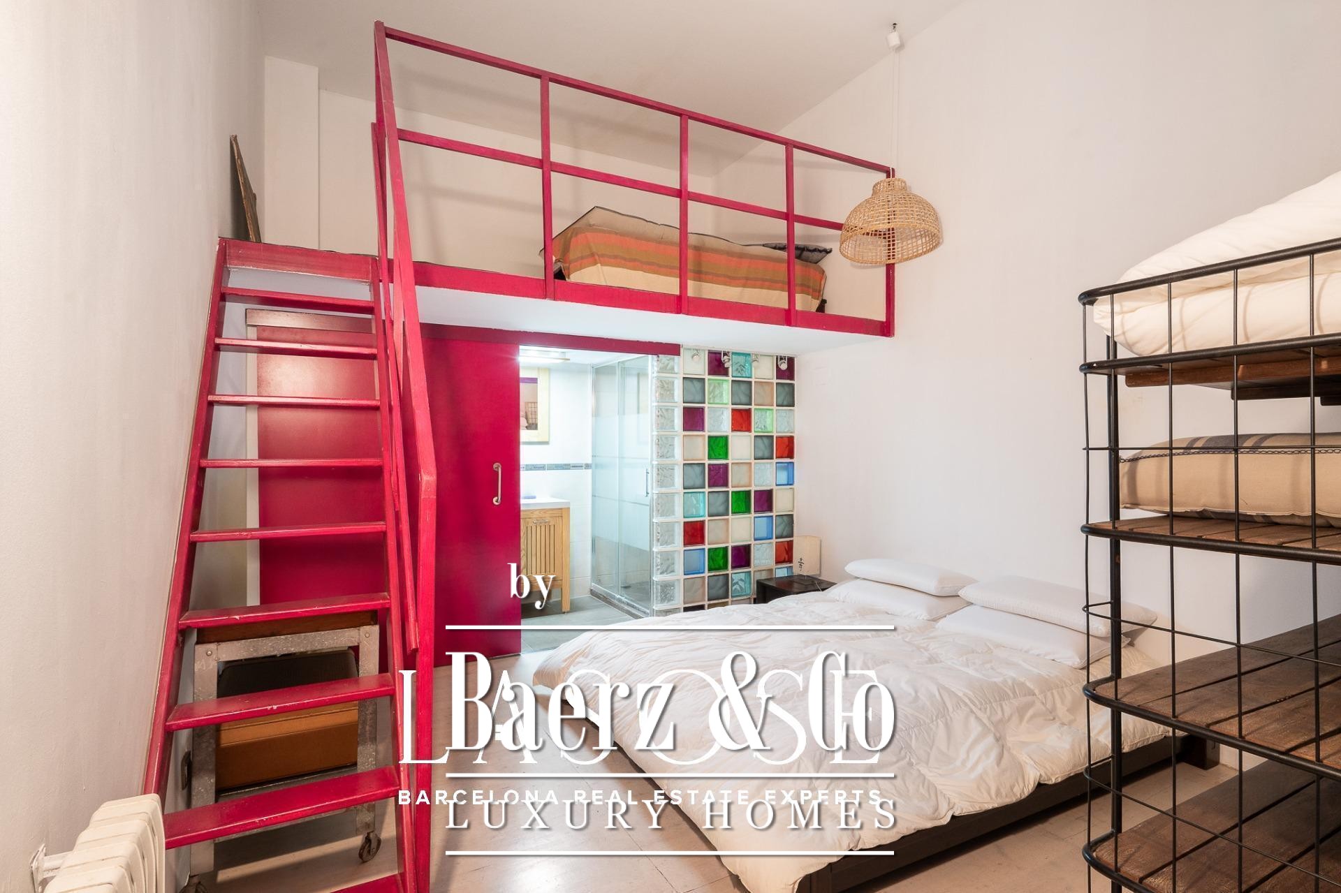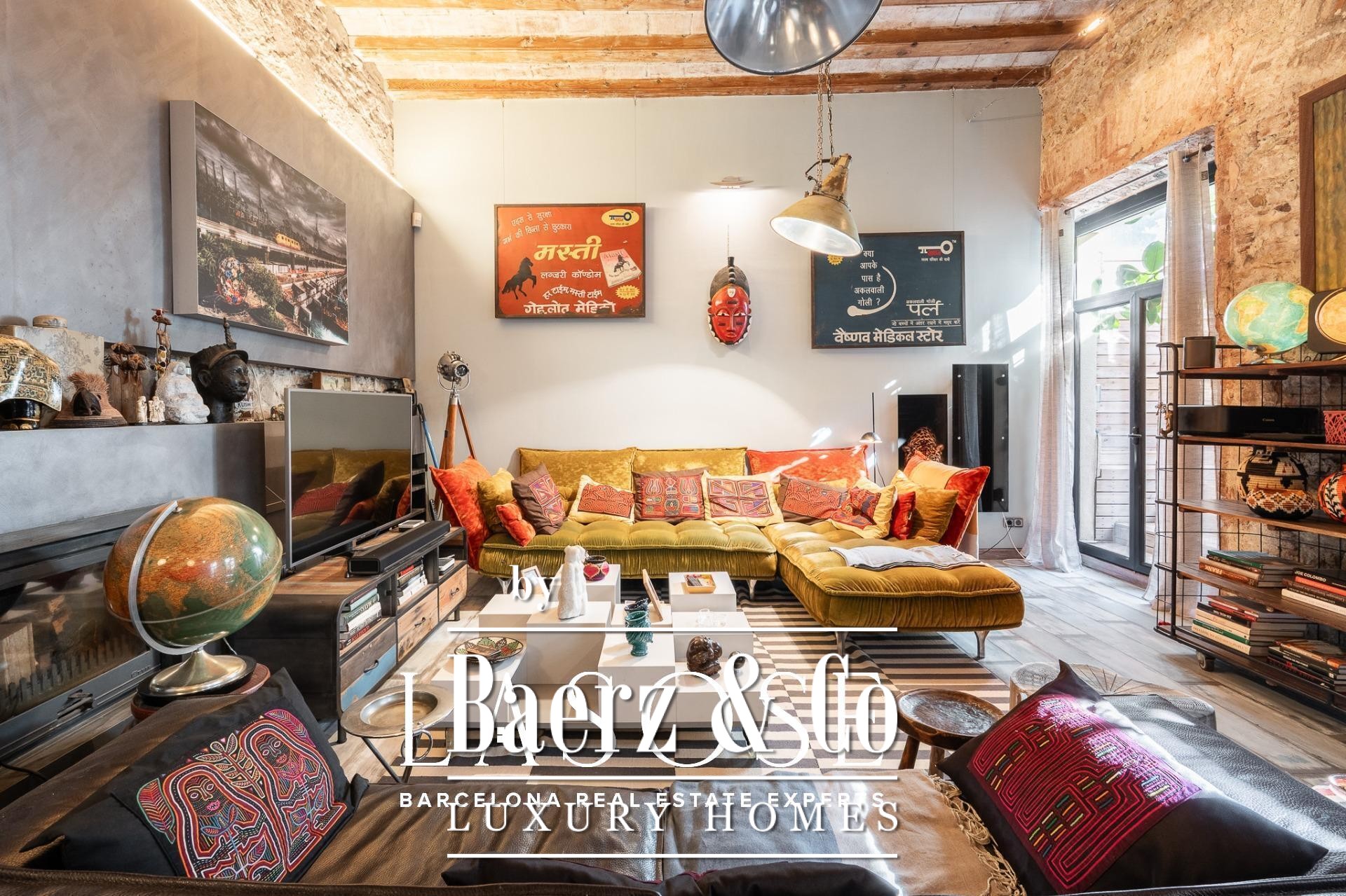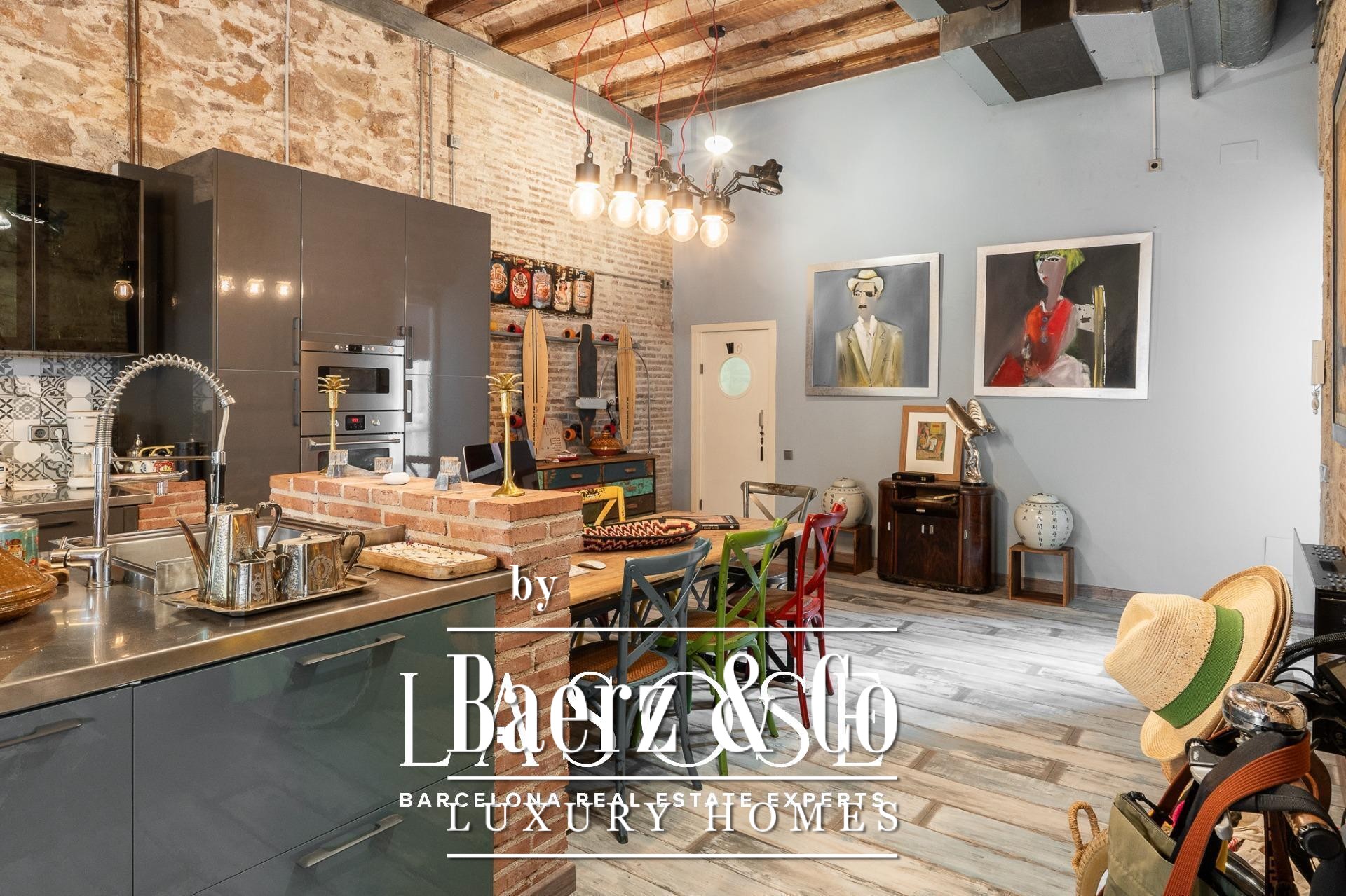. . This catalan style apartment consists of 218 m2 plus 74 m2 of private terrace with pool. Upon entering, we find a corridor with huge windows that overlooks a large interior patio offering the space plenty of natural light. Ithis area connects the three double bedrooms; each one with its private bathroom, and another room that acts as a large multifunctional space that can perfectly be used as an office space.. . Following the corridor we find the day area, a huge and spacious space with very high ceilings up to 5 meters, composed of a large open kitchen, original brick walls and tiles, a toilet and a beautiful living room with a (wood) fireplace from which you can access the wonderful terrace with a pool shared with the neighbour next door. The terrace is private and is recently restored with new roofing to guarantee privacy. The whole house was completely renovated keeping original elements and decorated with great