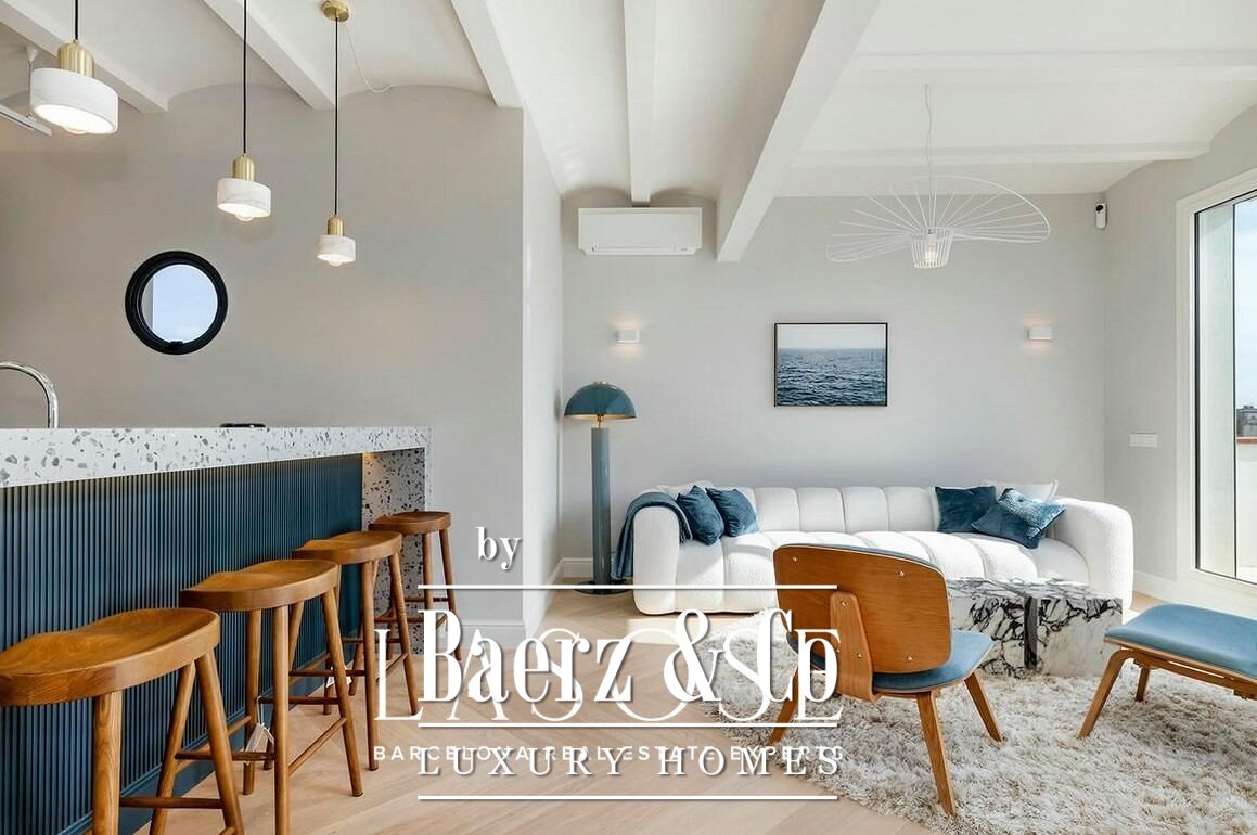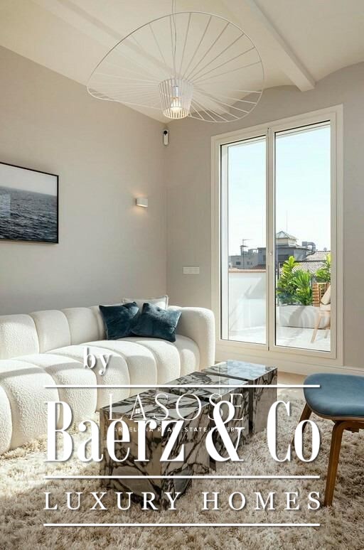 dedicated to the night area. It features two bedrooms that share a sleek, contemporary bathroom, while the luxurious master suite boasts a walk-in closet and a private en-suite bathroom. All three bedrooms have direct access to an 18 m² balcony, enhancing natural light and a sense of openness.. . In the hallway, built-in wardrobes discreetly house the washer, dryer, and heat pump. For added convenience and flexibility, both floors are equipped with independent entrance doors.. . This exceptional penthouse seamlessly blends modern comfort with classic elegance — all in one of Barcelona’s most sought-after locations.