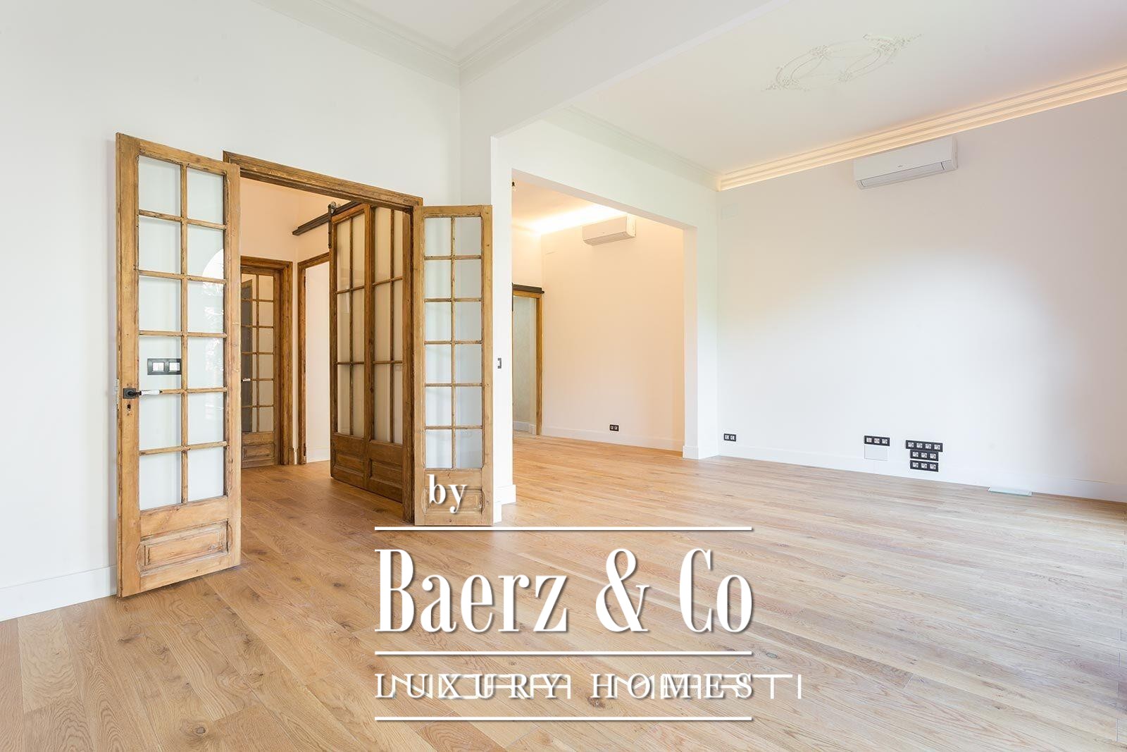Ground floor apartment Barcelona offers a distinguished blend of modern comfort and historic elegance. Nestled within a 1930s modernist villa, this 200 m² residence is defined by light, tranquility, and a privileged residential setting. The interior welcomes with a spacious living room opening to a 75 m² private garden and a 20 m² sea-facing terrace, setting the stage for quiet mornings and relaxed gatherings.