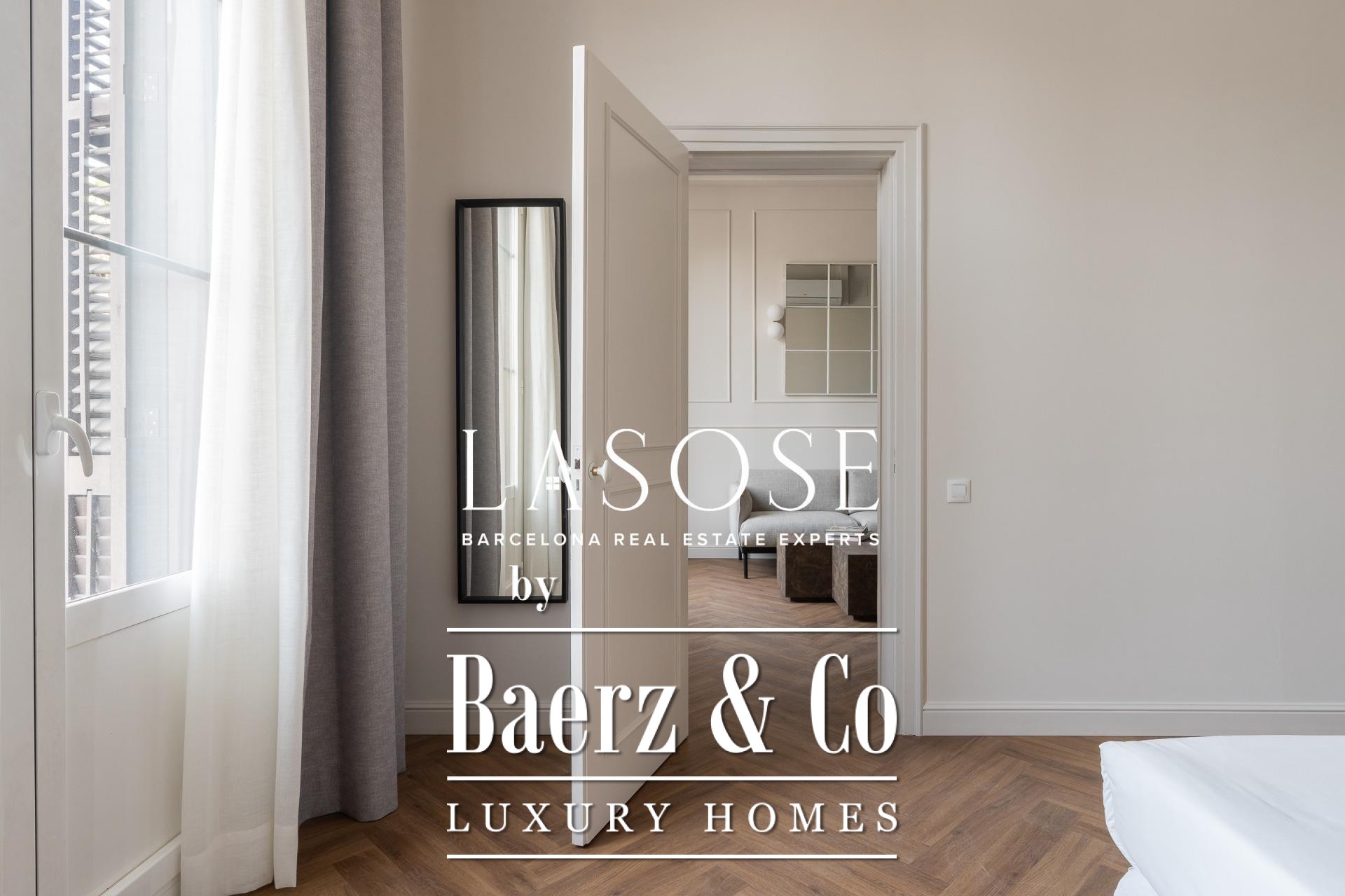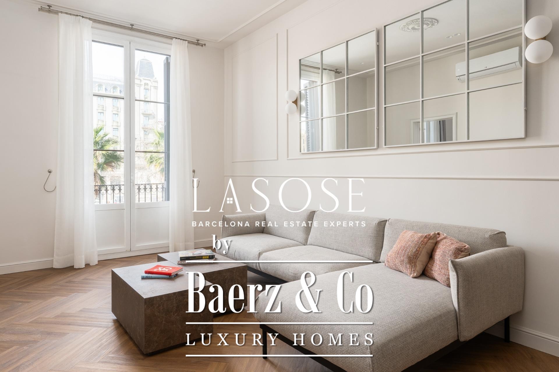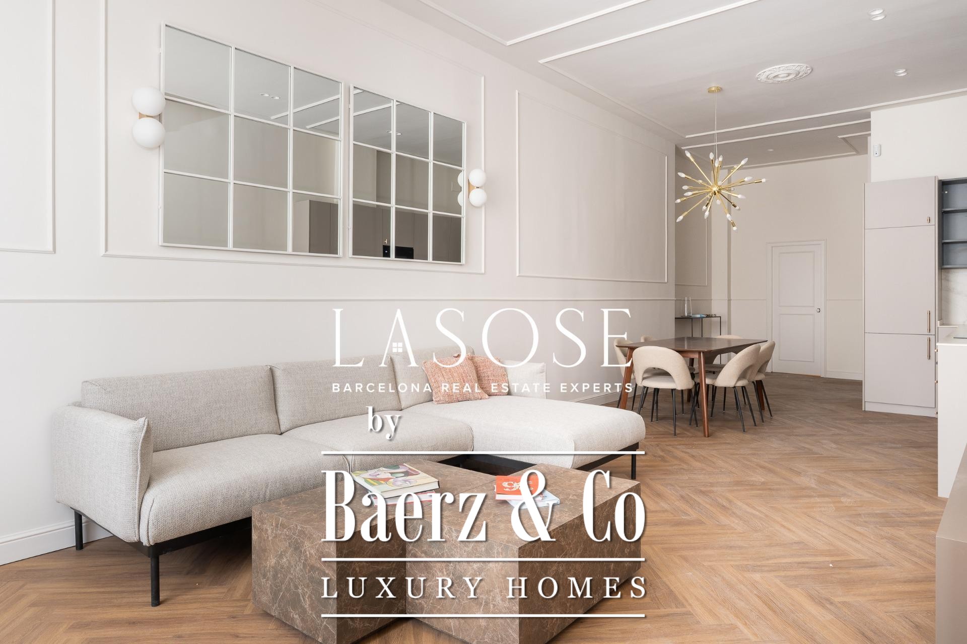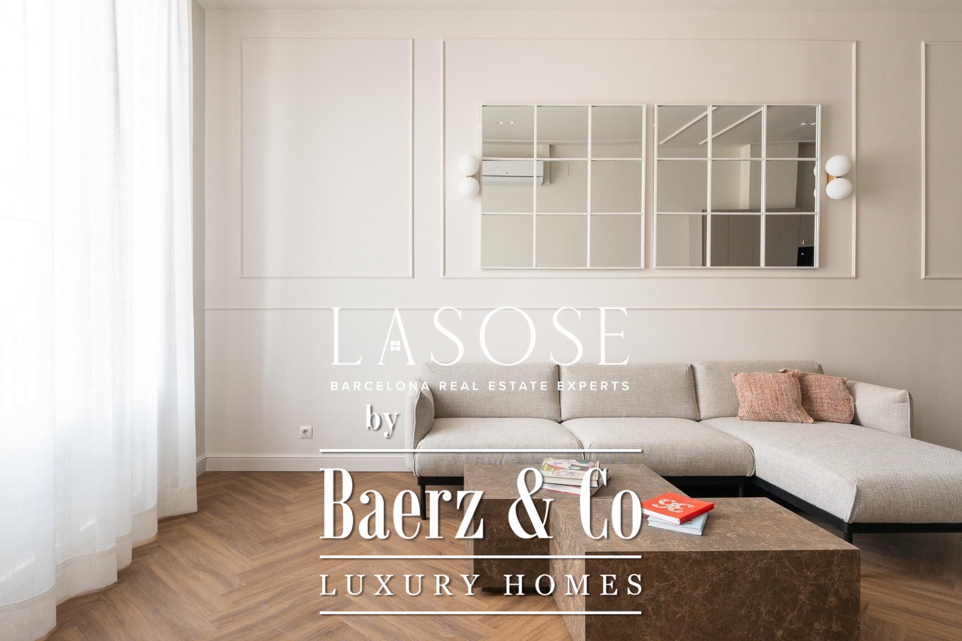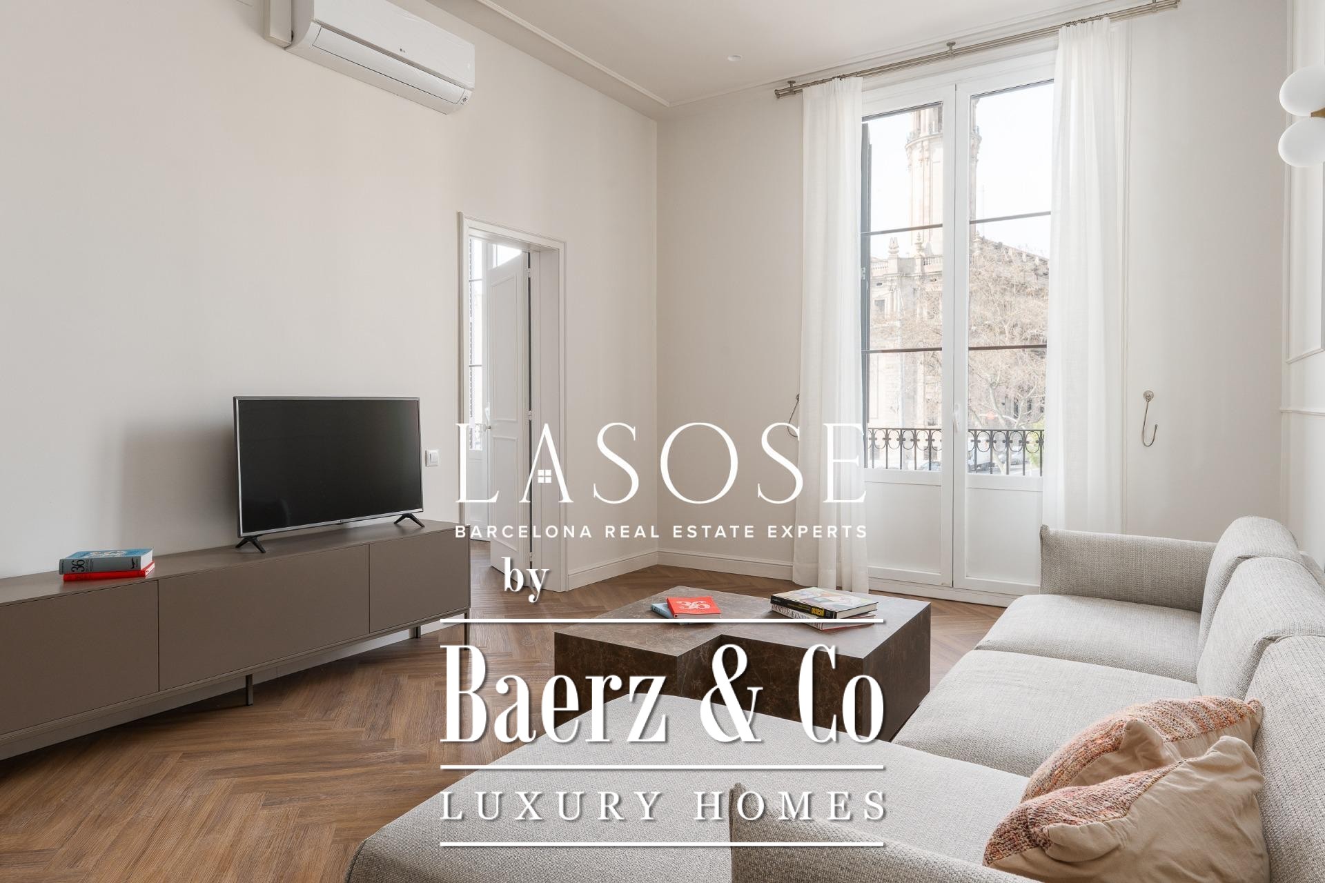 Apartment Barcelona is redefined in this exceptional 118 m² residence, showcasing a meticulous renovation within a historic 1850 building, now a Local Heritage Site. The property achieves the rare harmony between preserved architectural character and the expectations of contemporary luxury. Entering, you are welcomed by an immediate sense of space and refinement, with an open-plan living and dining area bathed in natural light through generous windows facing Paseo Isabel II. Designer furnishings and premium finishes elevate every moment spent here.