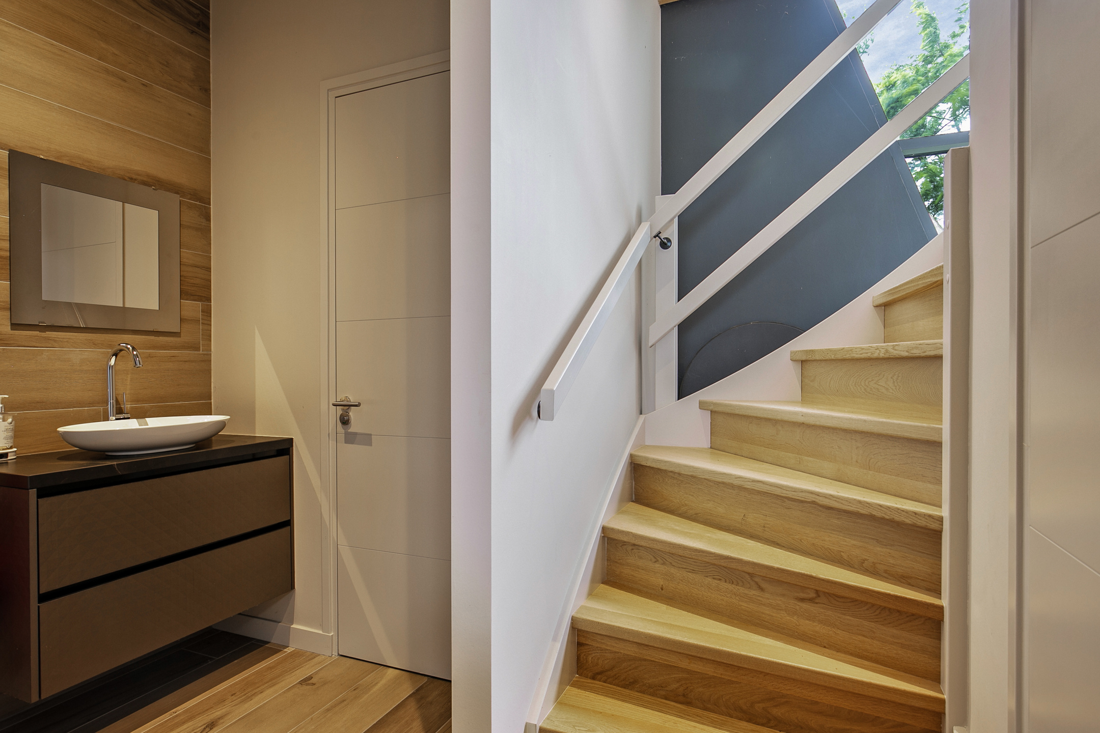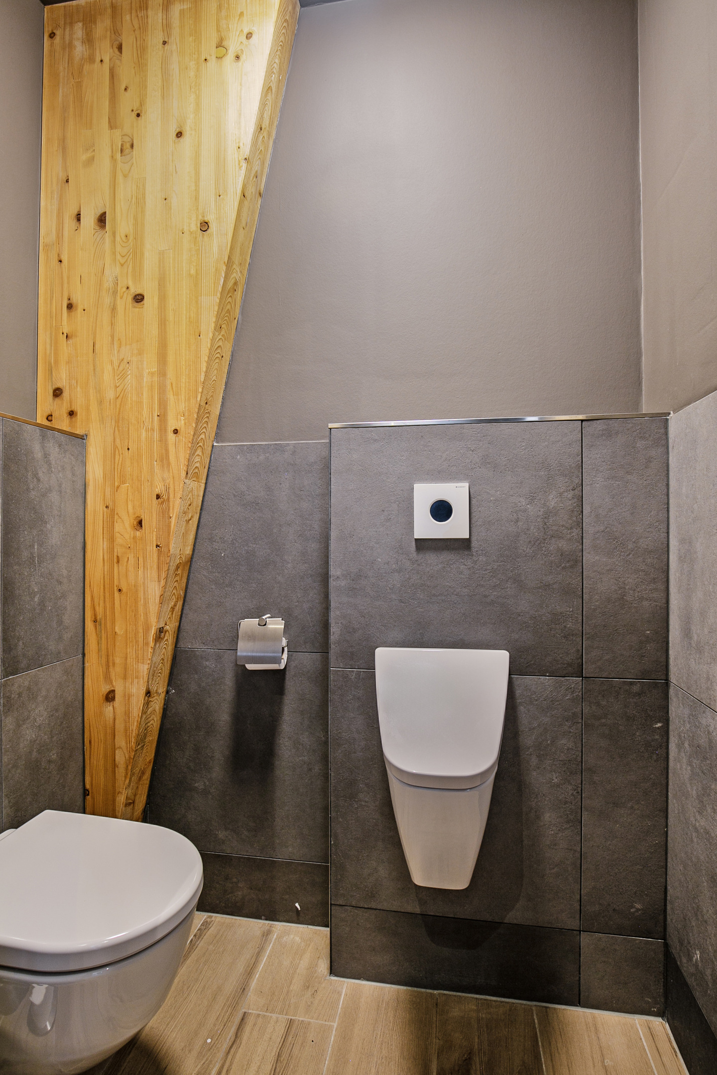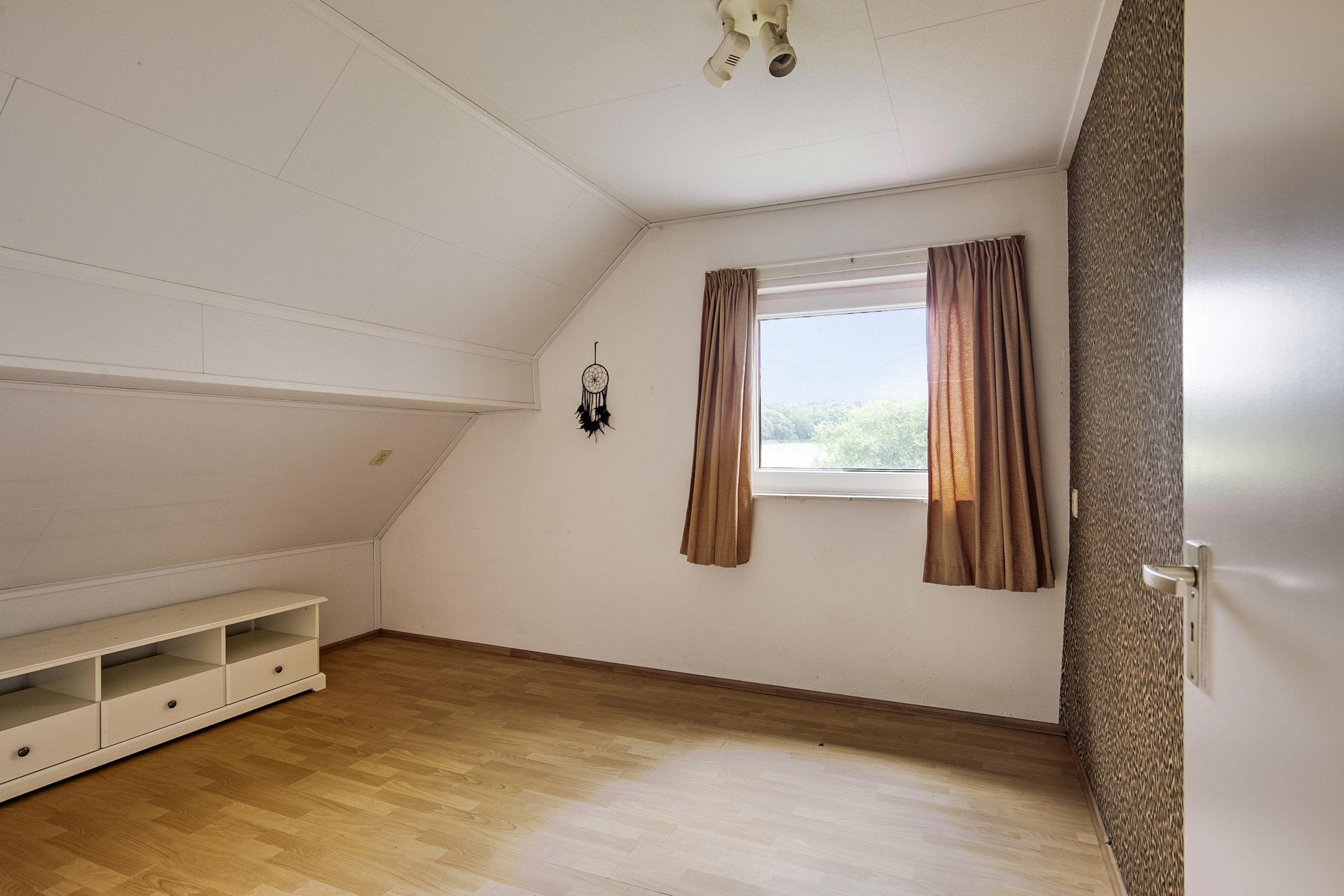 This part of the house is arranged on the 1st floor with 3 bedrooms and the bathroom. On the landing, there is a closet with sliding doors. The bedrooms have laminate flooring, stucco walls and a plasterboard ceiling. Two bedrooms enjoy plenty of light through windows in the facade and the third bedroom is equipped with a skylight. The fully tiled bathroom is equipped with a bathtub, a separate shower and a sink. A dormer window provides plenty of extra space and light.