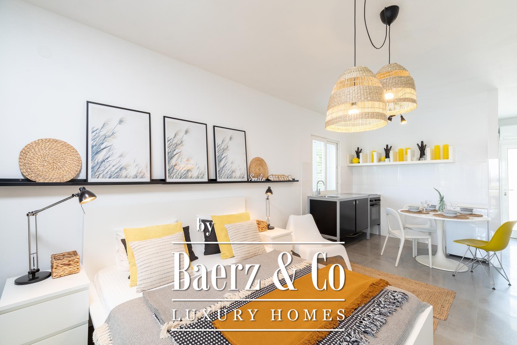 room with a kitchen, dining room, living room and bathroom. The apartment has panoramic sliding doors leading to a terrace with a sea view. This apartment is connected to the lower floor by an internal staircase that has a door so that the lock can be isolated. The second apartment is a studio apartment that has a kitchen connected to the living room and a bathroom. It also has panoramic sliding doors leading to a loggia with a panoramic sea view.Around the villa there is a landscaped yard and gardens and parking for several cars, and in the basement there is an additional storage room in front of which there is a landscaped terrace.The sea, where there is a natural pebble beach on the rocky coast, can be reached by a landscaped path and the entire area around the house is in the natural shade of pine trees.The villa is fully furnished, has a carefully designed interior dominated by light colors and turquoise tones, terraces with a fantastic view that also provide privacy, the beach is just a few steps away and much more that makes this property an unusual opportunity on the island of Korčula.We remain at your disposal for any additional information.