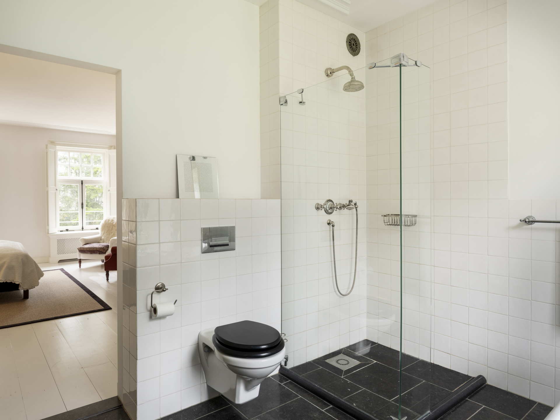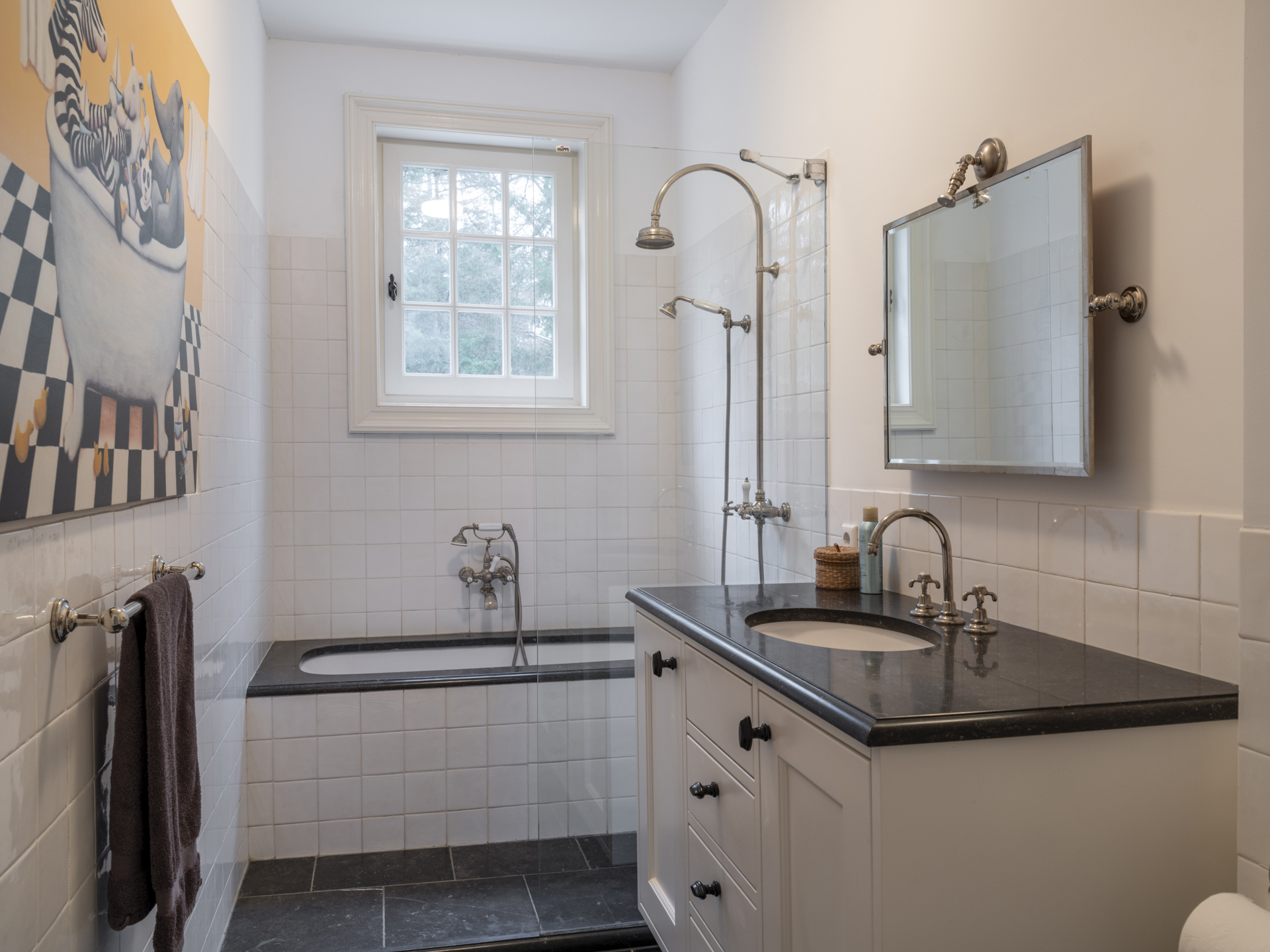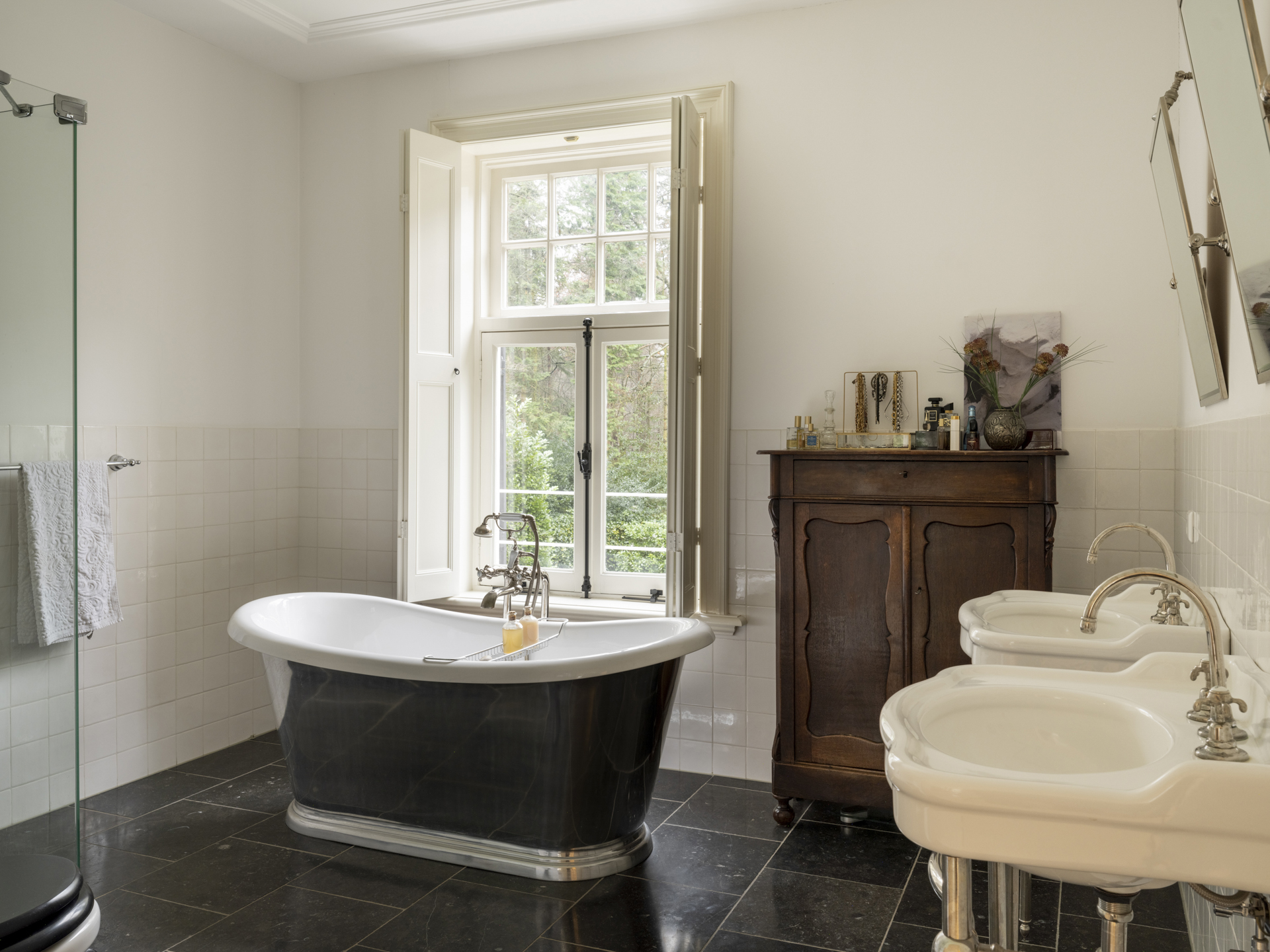 Via the classic oak staircase, you reach the first floor, which houses three bedrooms and two bathrooms.