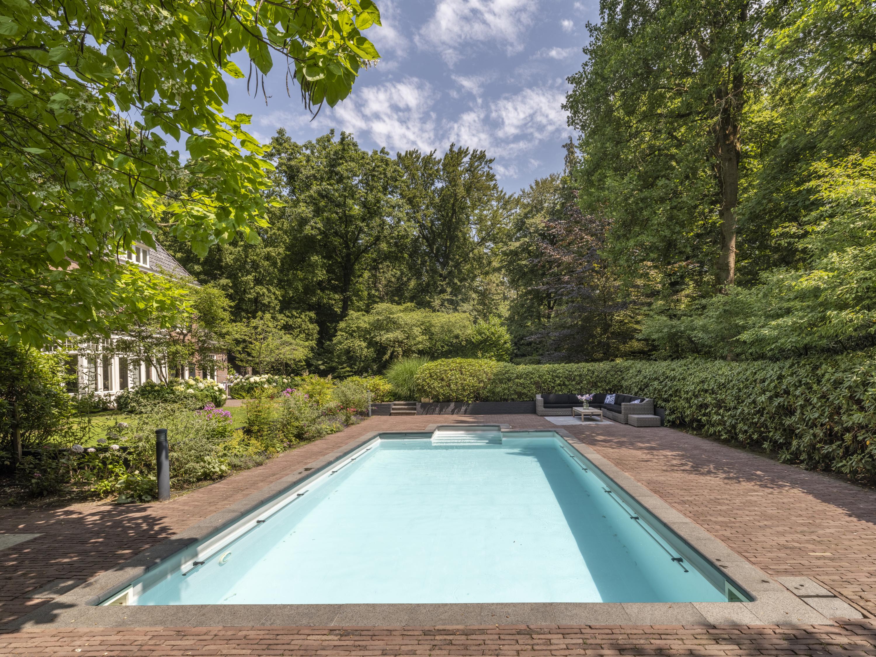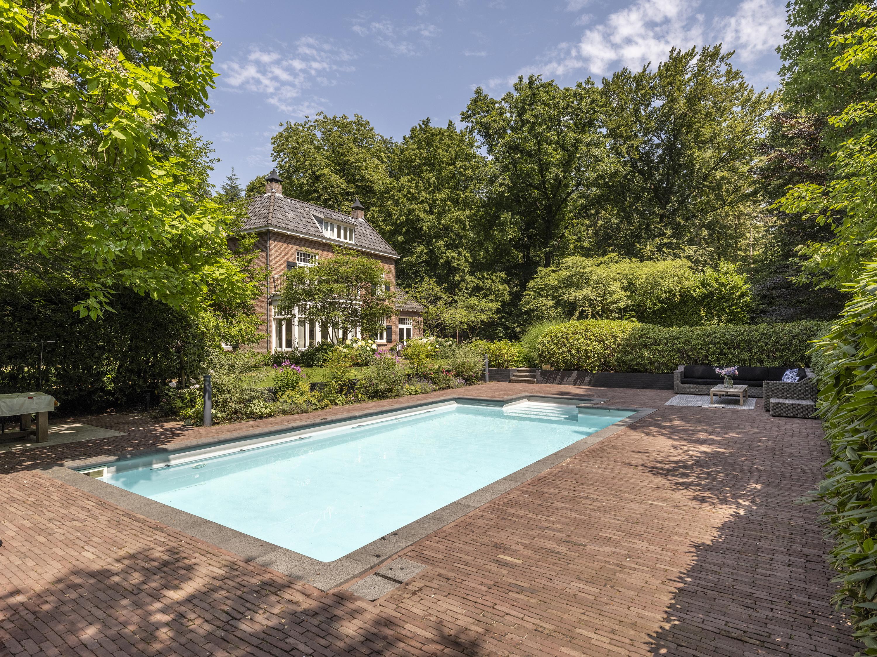 The fully renovated and well-maintained villa offers, among other things, a spacious and charming garden-facing living room with ensuite layout, an additional study on the ground floor, 6 bedrooms, and 3 bathrooms. Additionally, you'll find a multifunctional outbuilding, currently used as a guesthouse, and a swimming pool with a cozy pool house including a sauna. The enclosed plot provides complete privacy.