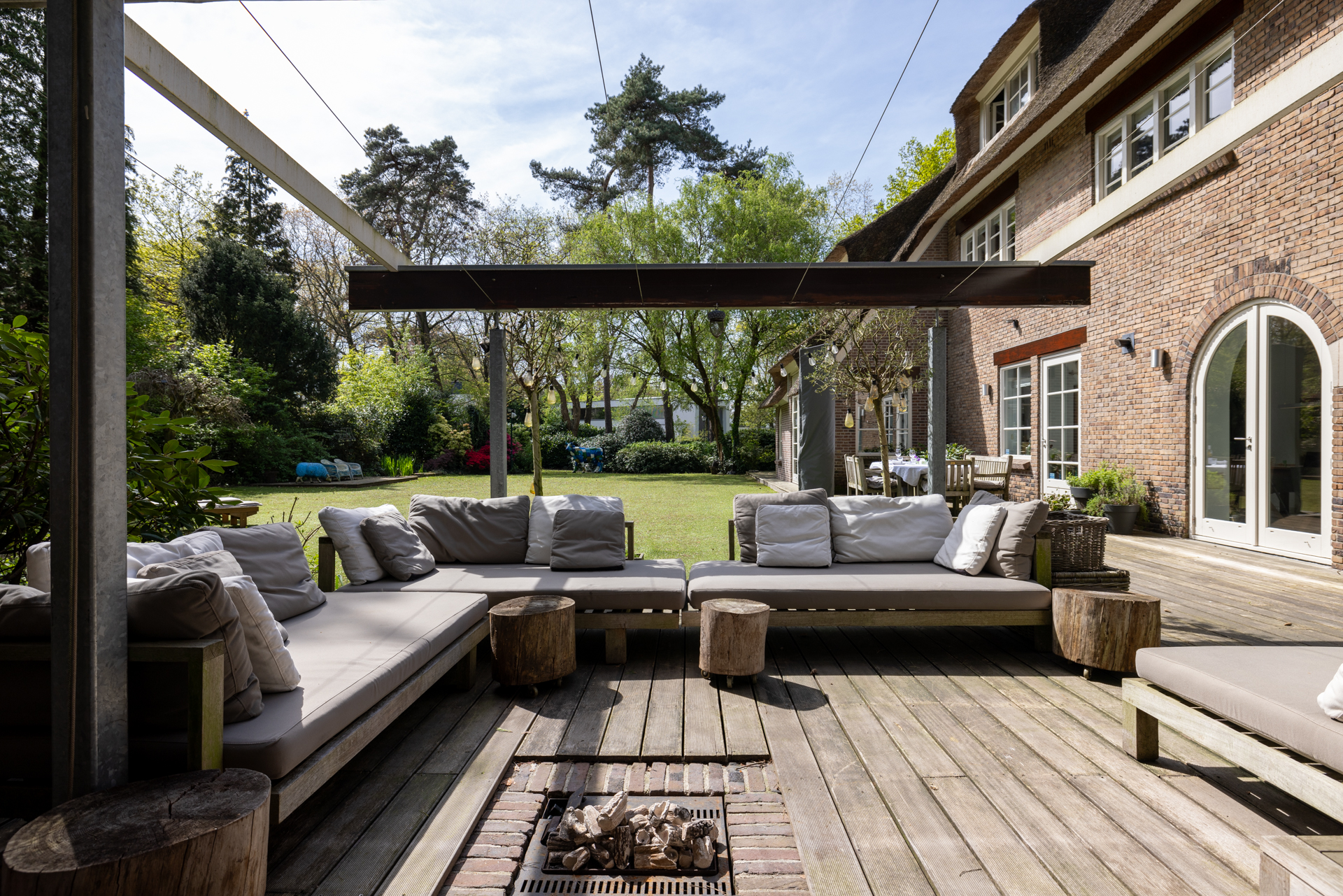 The outdoor area partly consists of a fixed roof, but also has a great lounge area with a luxurious, custom-made sail that can be removed. This lounge area also has a beautiful floor gas fireplace. The outdoor speakers, beautiful lighting and 5 electric heaters provide extra warmth and atmosphere. Even a TV connection and full WiFi network are available.
