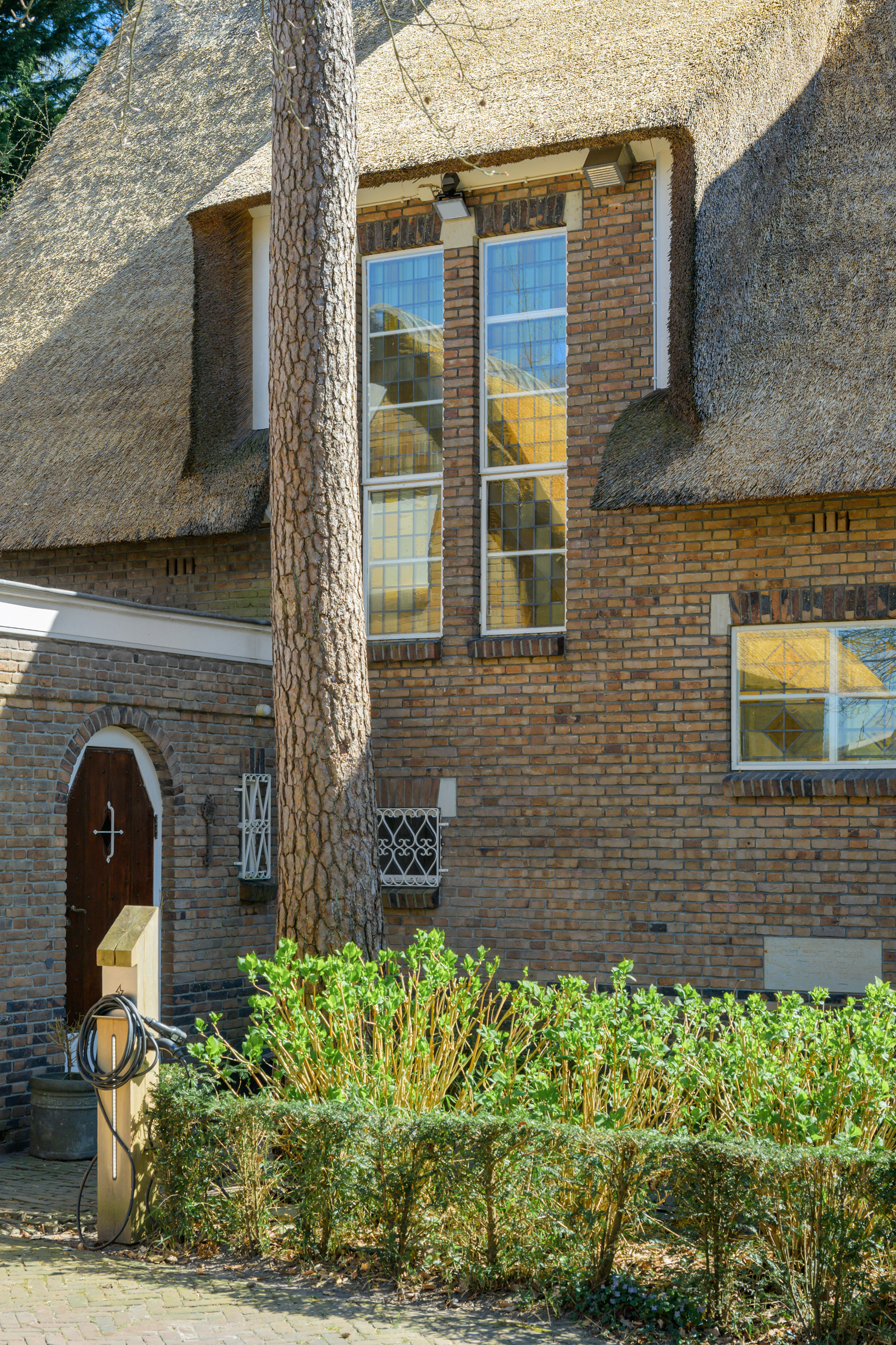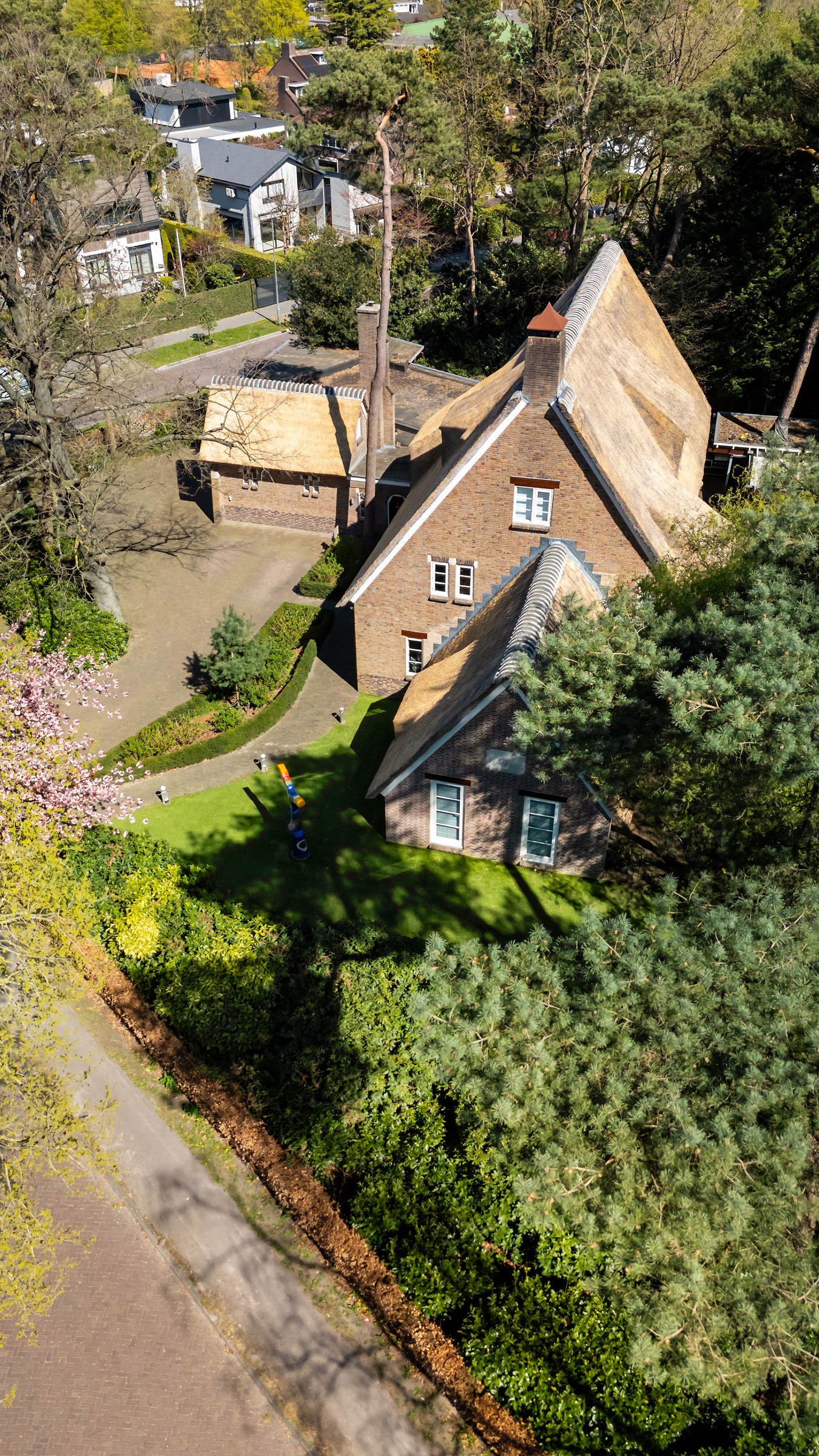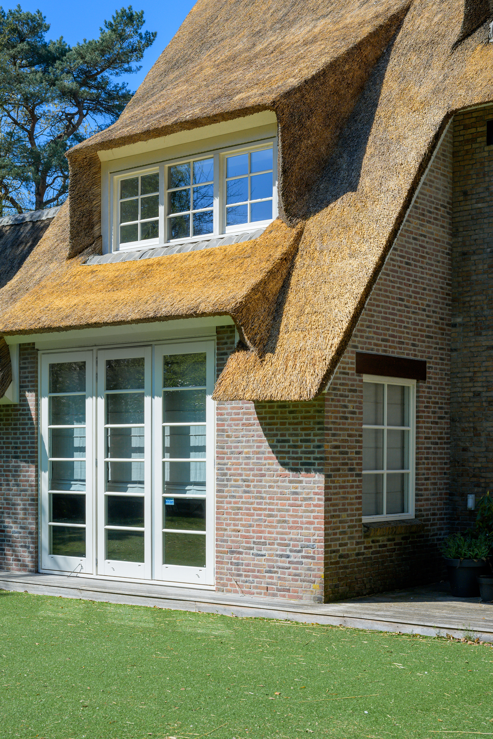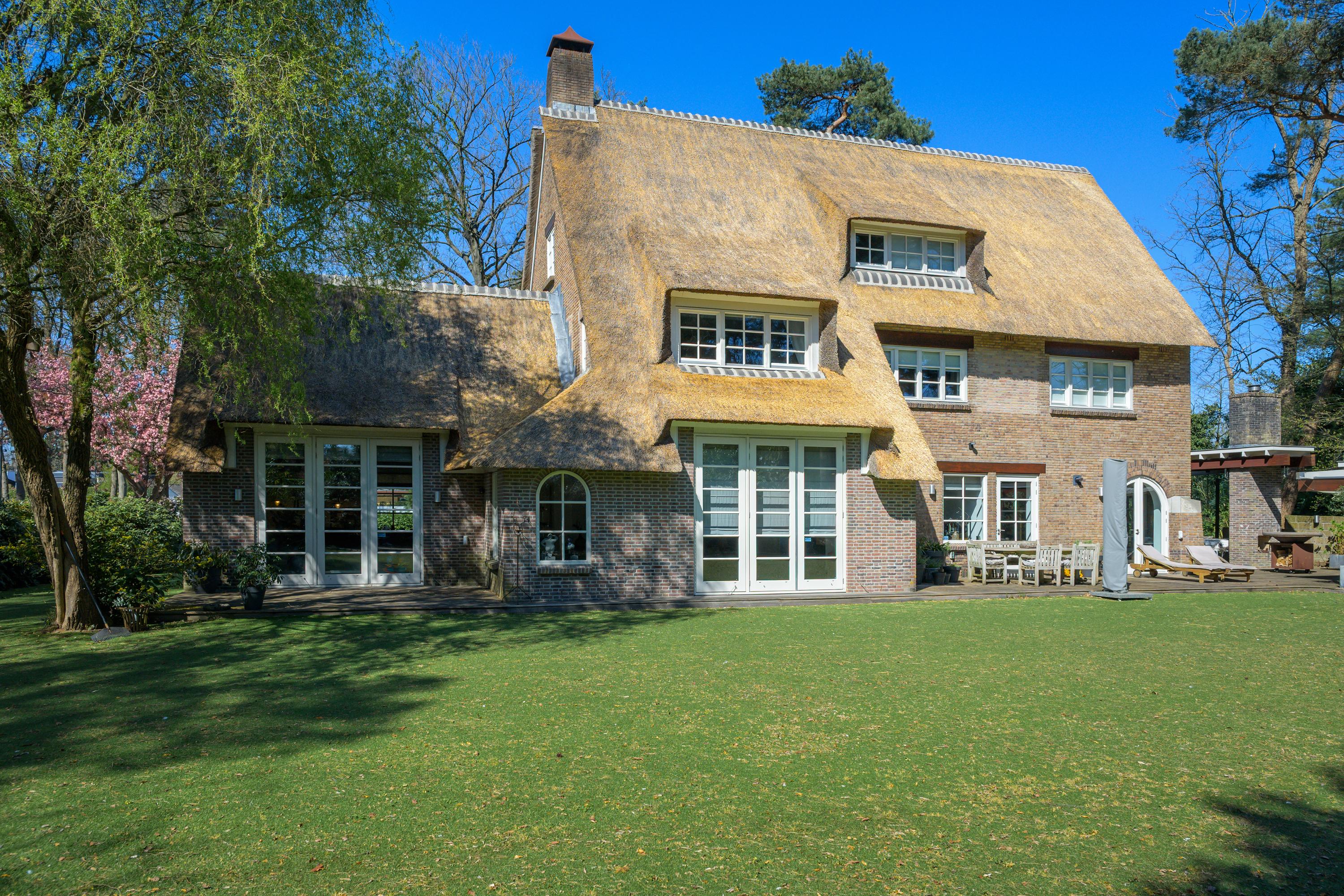 Very unique, perfectly maintained, thatched country house with, among other things, a luxurious wellness area with indoor swimming pool and fantastic outdoor space, situated at a prominent point in the middle of the popular and stately residential area "Ruitersbos" with its beautiful trees and within walking distance of the Mastbos.