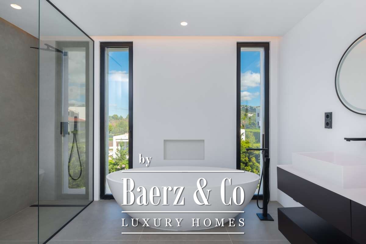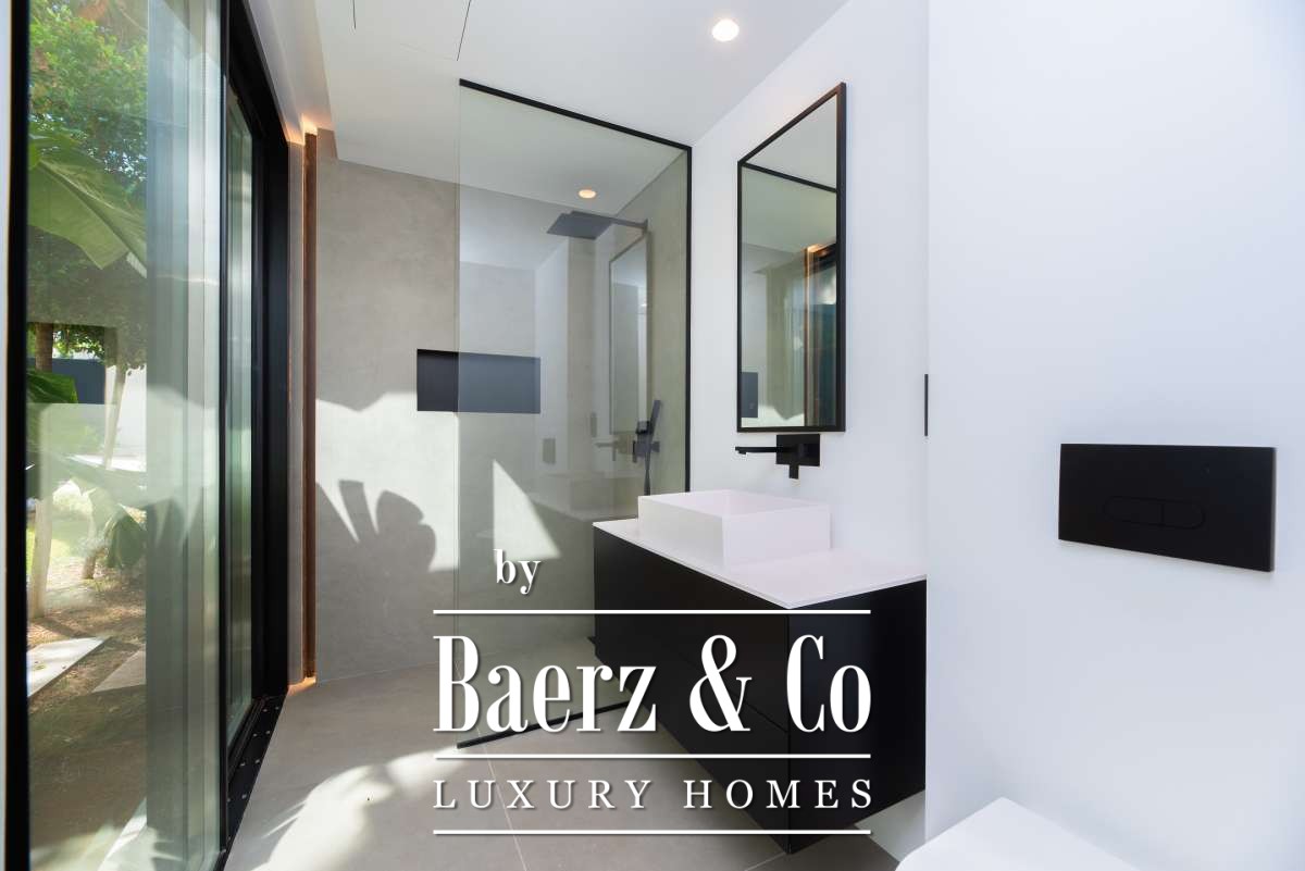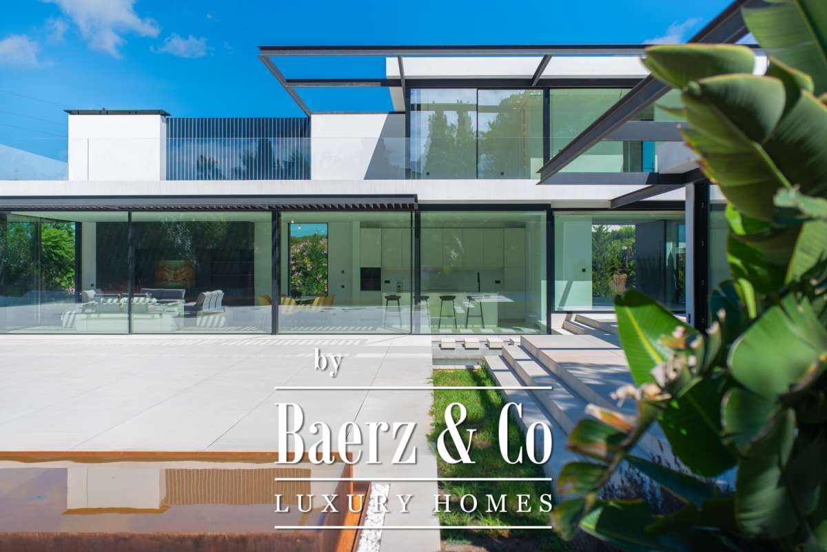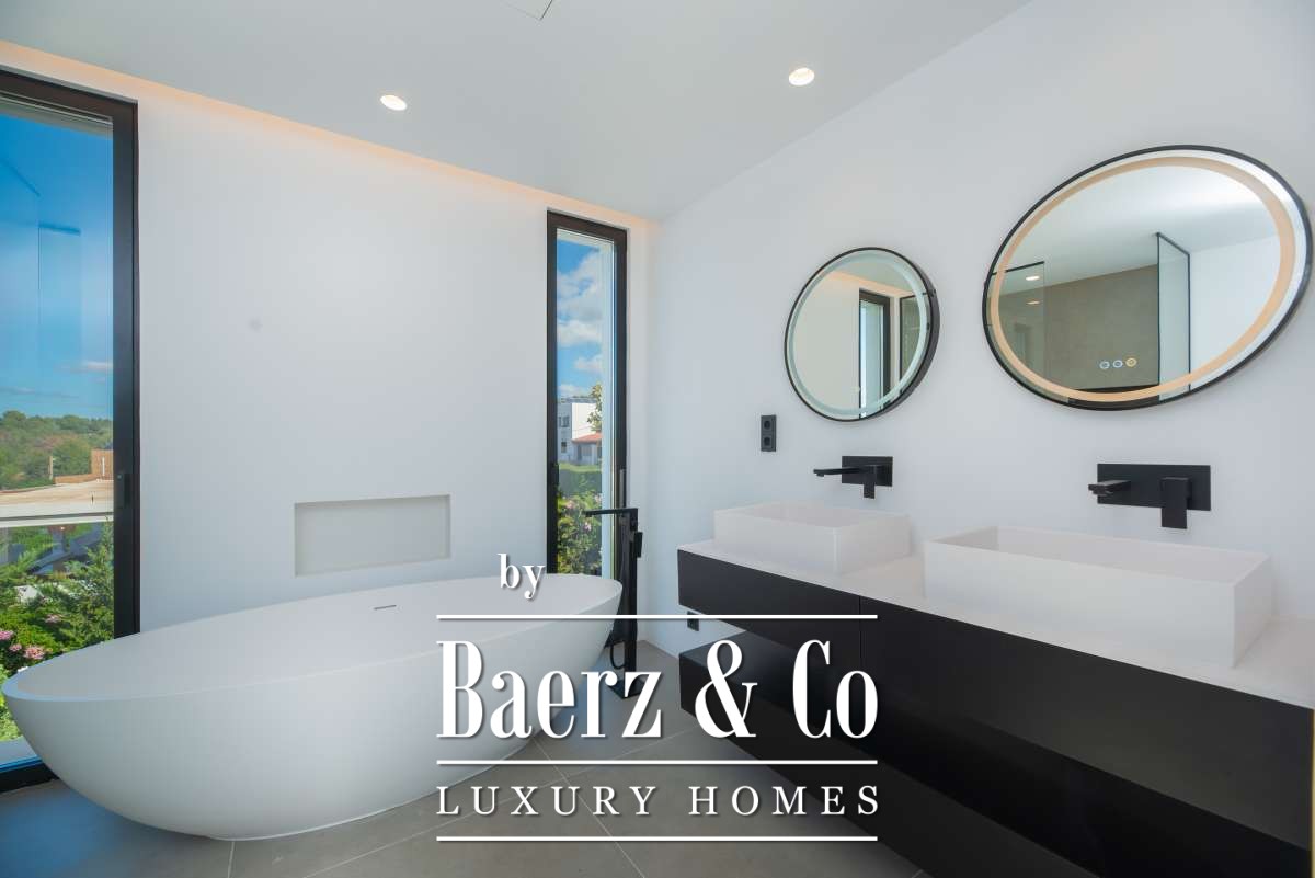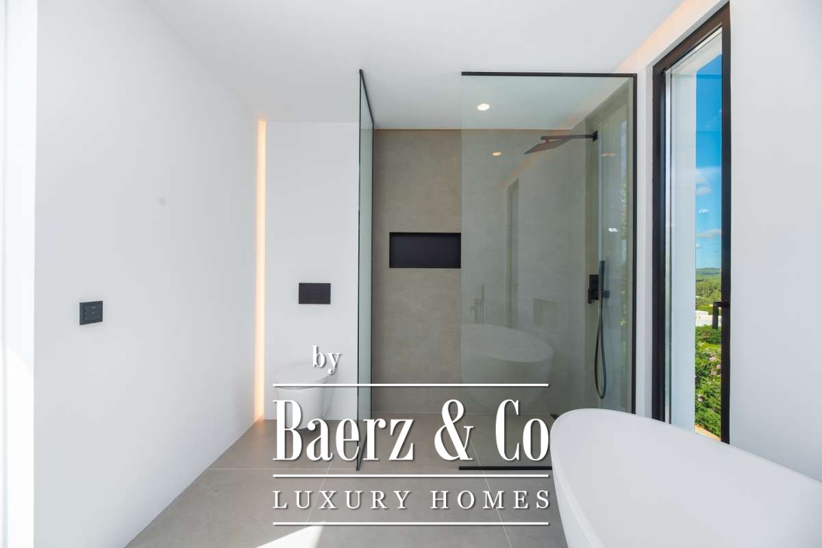 The surroundingsThis immaculate villa is located in the highly sought-after residential area of Can Bessó, on the outskirts of Ibiza Town, close to Jesús. The charming town of Jesús is just a 5-minute drive away, where you will find all your daily necessities, including supermarkets, shops, and local bars and restaurants. For more vibrant energy, the historic Ibiza Town is only 10 minutes away. Here, you’ll discover a lively marina, rooftop bars, and a variety of dining options, from gourmet restaurants to local eateries. In addition, if you're looking for a relaxing beach day, the wide sandy beach of Talamanca is reachable within an 8-minute drive. You can soak up the sun on the loungers, enjoy seaside dining, or partake in water sports, all while admiring the stunning views of Talamanca Bay. If you prefer unspoilt coves, Cala Olivera and Cala Espart are just 15 minutes away. On top of that, the elegant Marina Botafoch area is only 10 minutes from the villa, where you can stroll past impressive superyachts, high-end restaurants, luxury designer boutiques, and Ibiza’s iconic night clubs like Pacha and Lío. This location provides the perfect balance of peaceful residential living while being close to Ibiza’s hotspots, beaches, and essential amenities.The villaThis brand-new villa offers 4 bedrooms and 4 bathrooms spread across 2 levels. It is a masterpiece of contemporary luxury, crafted with high-quality materials and move-in ready. The sleek design combines white foundations with black accents, creating a refined and sophisticated aesthetic. One of the standout features is the extensive use of glass, allowing natural light to flood the space. The open-plan living area flows effortlessly onto the outdoor terraces, providing a true Mediterranean indoor-outdoor living experience. In addition, a built-in entertainment center offers space for a large television, making it perfect for cozy family gatherings or relaxing movie nights. The modern, fully-equipped kitchen features a sleek kitchen bar where you can enjoy your morning coffee or evening drinks. The bedrooms